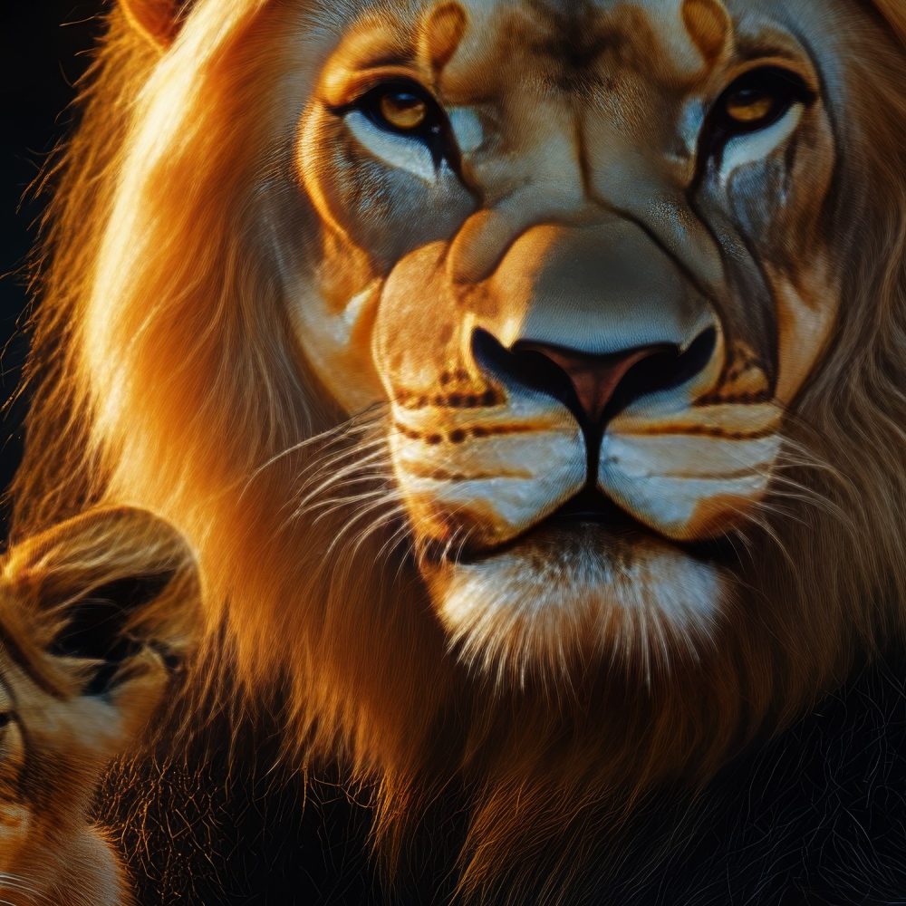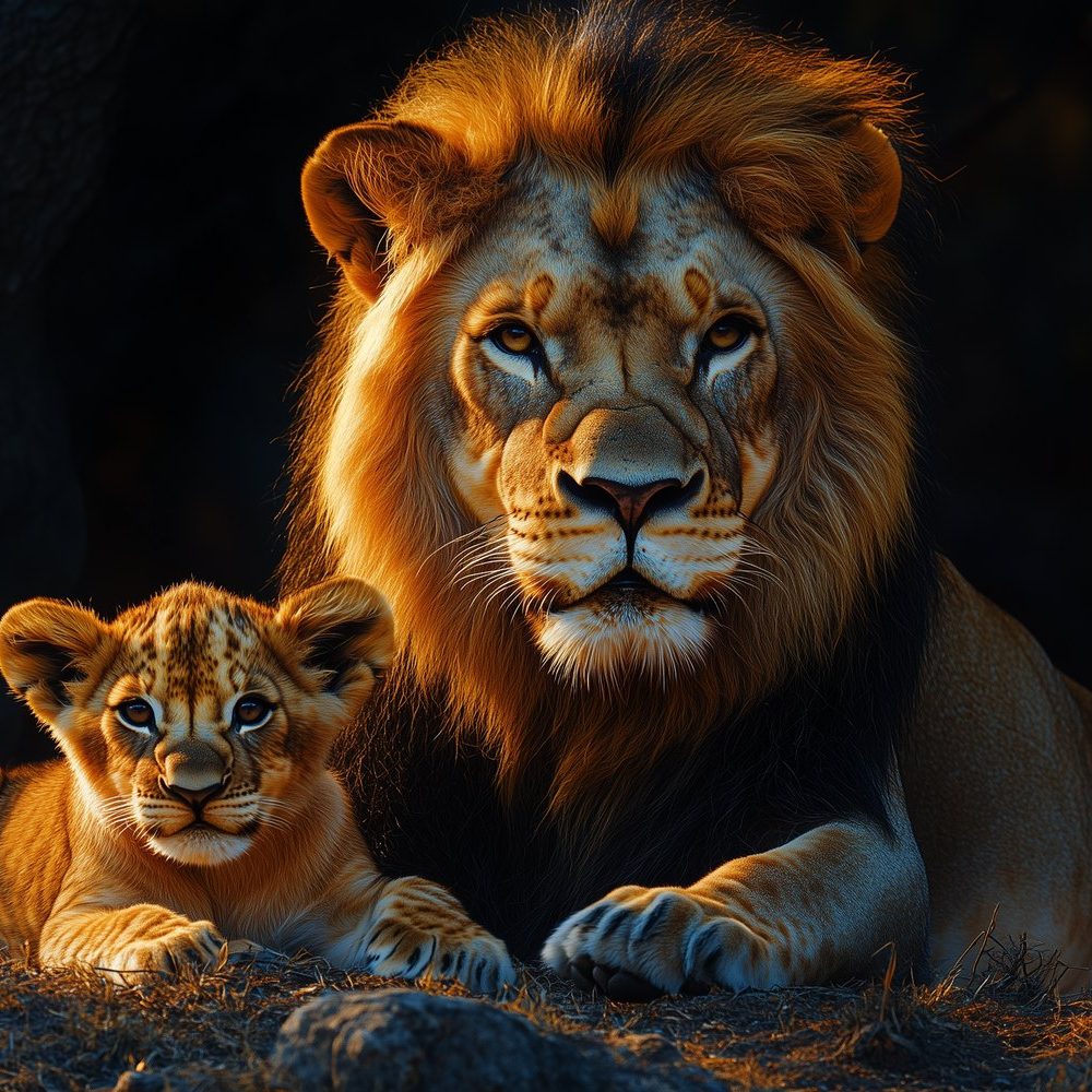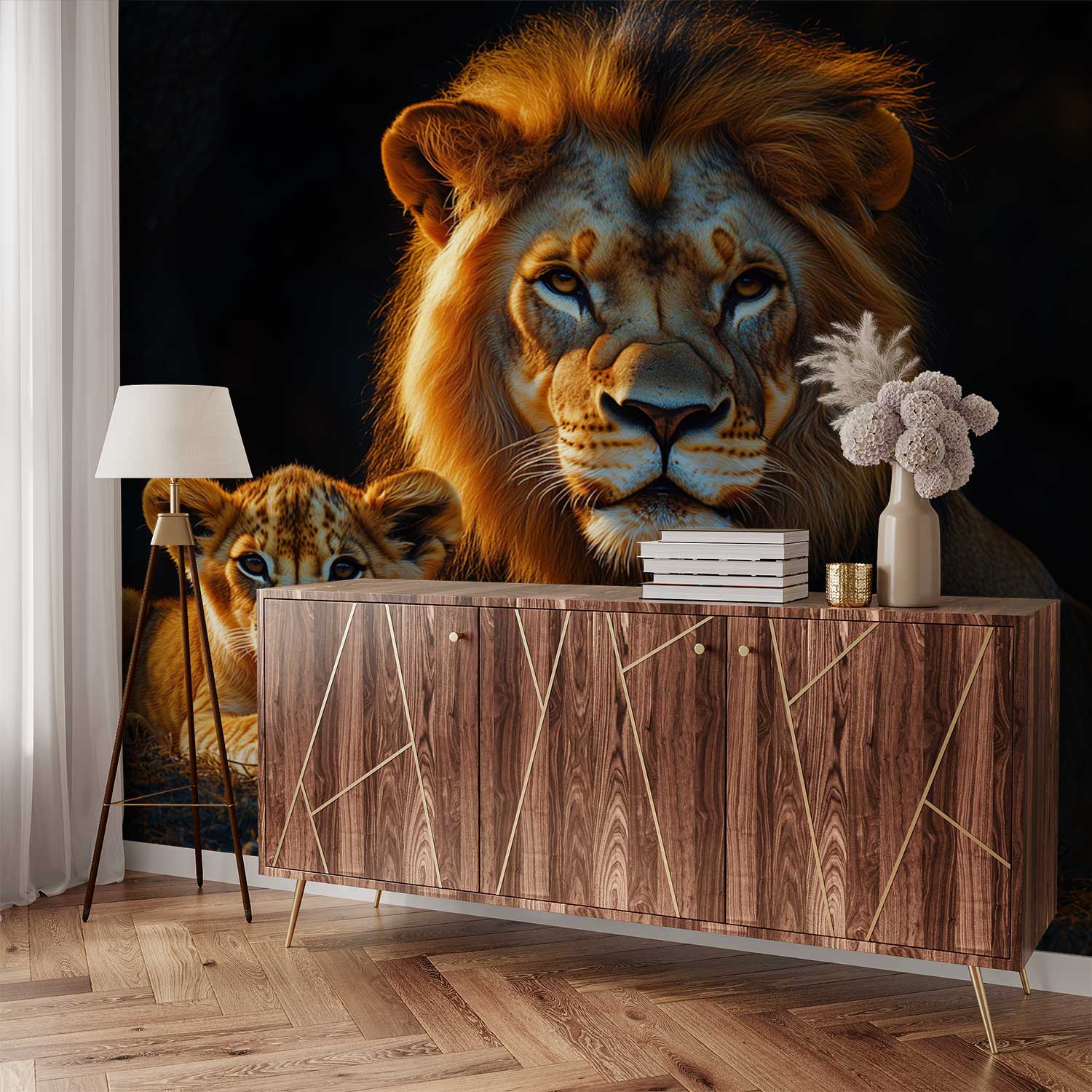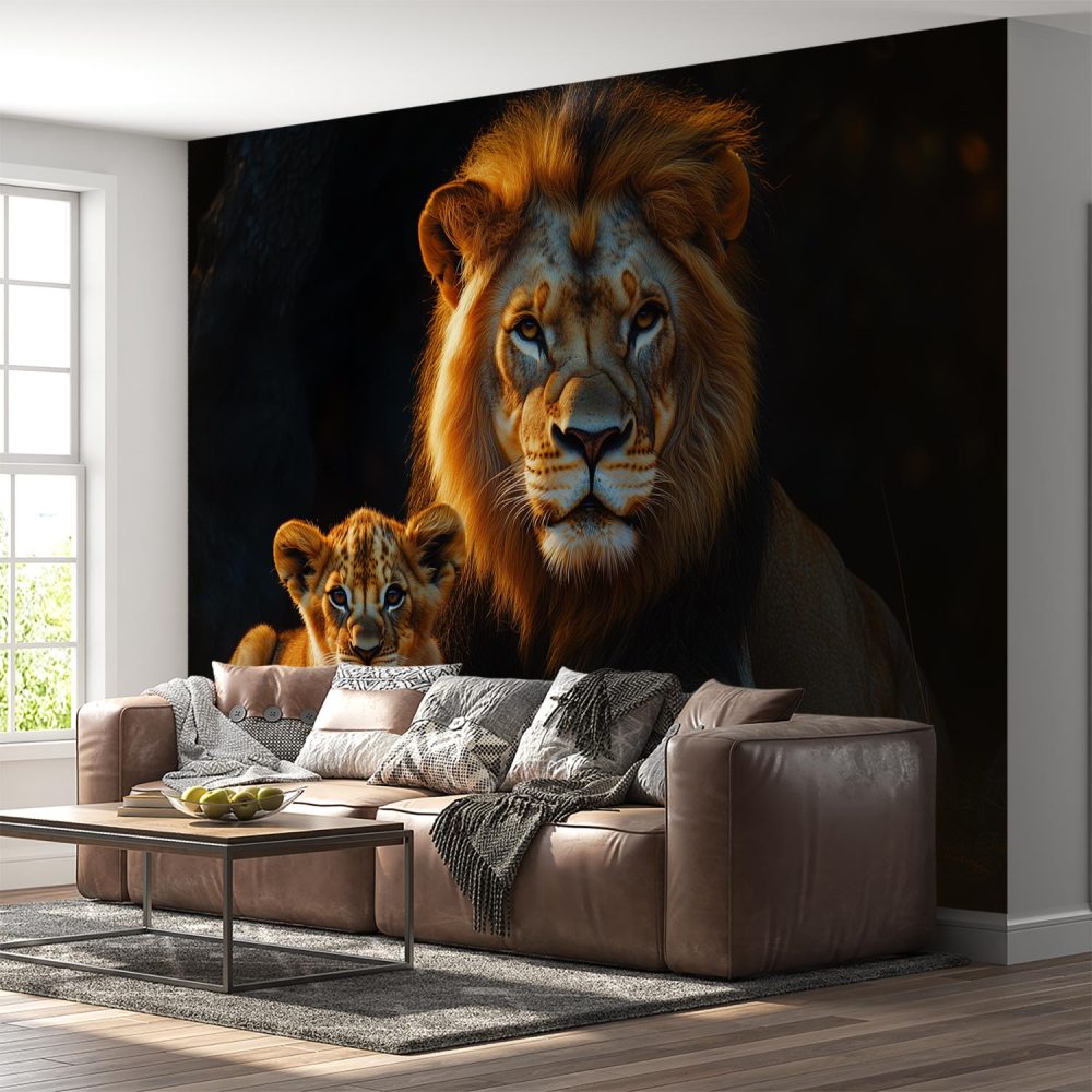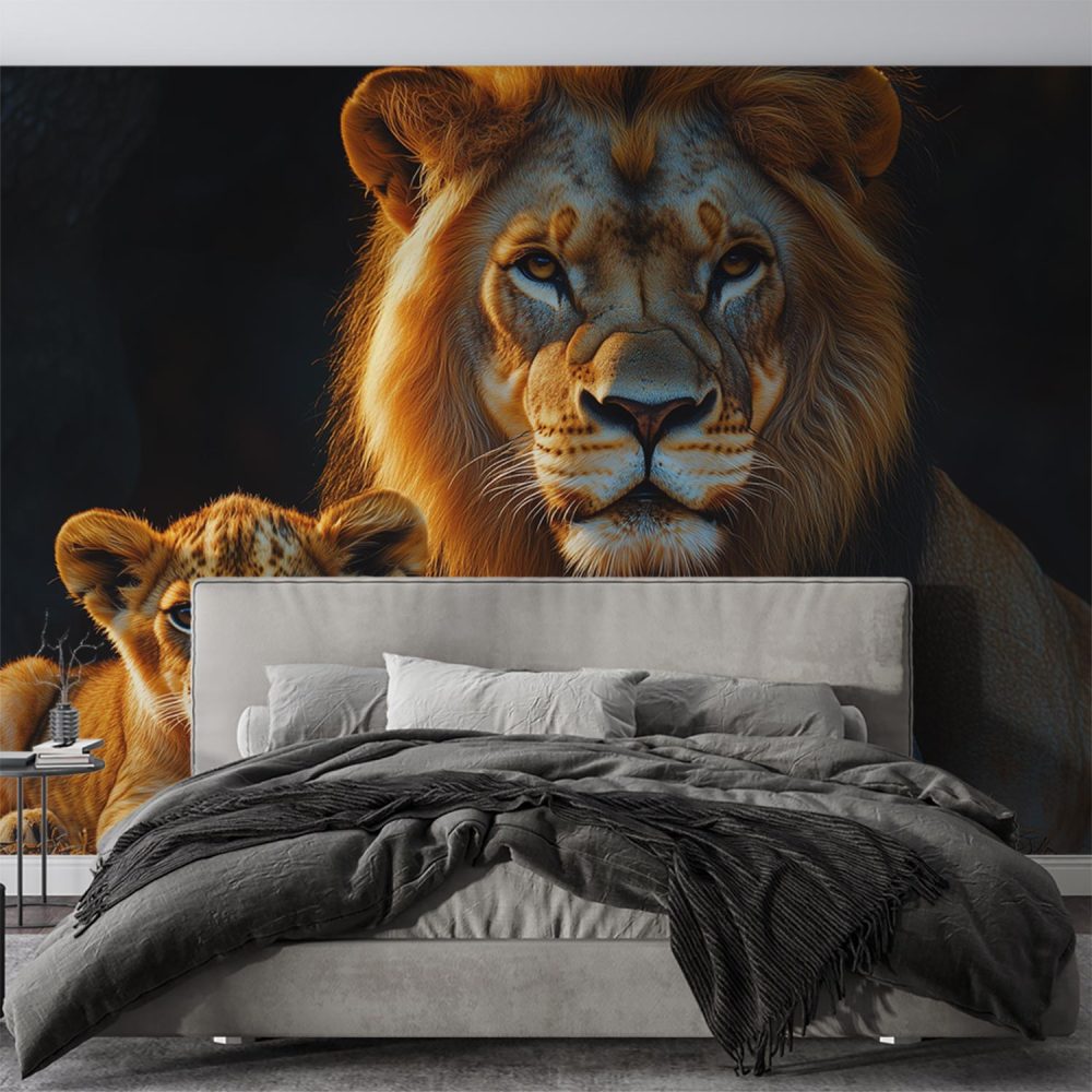 Lion en welp rustmoment behang