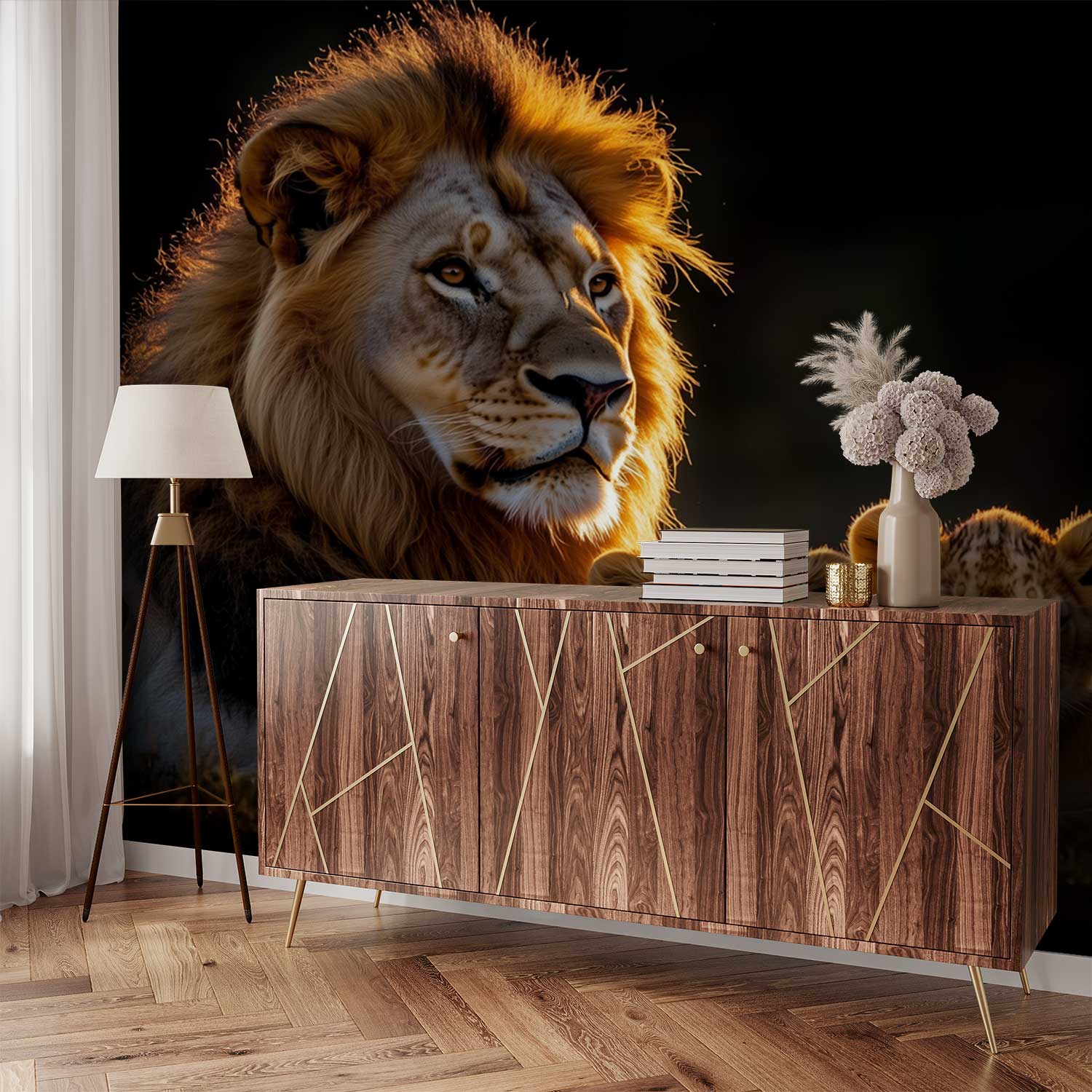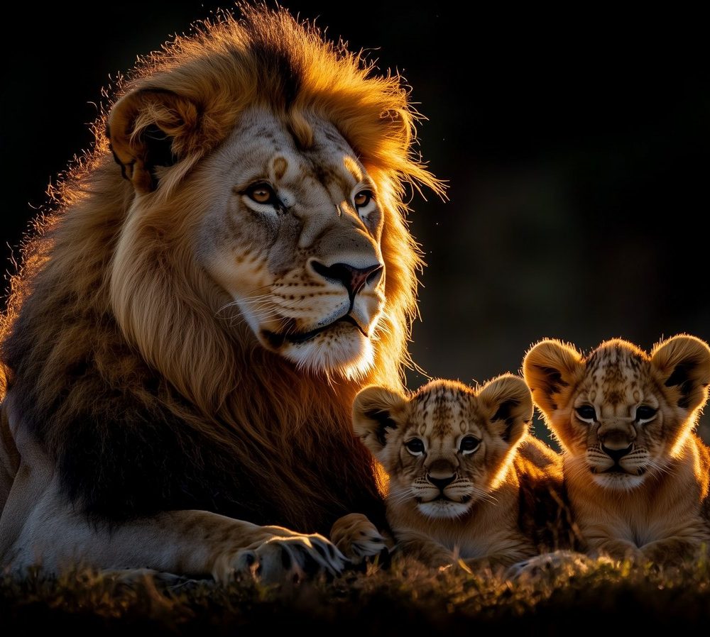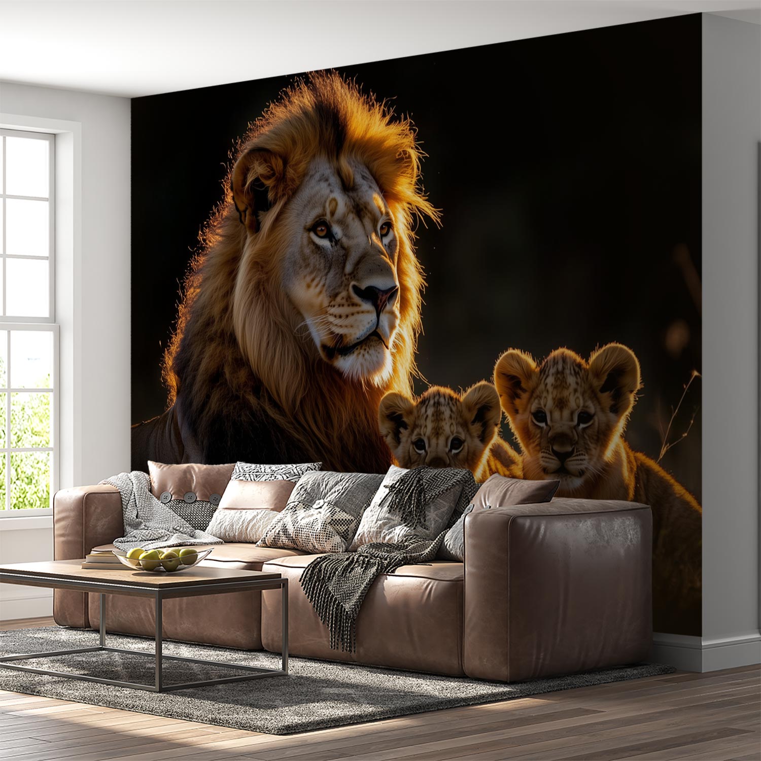 Lionenfamilie in gouden licht behang