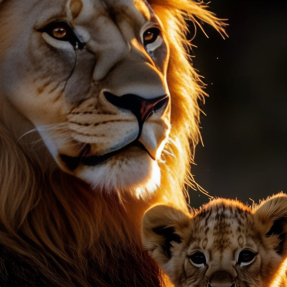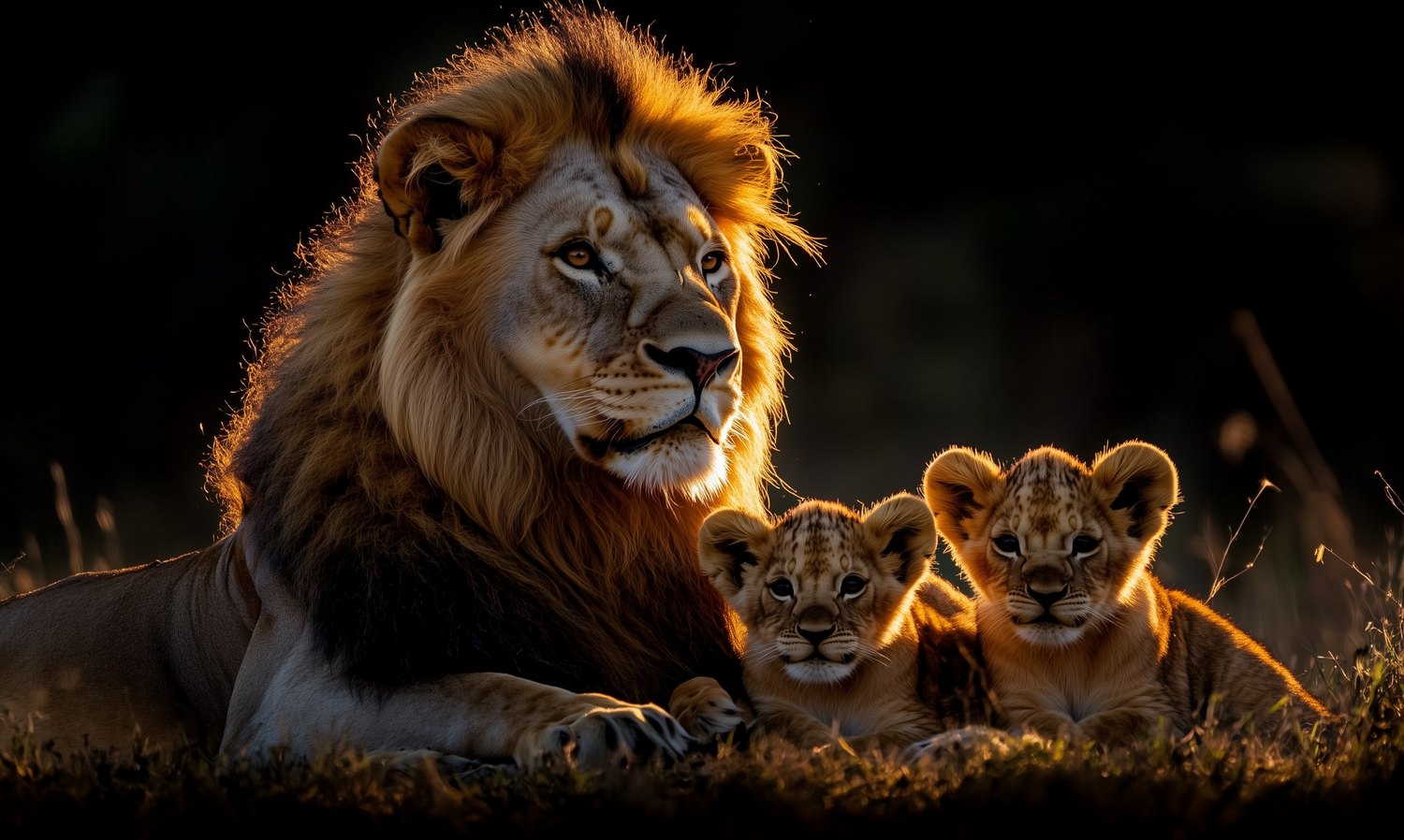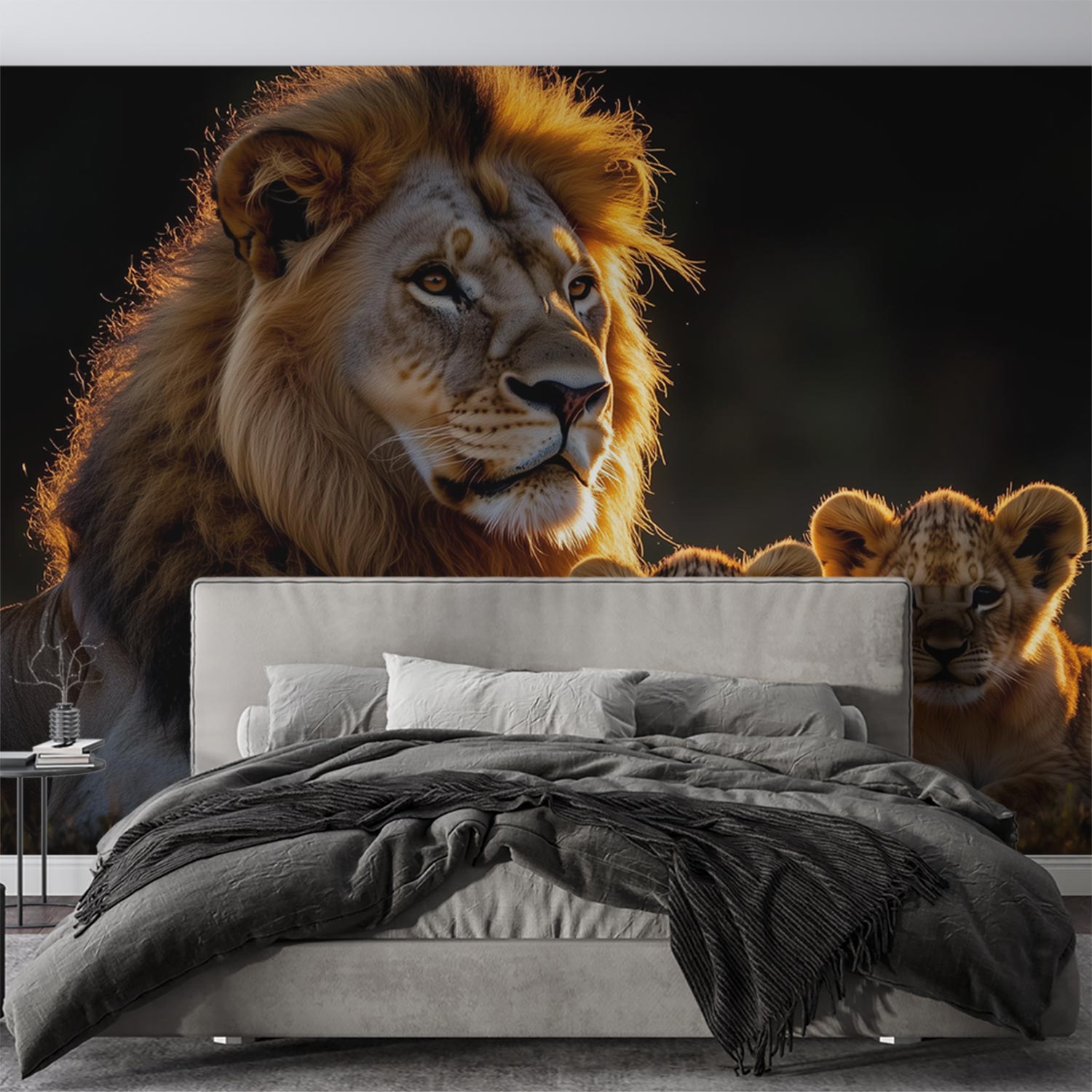 Lionenfamilie in gouden licht behang