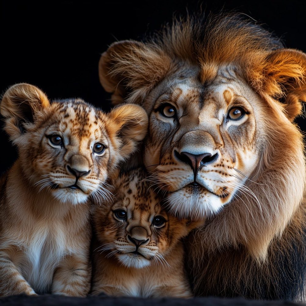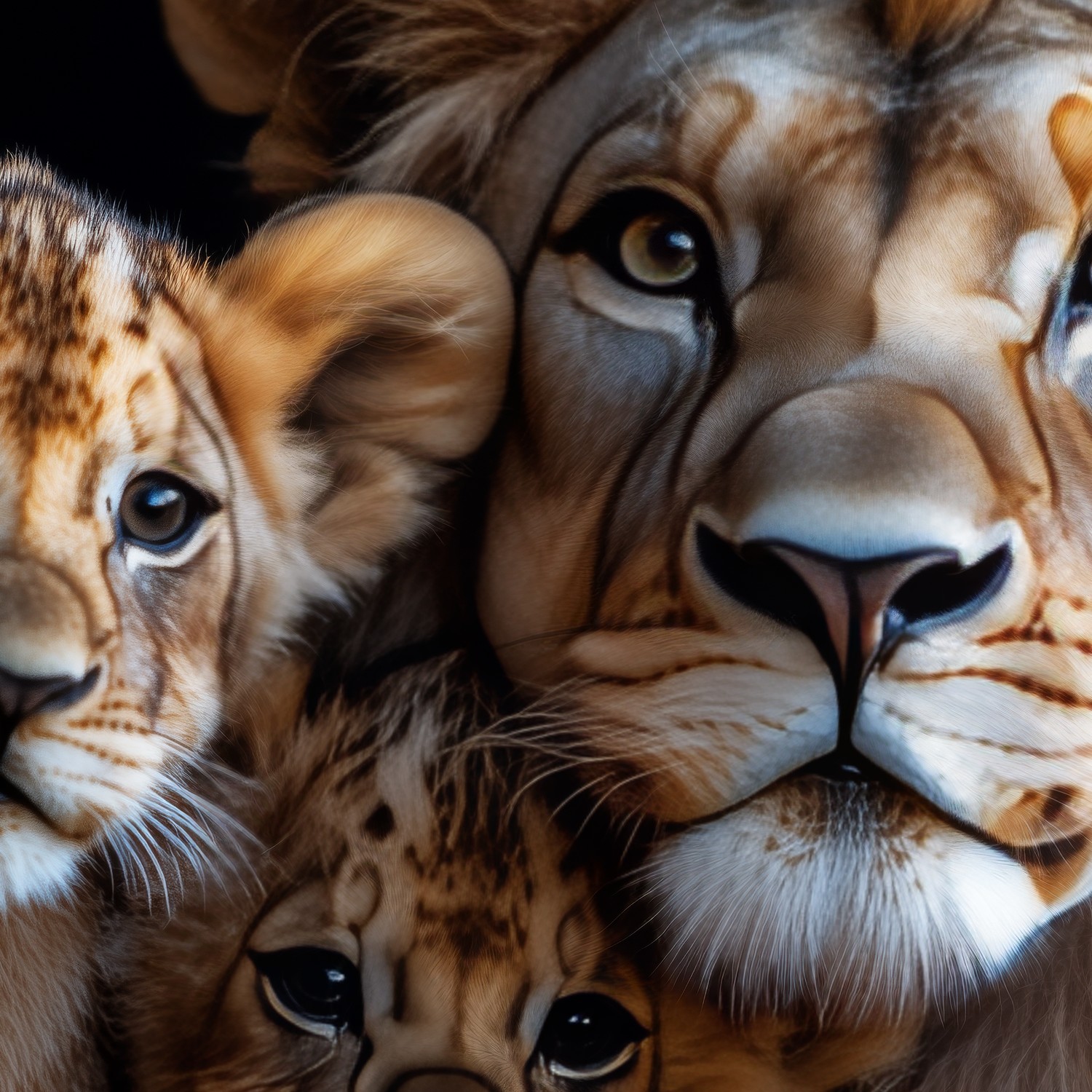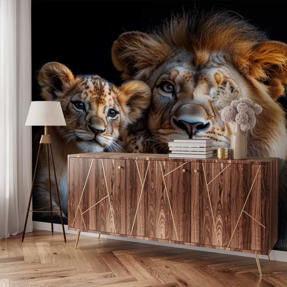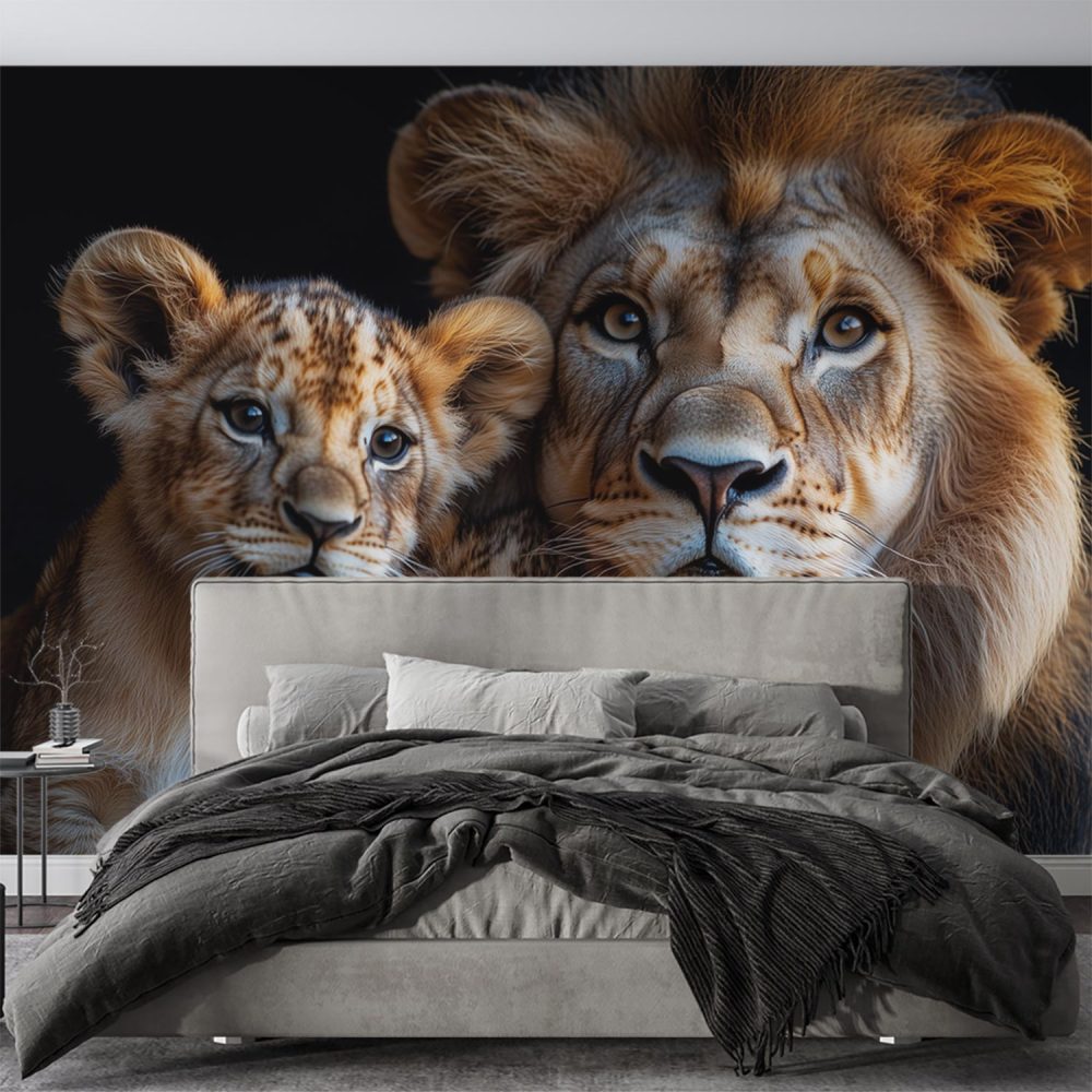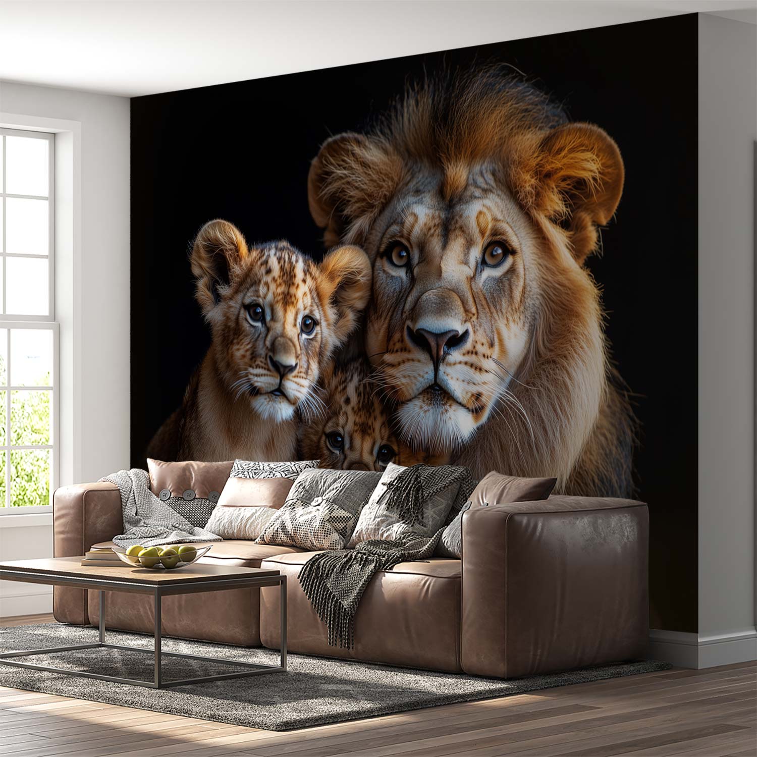 Terug naar collectie / Behang / Lionenfamilie knus samengedrukt behang