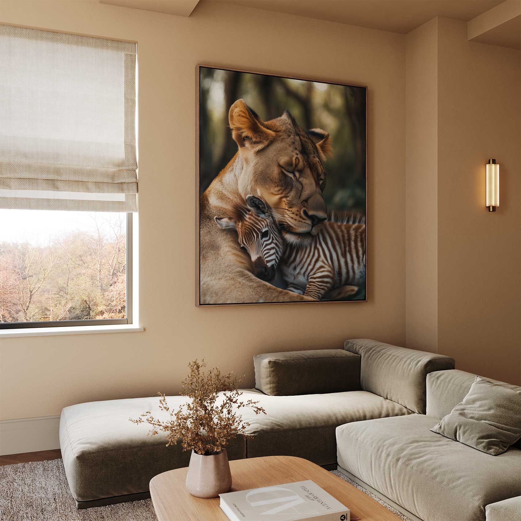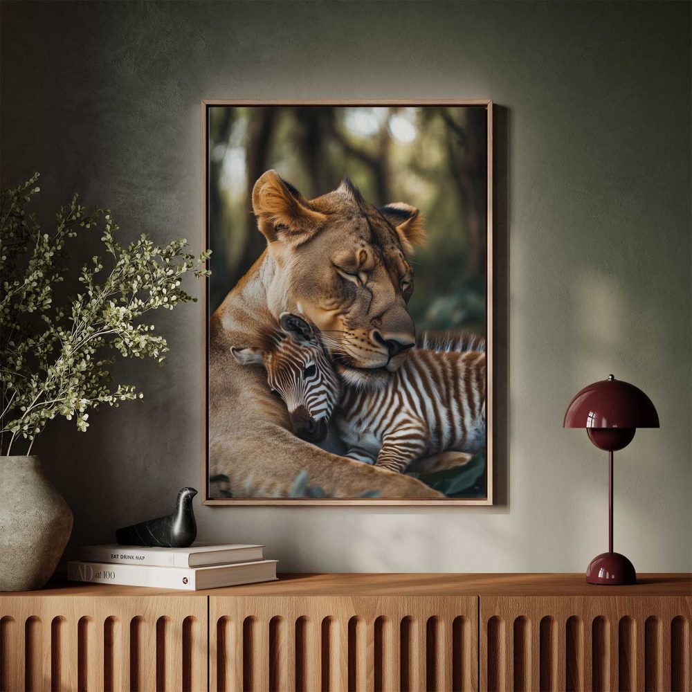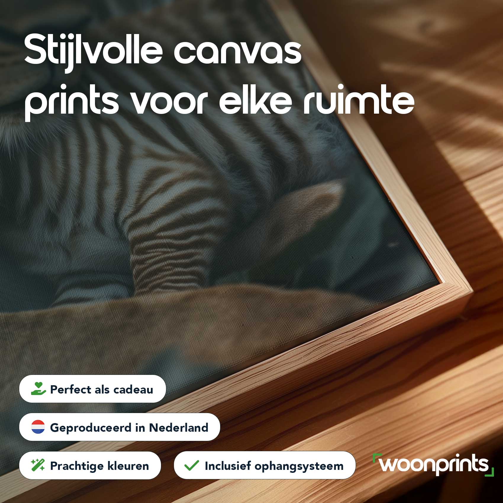 Terug naar collectie / Schilderijen / Bossen Schilderij / Lioness en welp knus moment