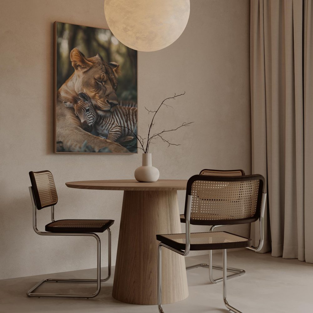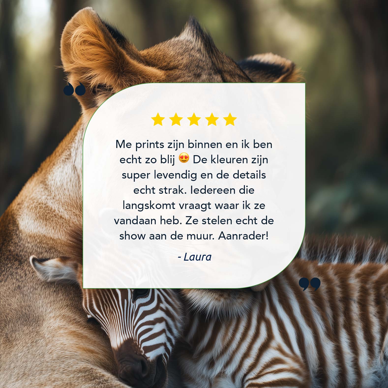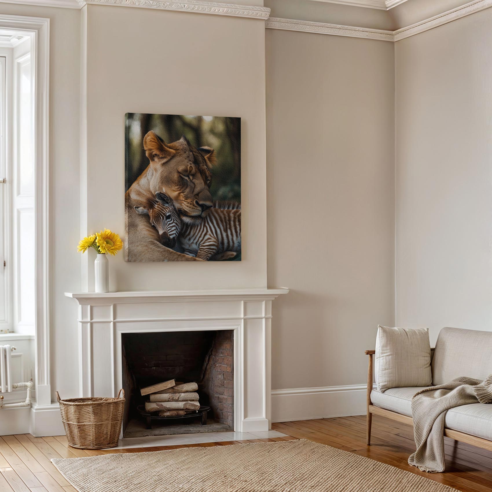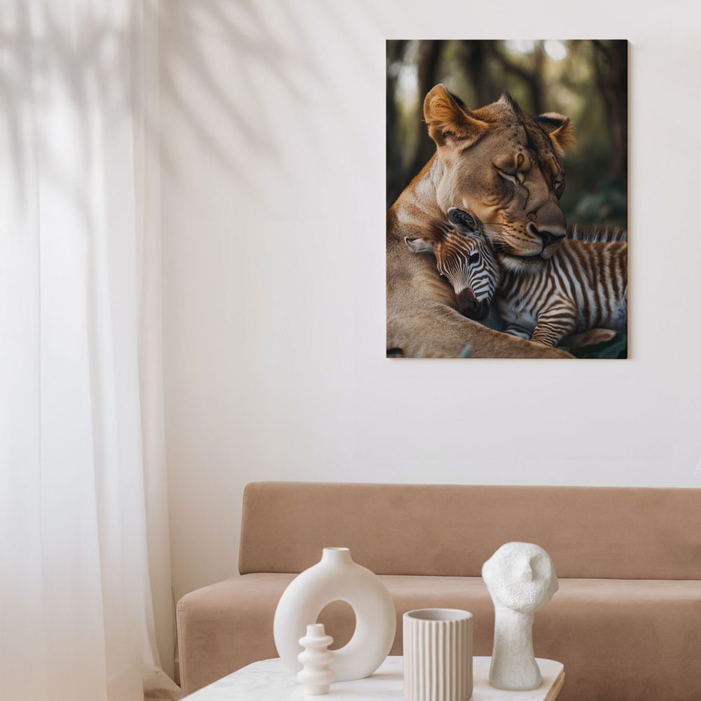 Terug naar collectie / Schilderijen / Bossen Schilderij / Lioness en welp knus moment