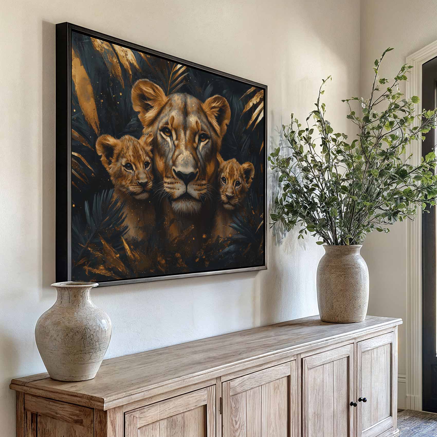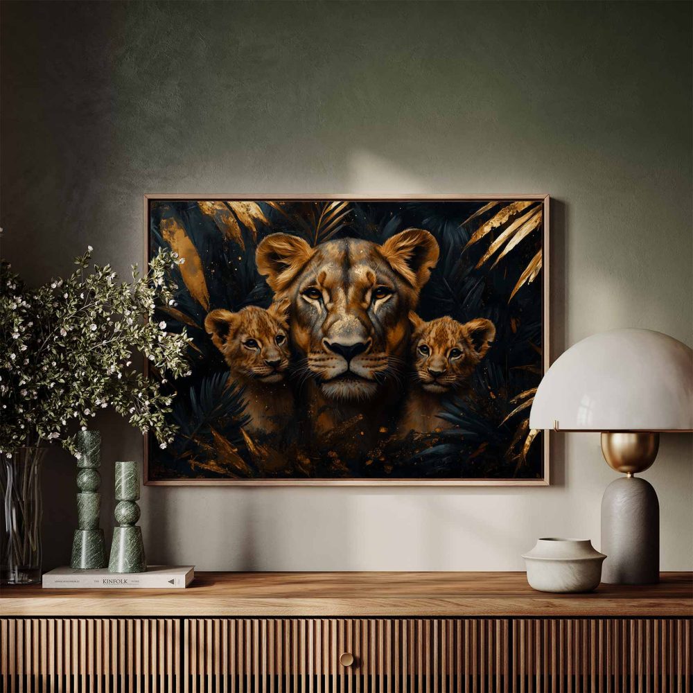 Terug naar collectie / Schilderijen / Bloemen Schilderij / Lioness met welpen in jungle