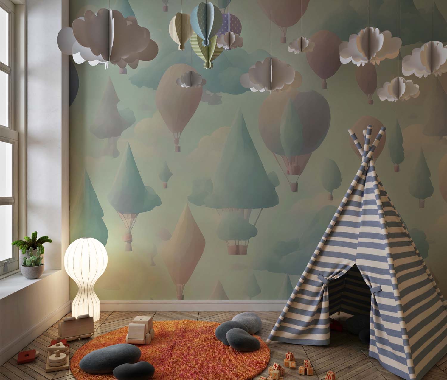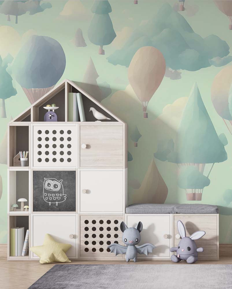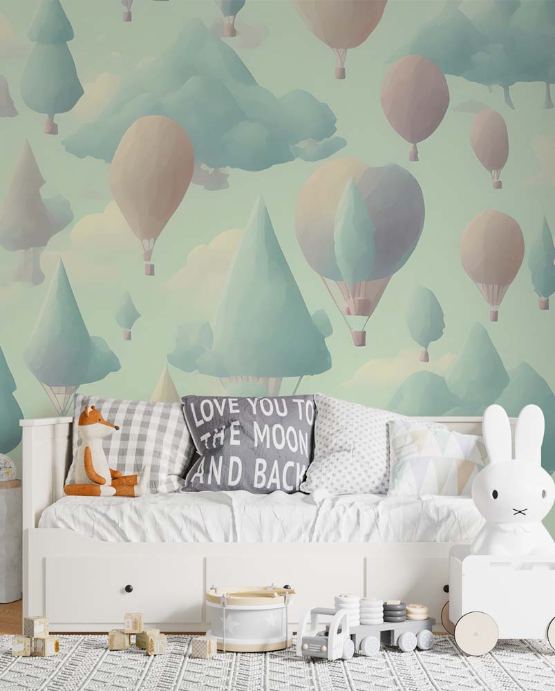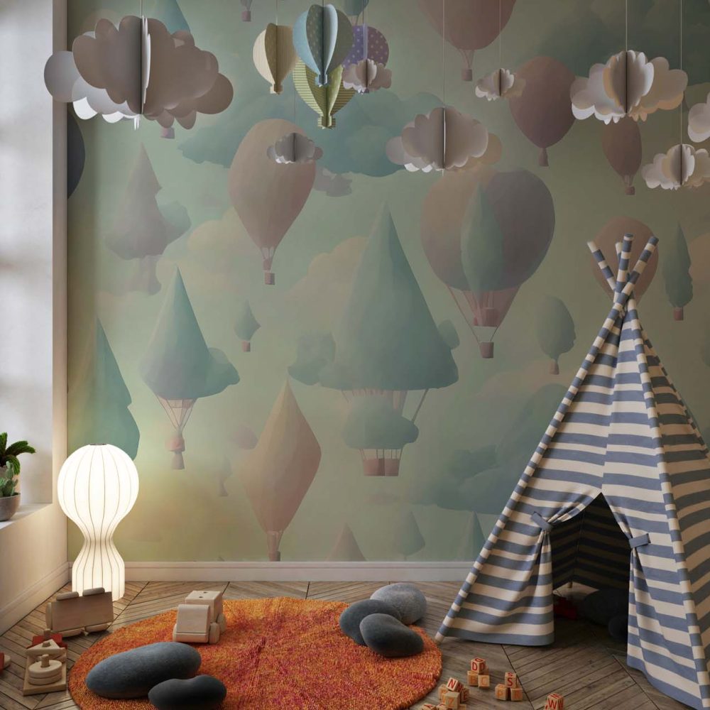 Luchtballonnen Landschap Kinderbehang