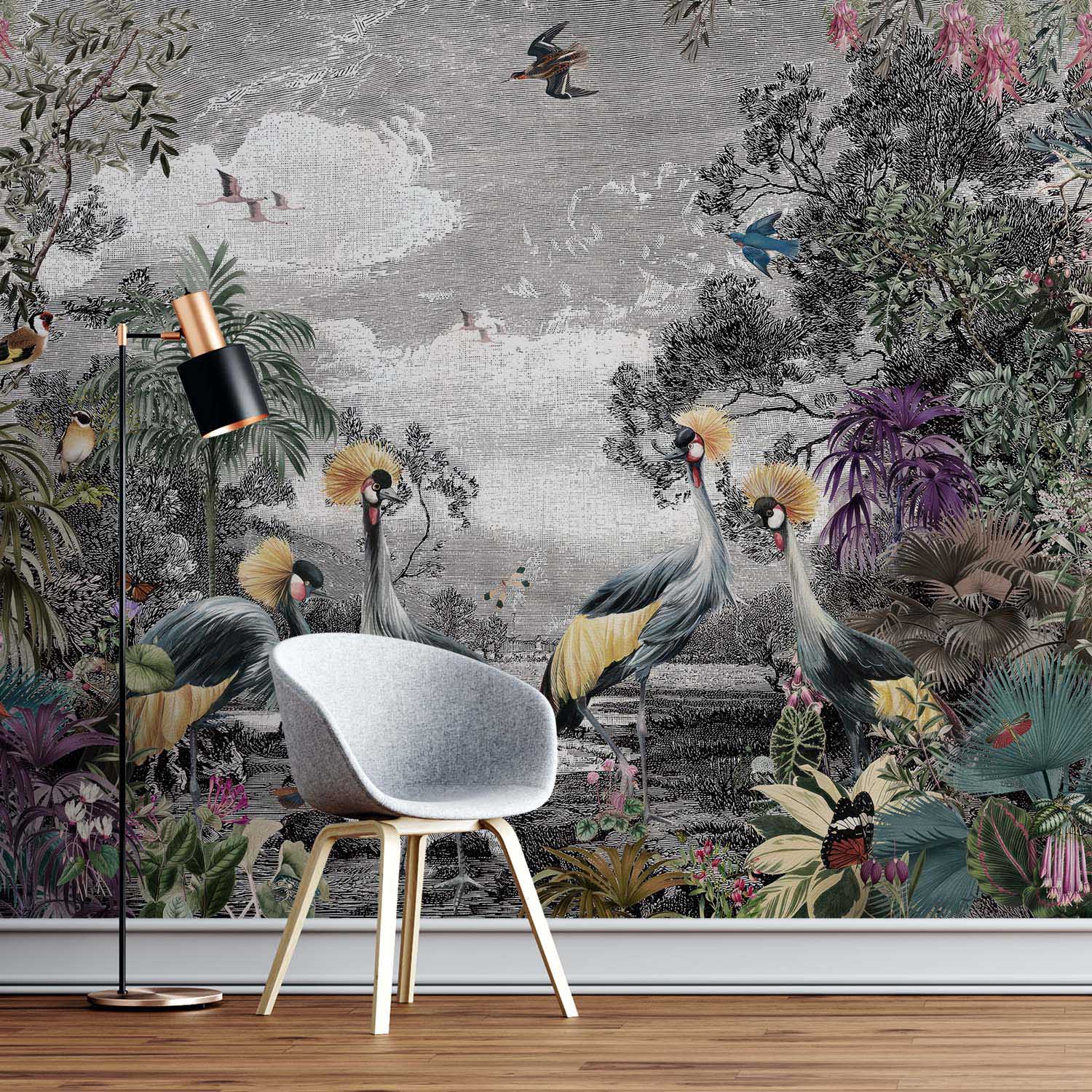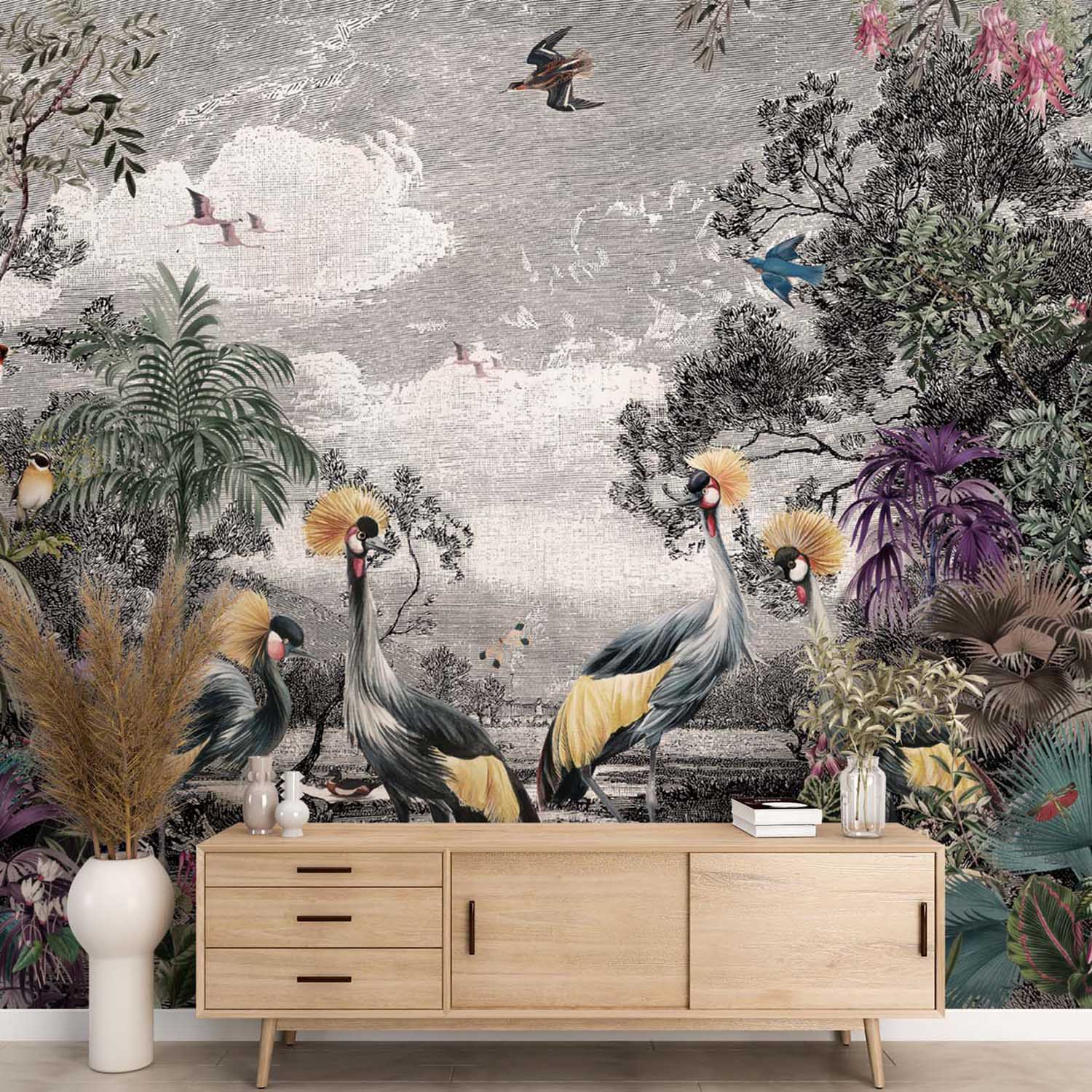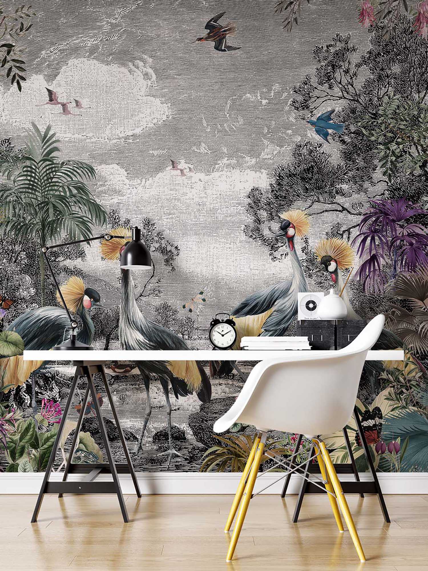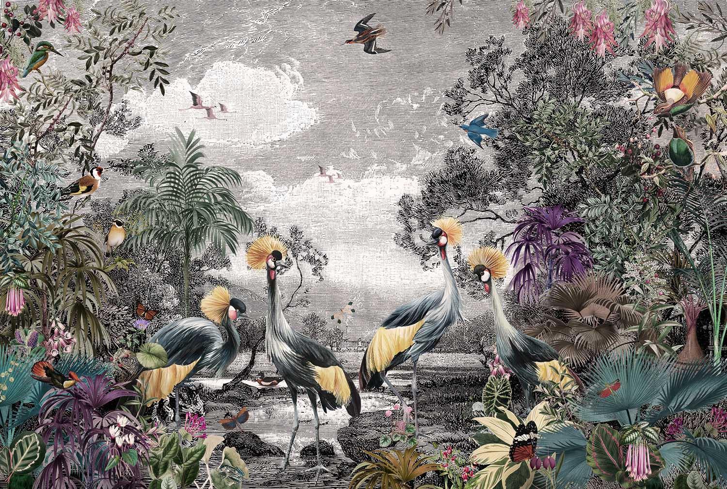Terug naar collectie / Behang / Luxueus Zwart-Wit Dieren Jungle Behang