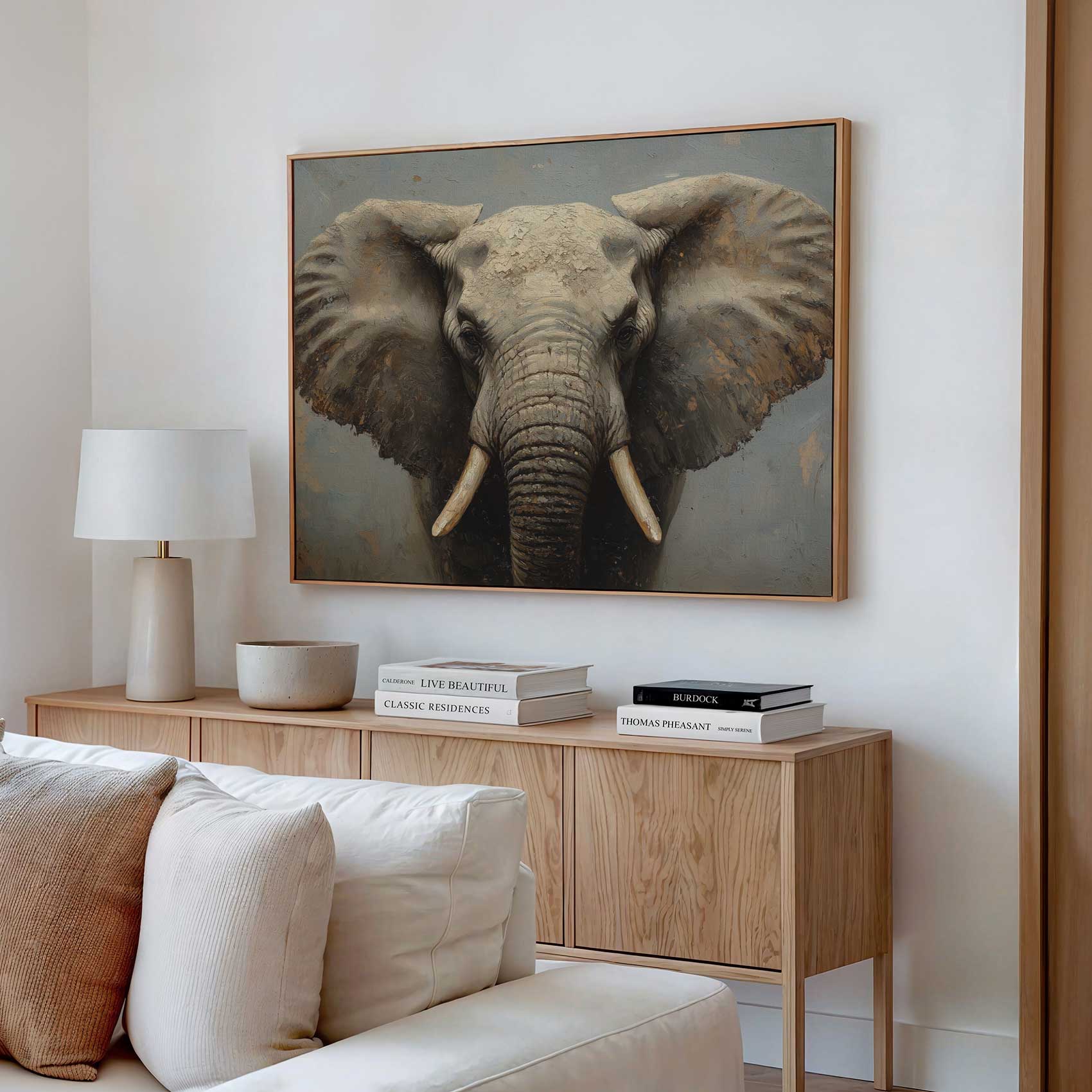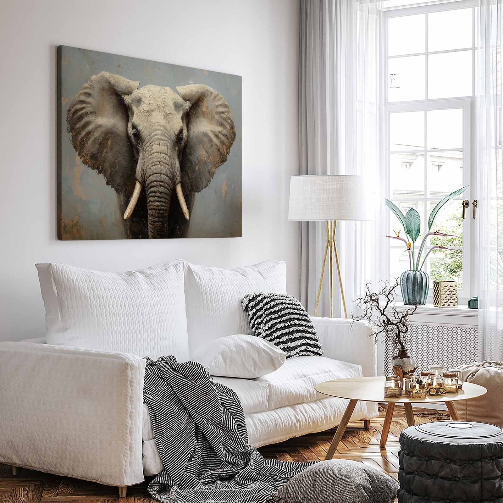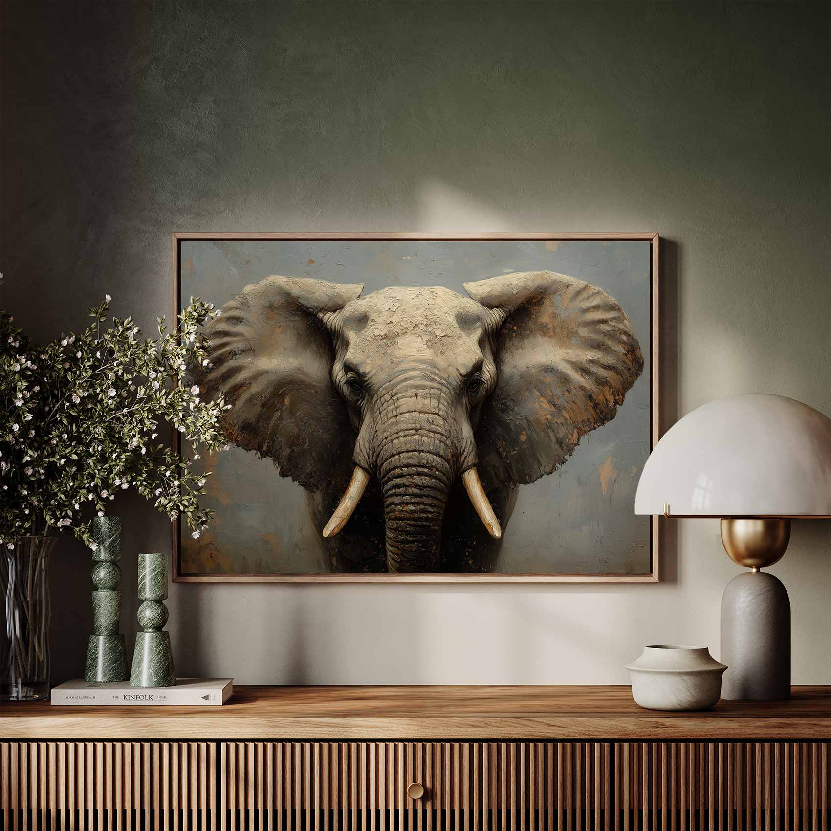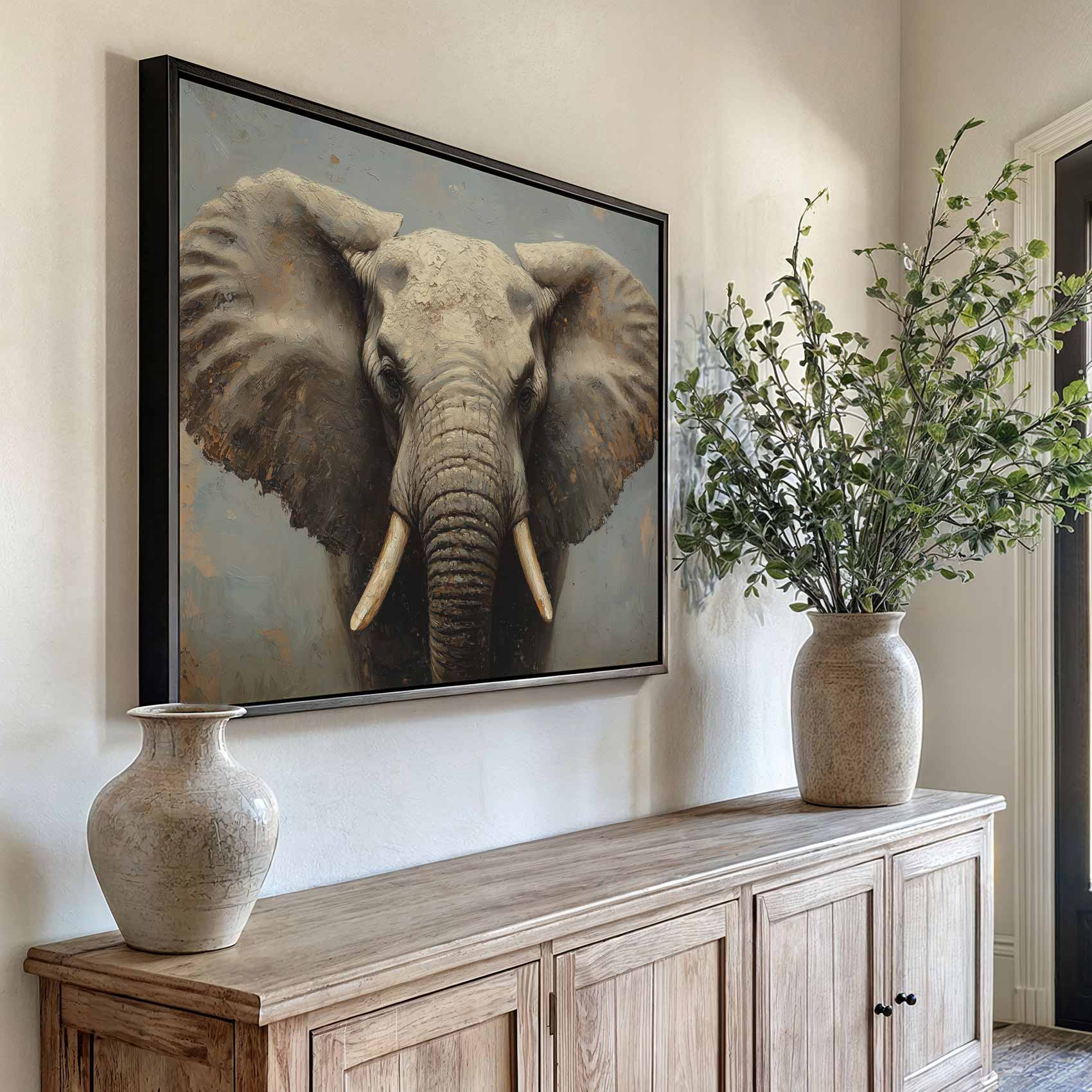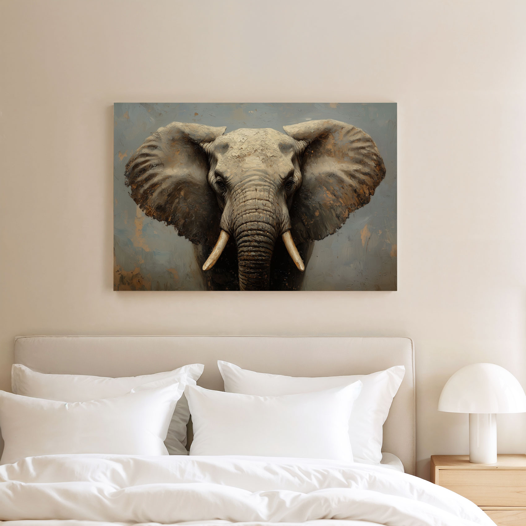 Terug naar collectie / Schilderijen / Dieren Schilderij / Machtig olifanten portret