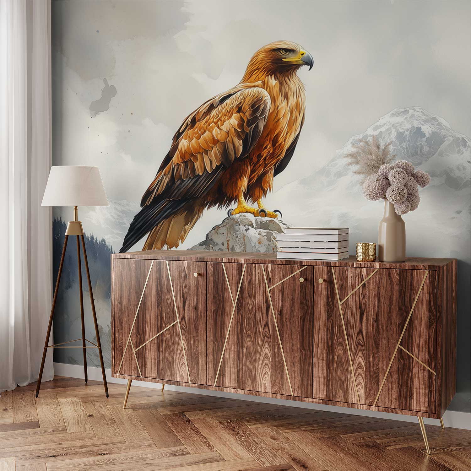 Terug naar collectie / Behang / Machtige adelaar op rots behang