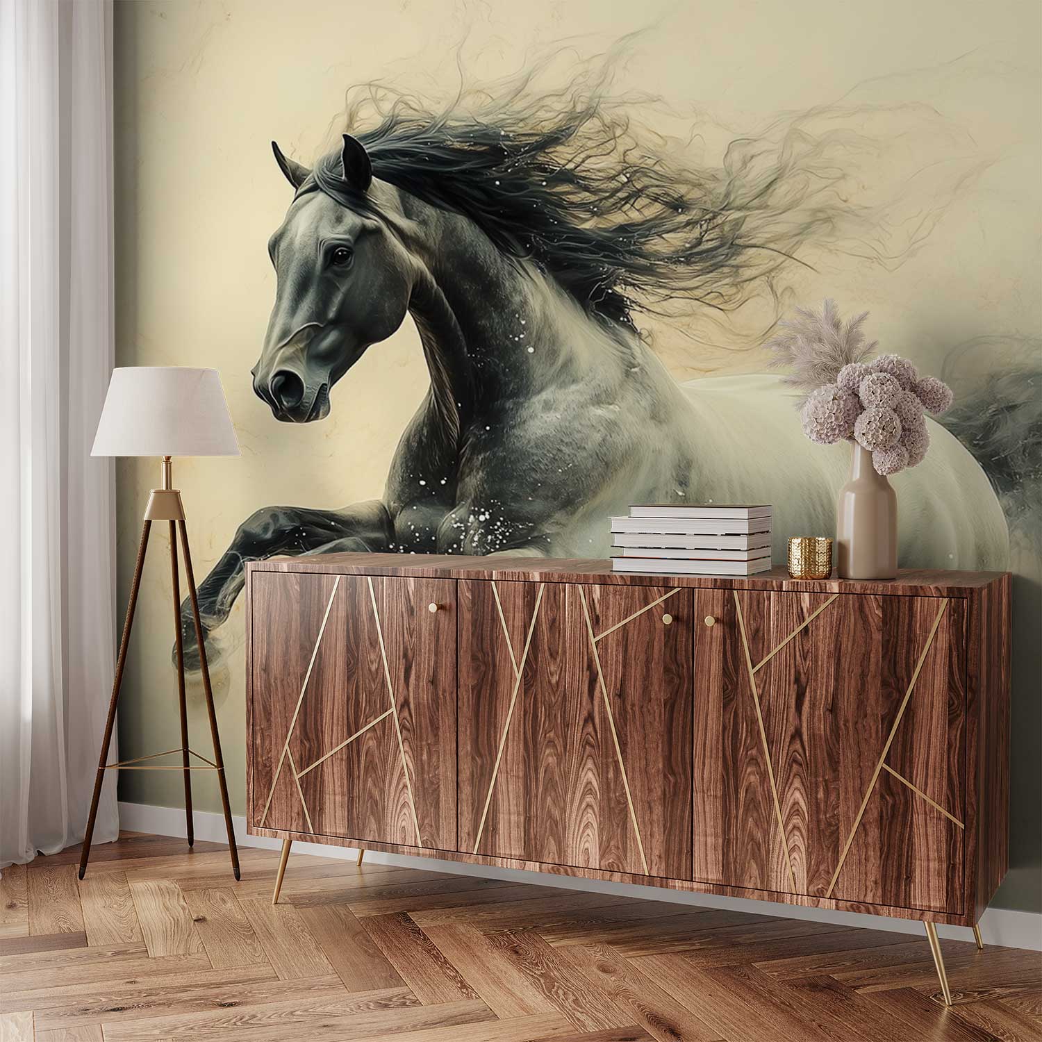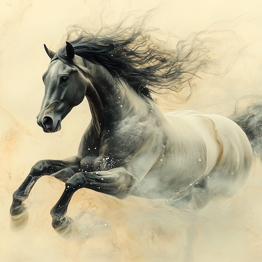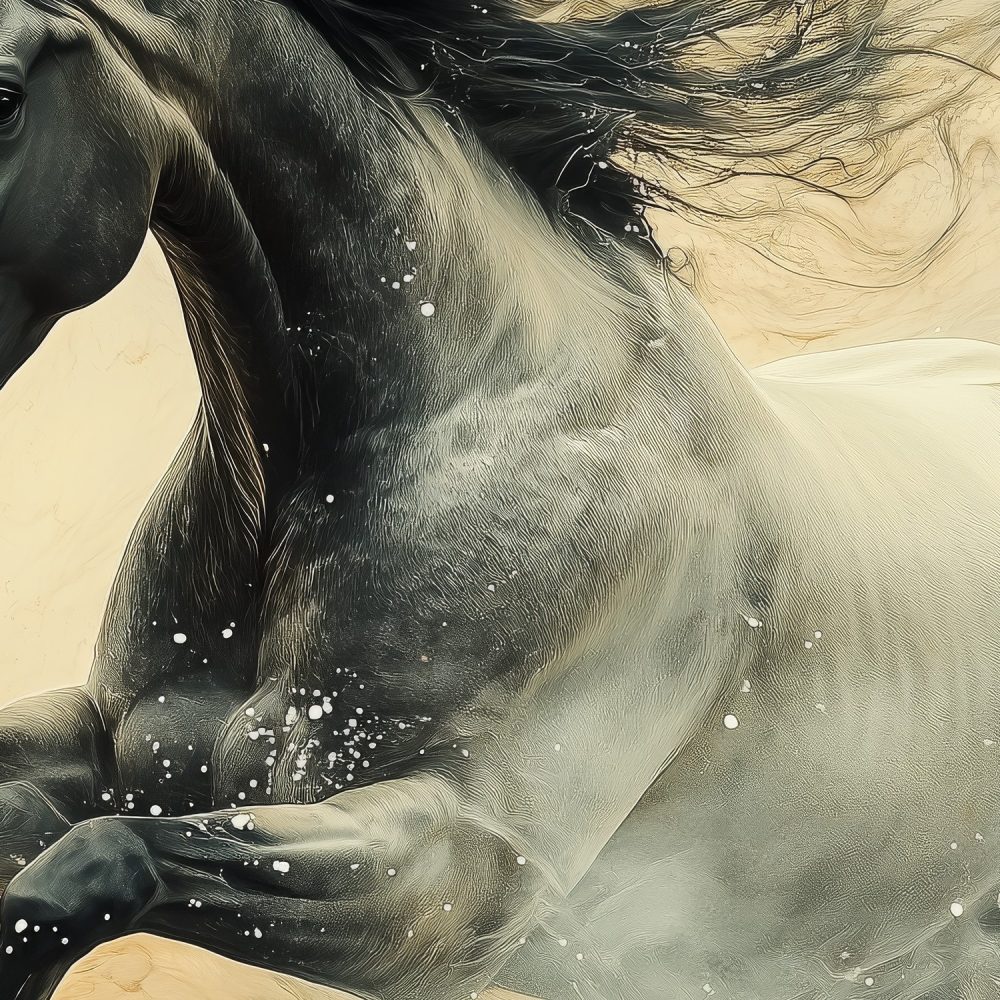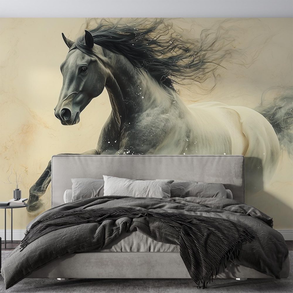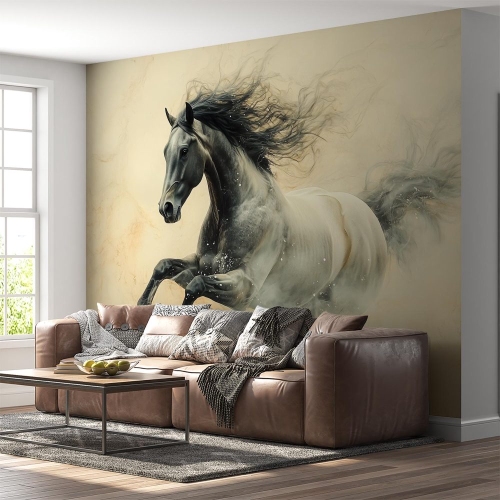 Machtige galopperende zwarte hengst behang