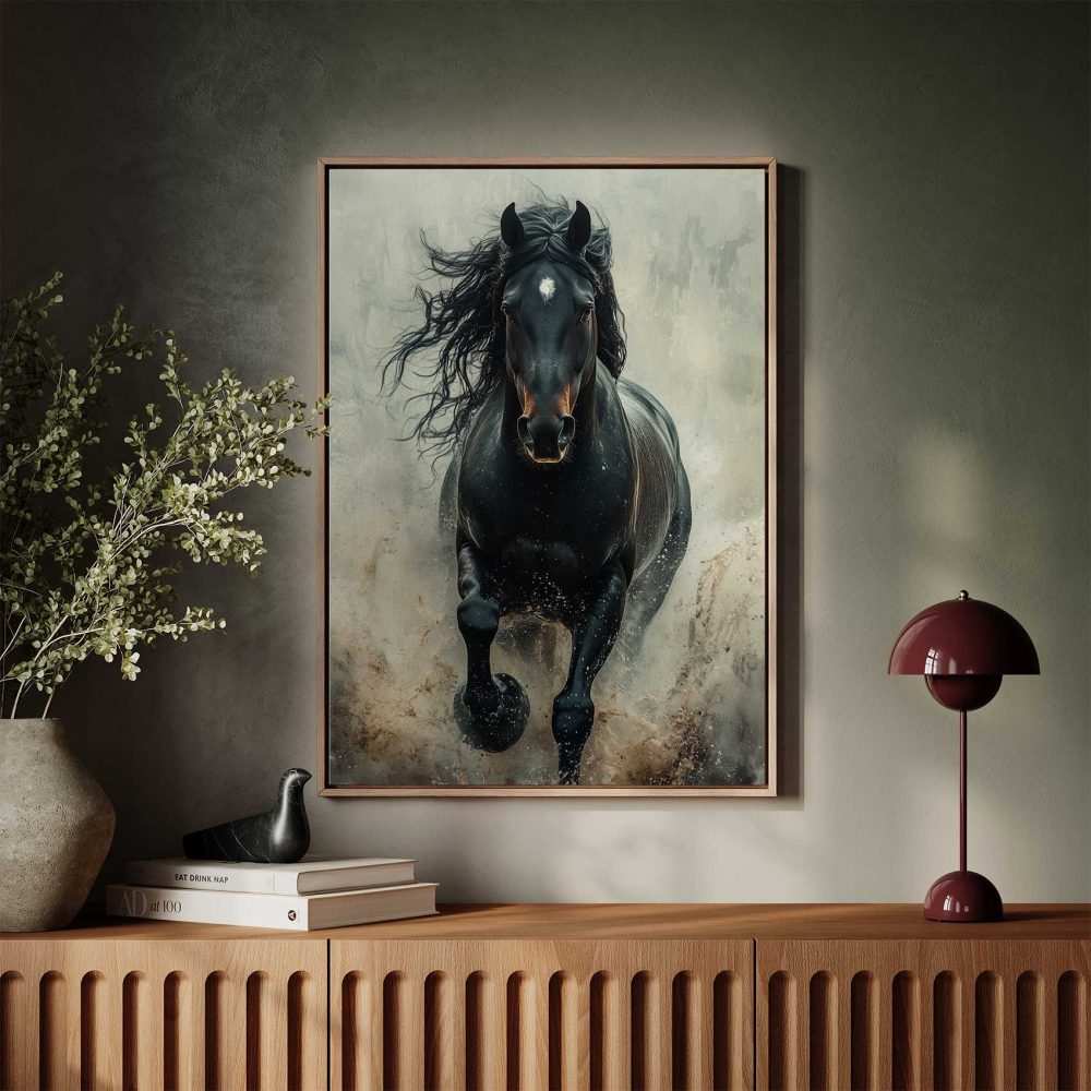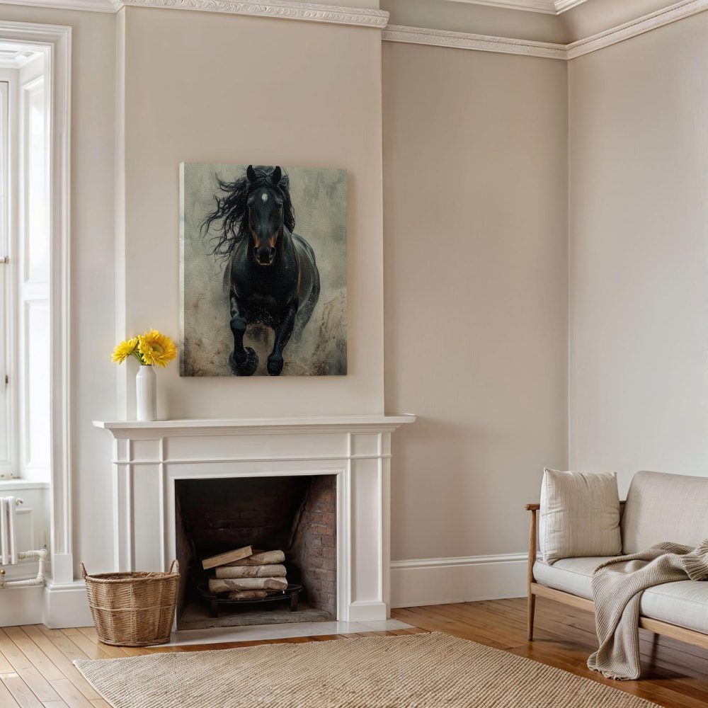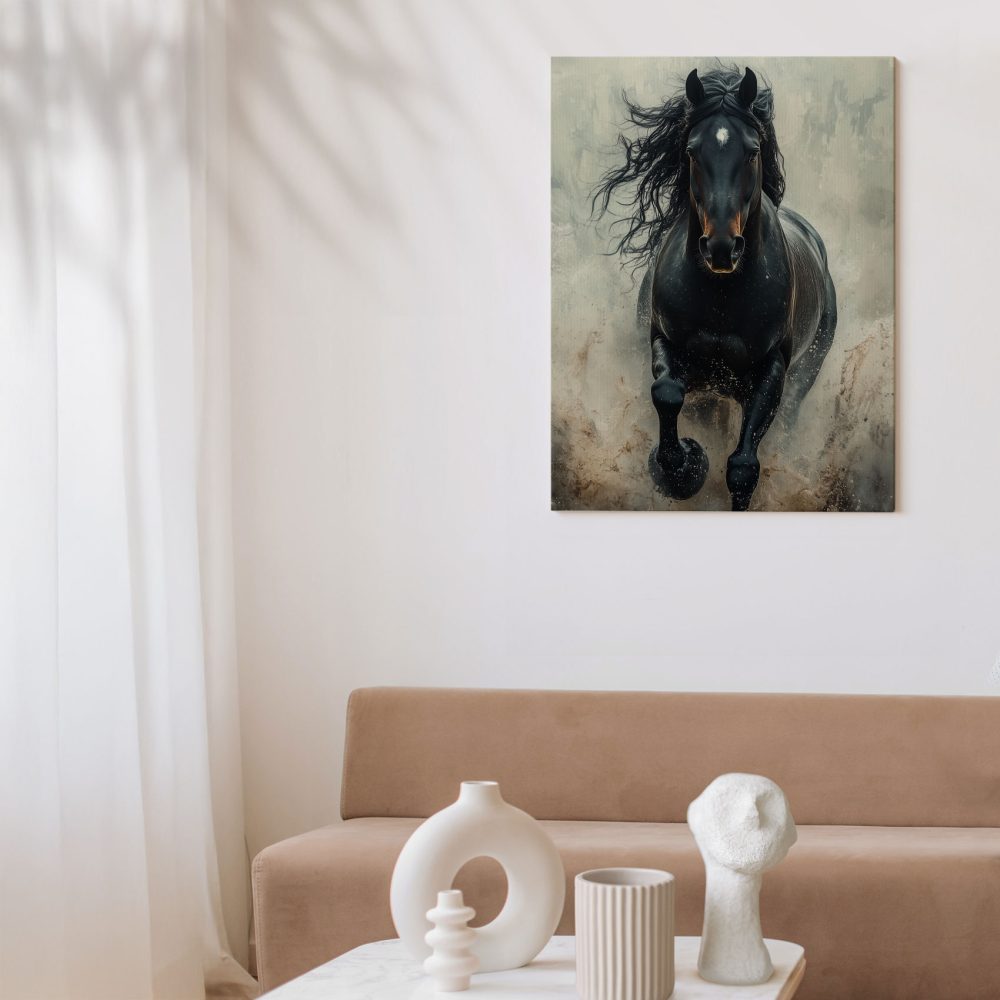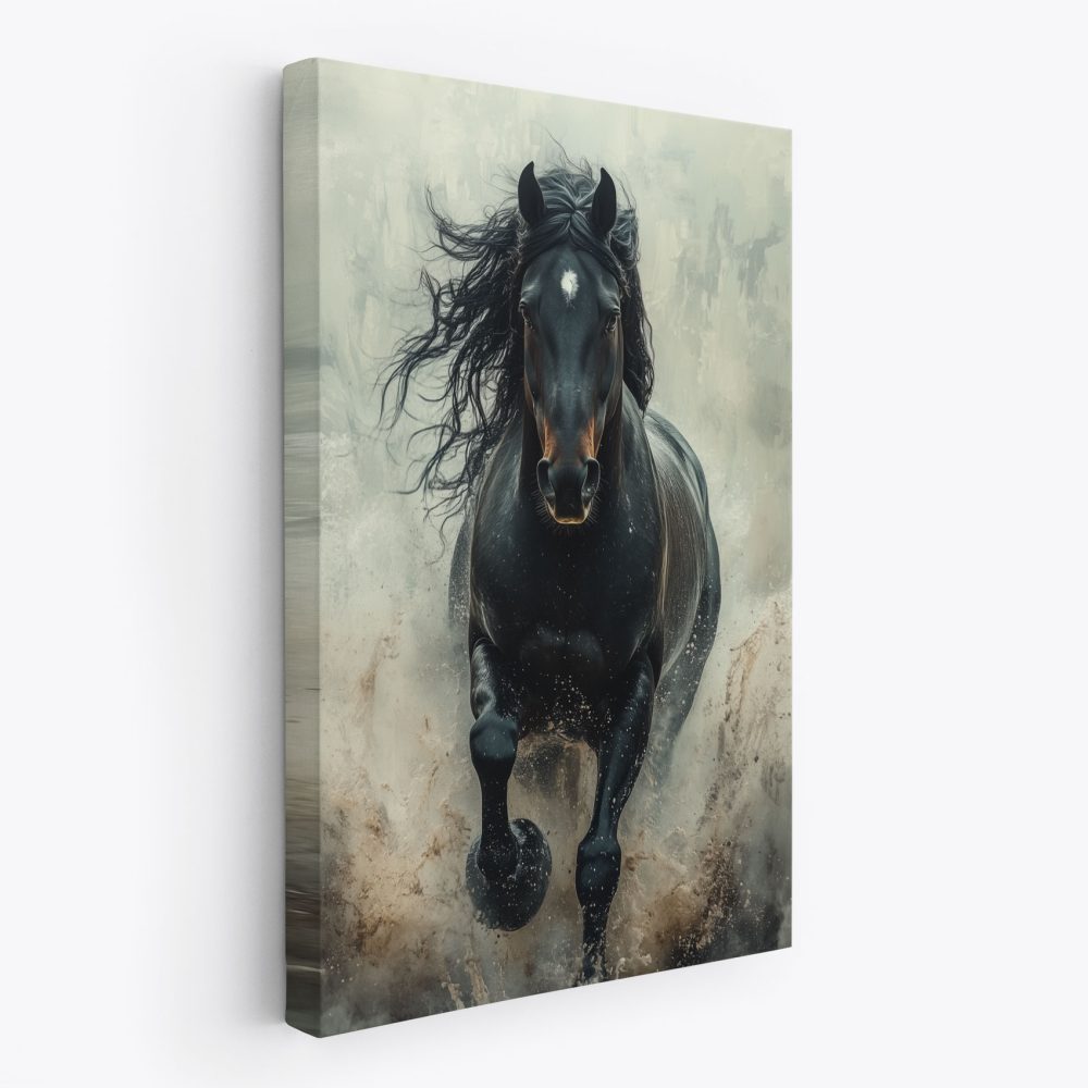 Terug naar collectie / Schilderijen / Dieren Schilderij / Machtige galopperende zwarte paard