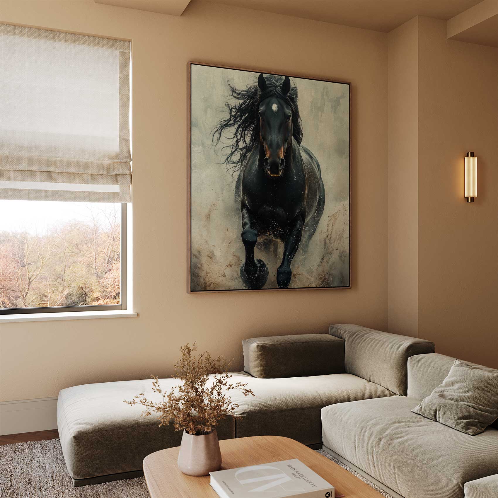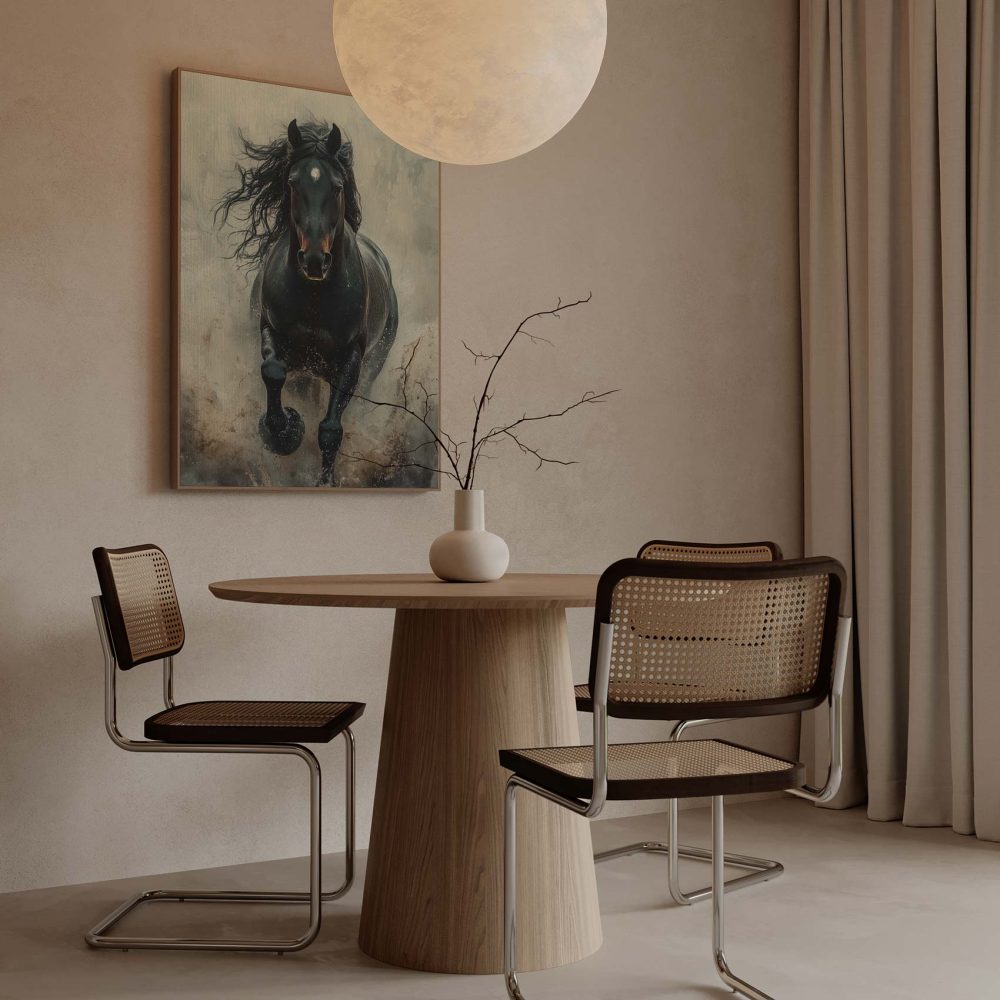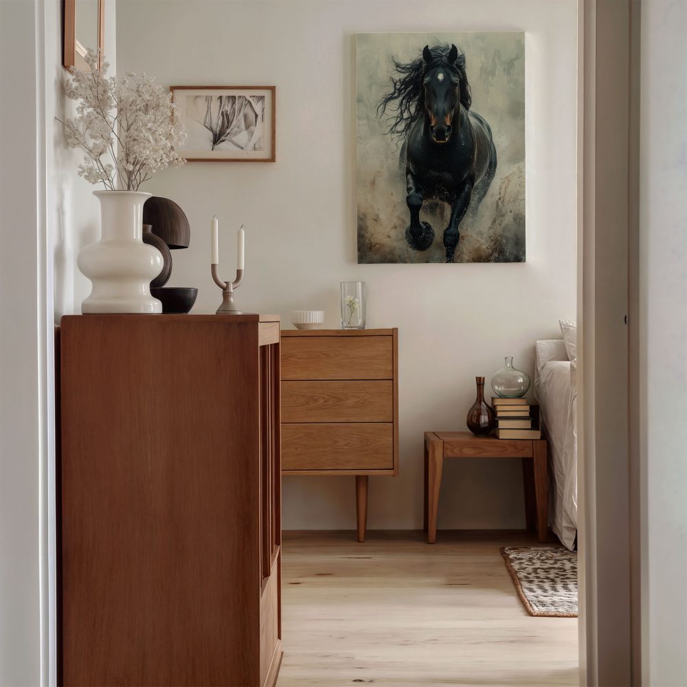 Terug naar collectie / Schilderijen / Dieren Schilderij / Machtige galopperende zwarte paard