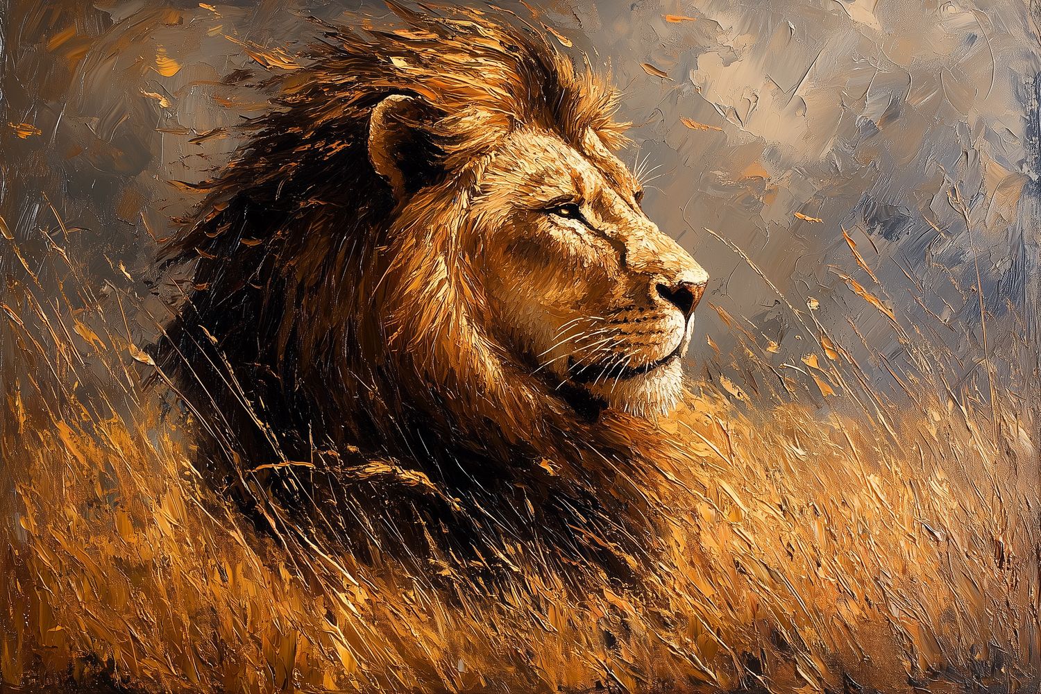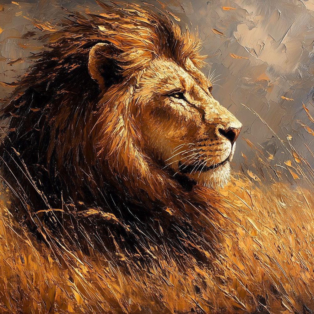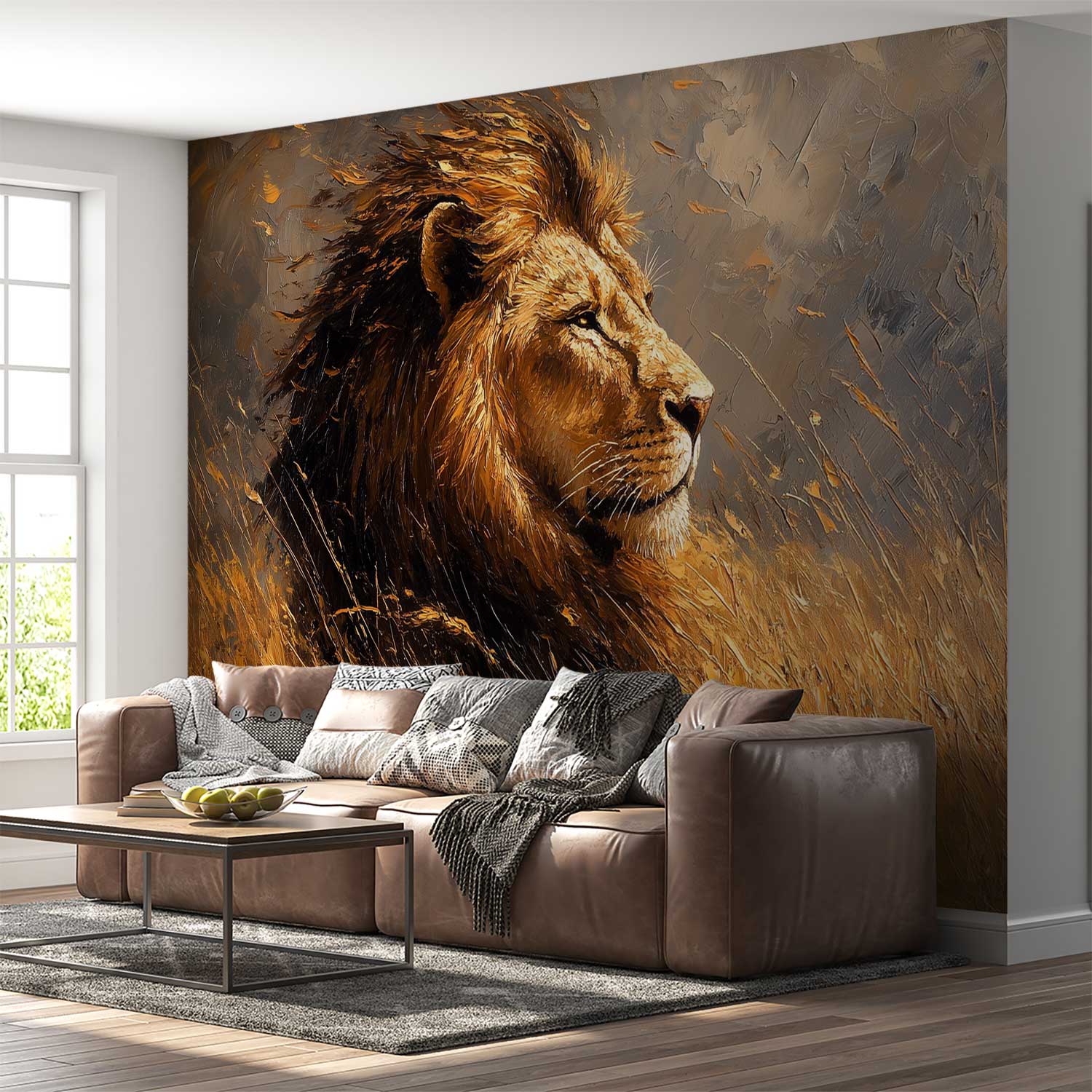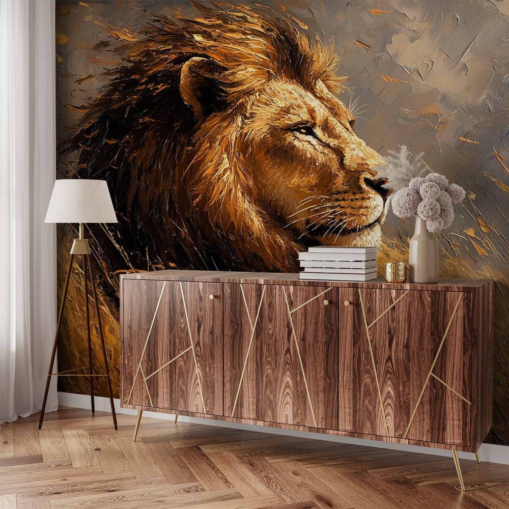 Terug naar collectie / Behang / Abstract behang / Machtige leeuw in natuur behang