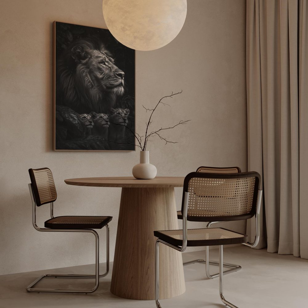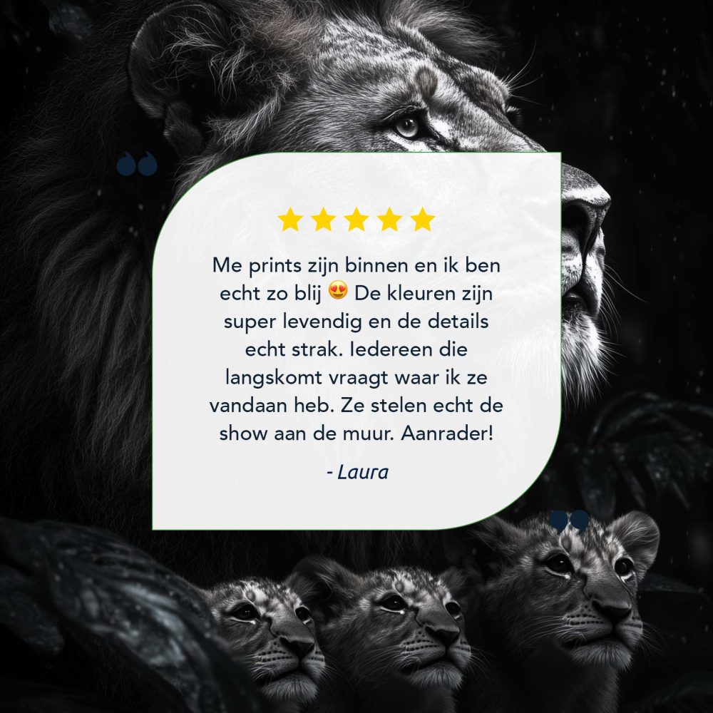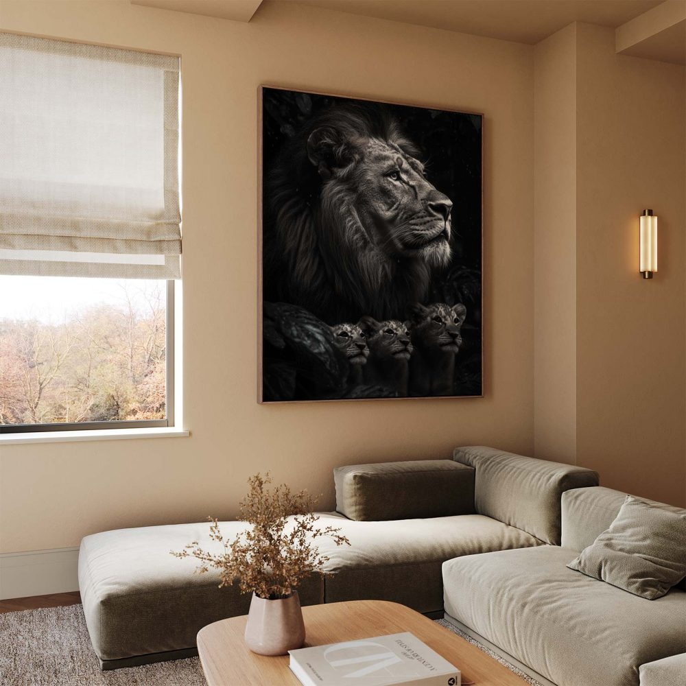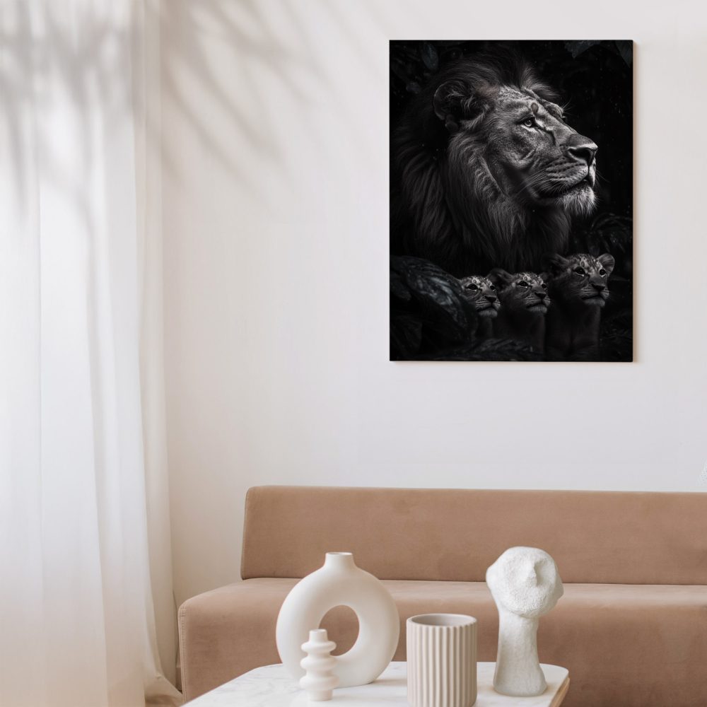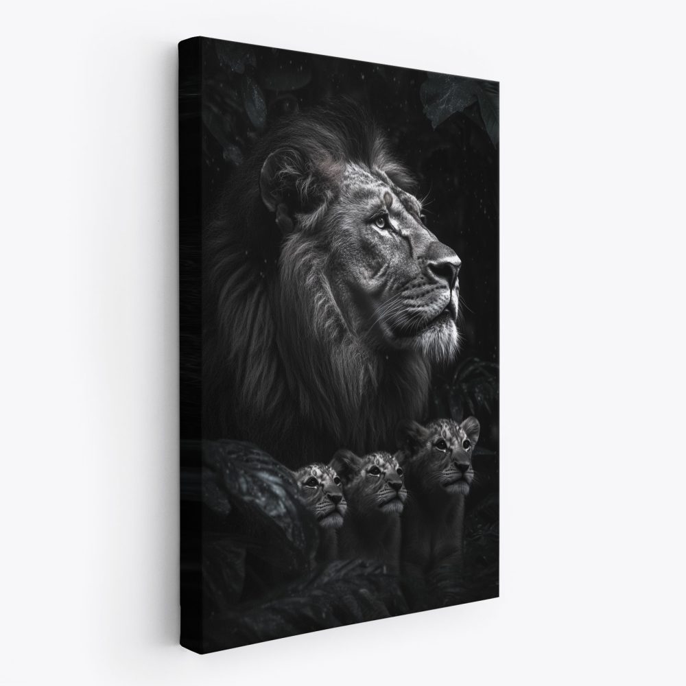 Terug naar collectie / Schilderijen / Bossen Schilderij / Machtige leeuw in zwart-wit