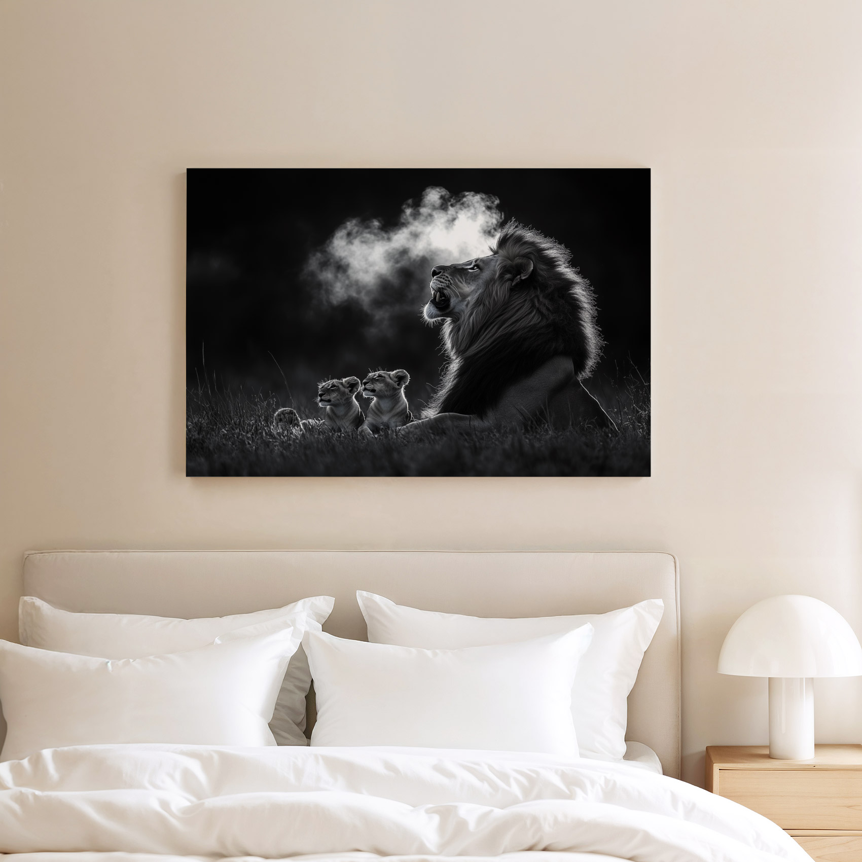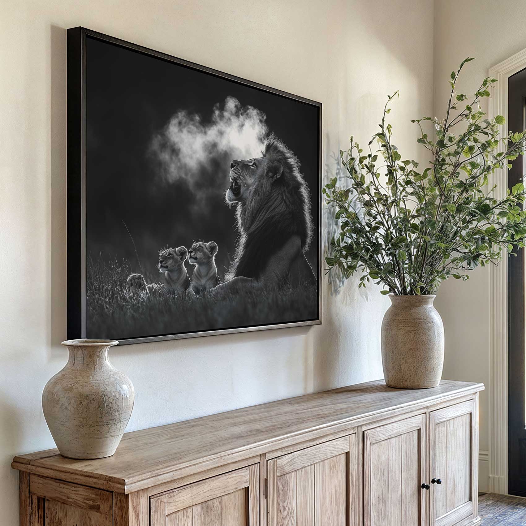Terug naar collectie / Schilderijen / Dieren Schilderij / Machtige leeuw in zwart-wit
