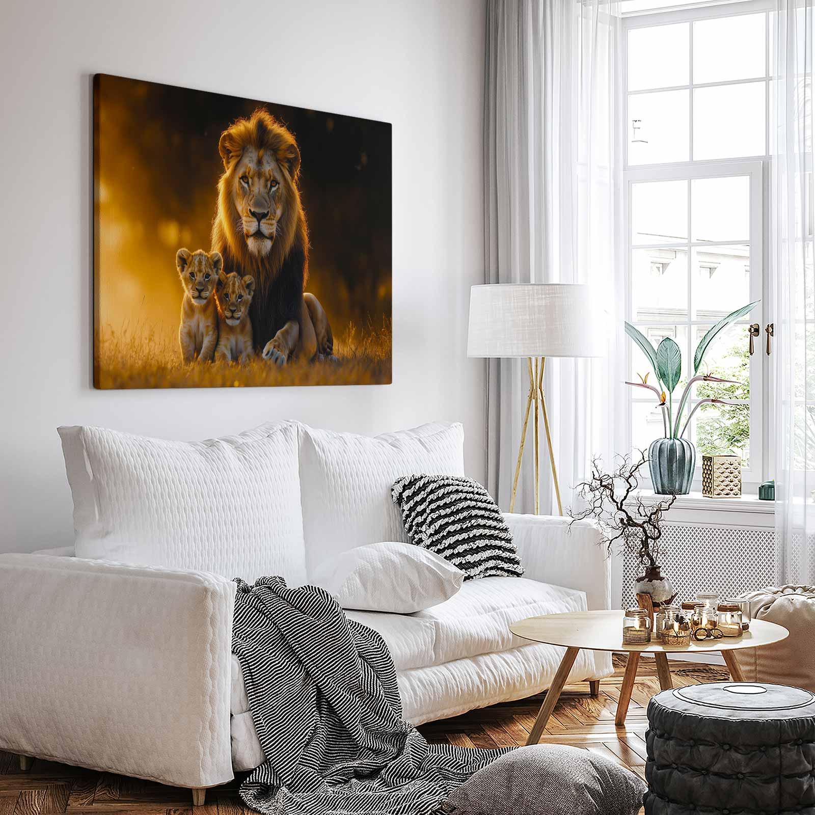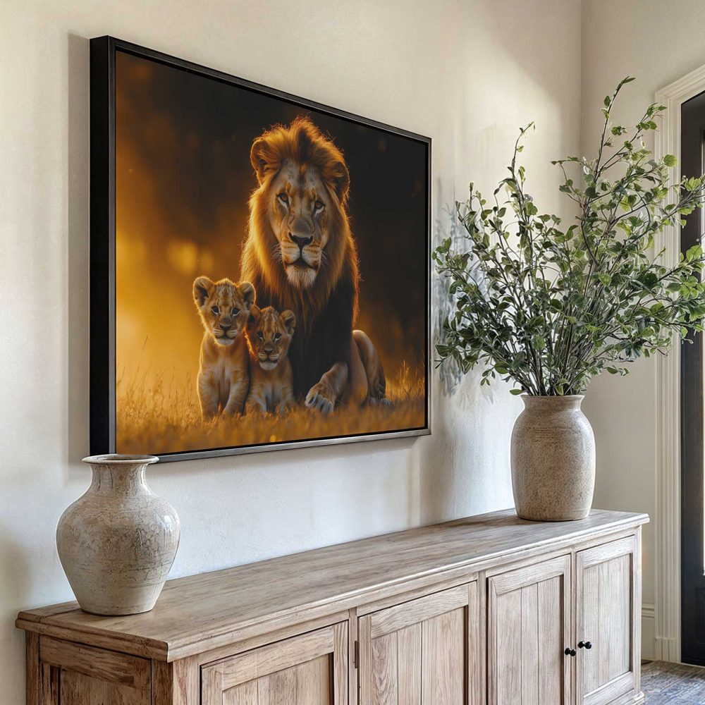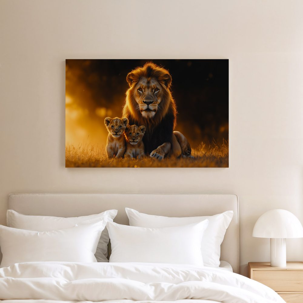 Terug naar collectie / Schilderijen / Dieren Schilderij / Machtige leeuw met welpen