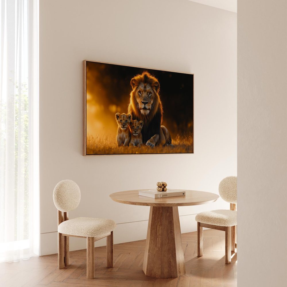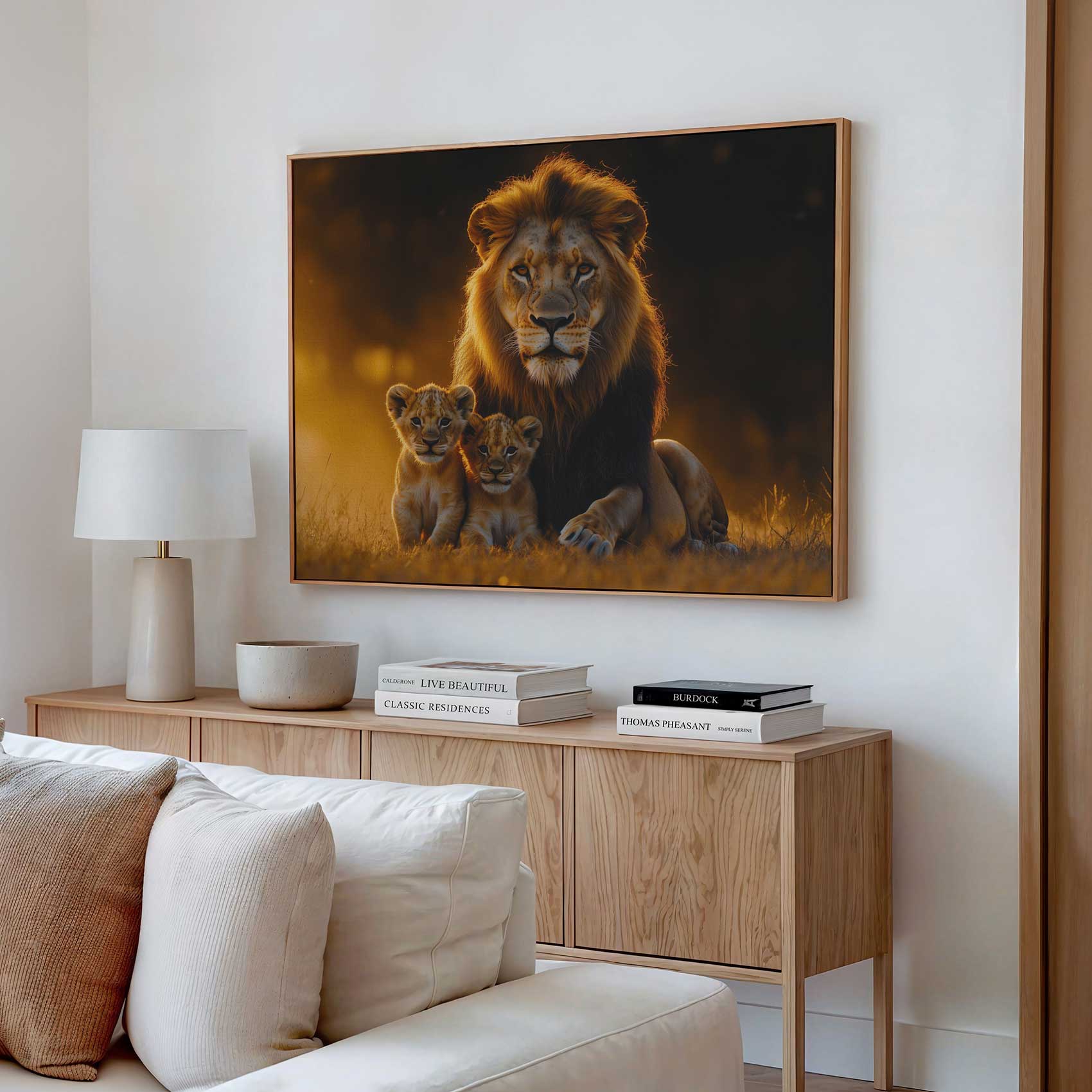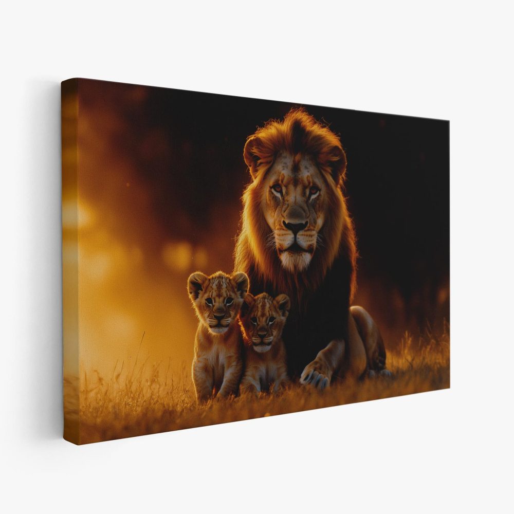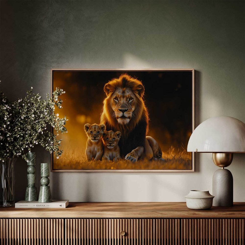 Terug naar collectie / Schilderijen / Dieren Schilderij / Machtige leeuw met welpen