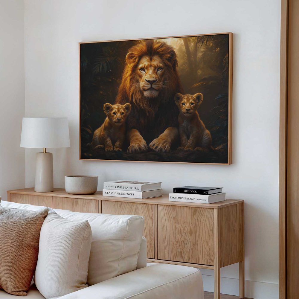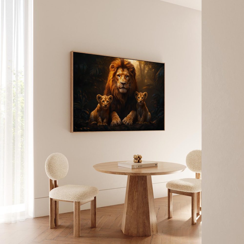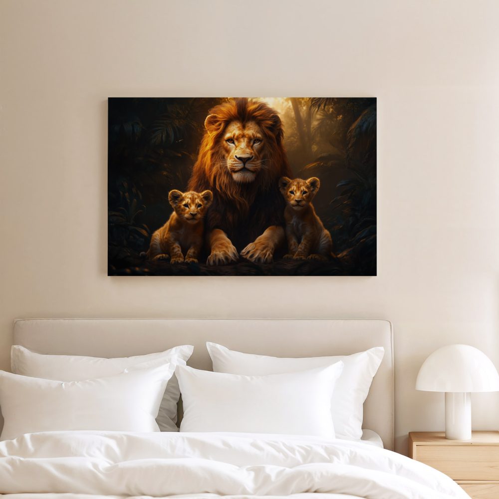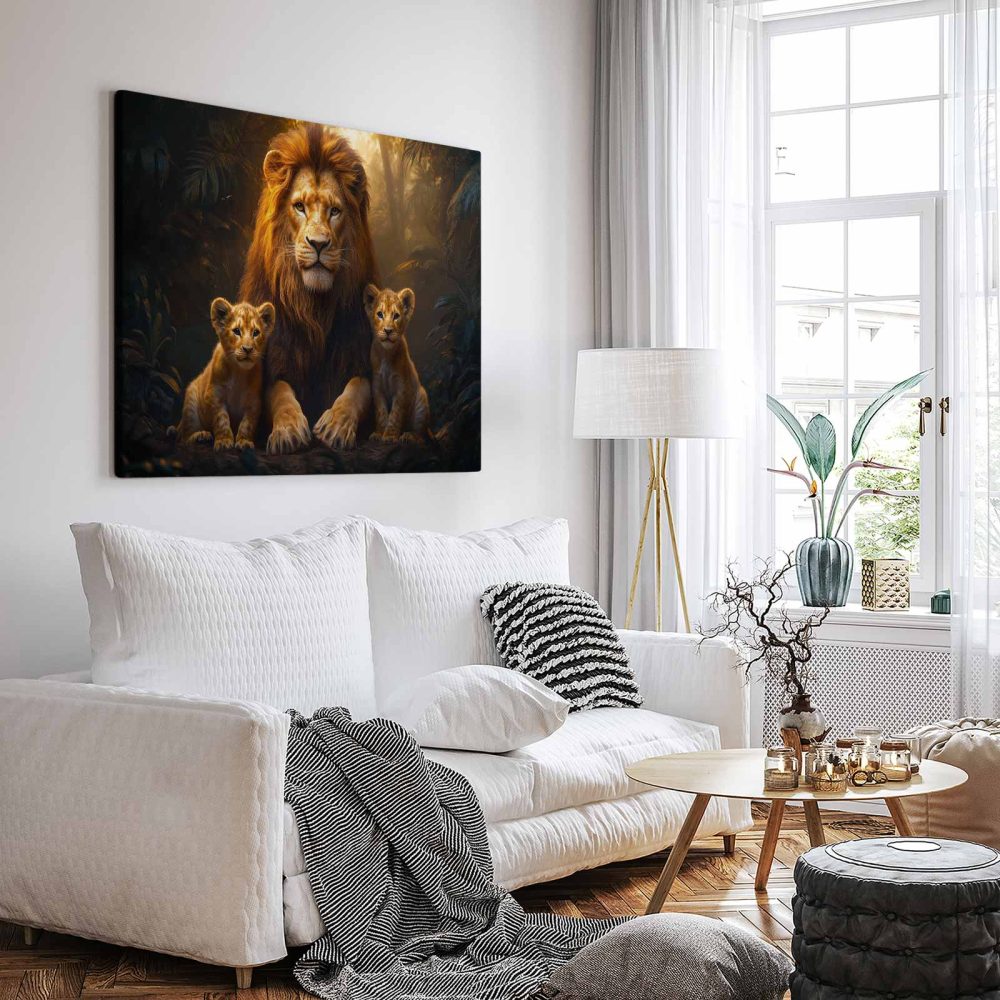 Terug naar collectie / Schilderijen / Bossen Schilderij / Machtige leeuw met welpen