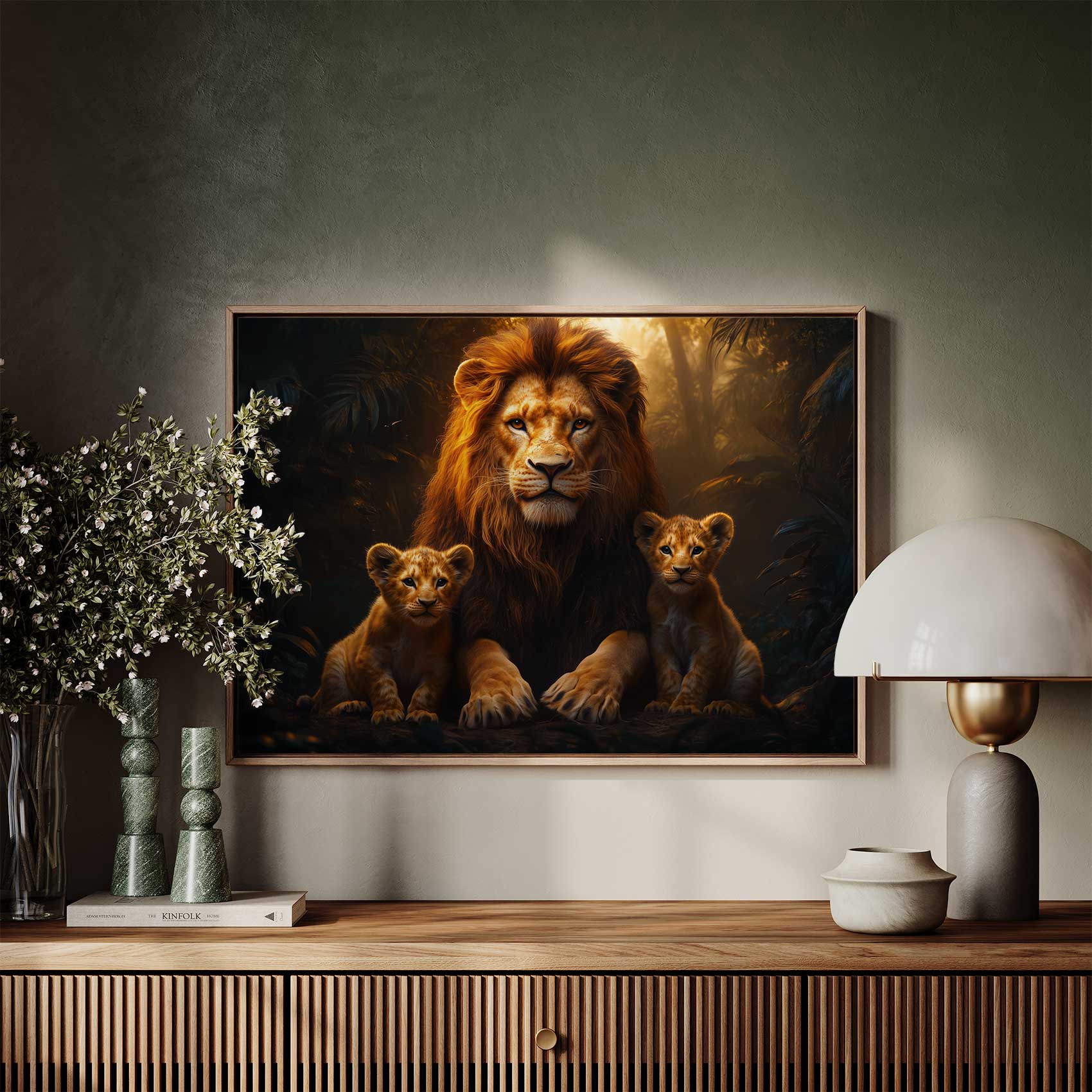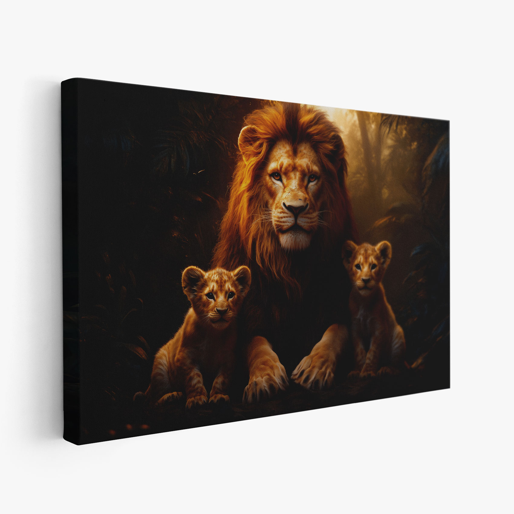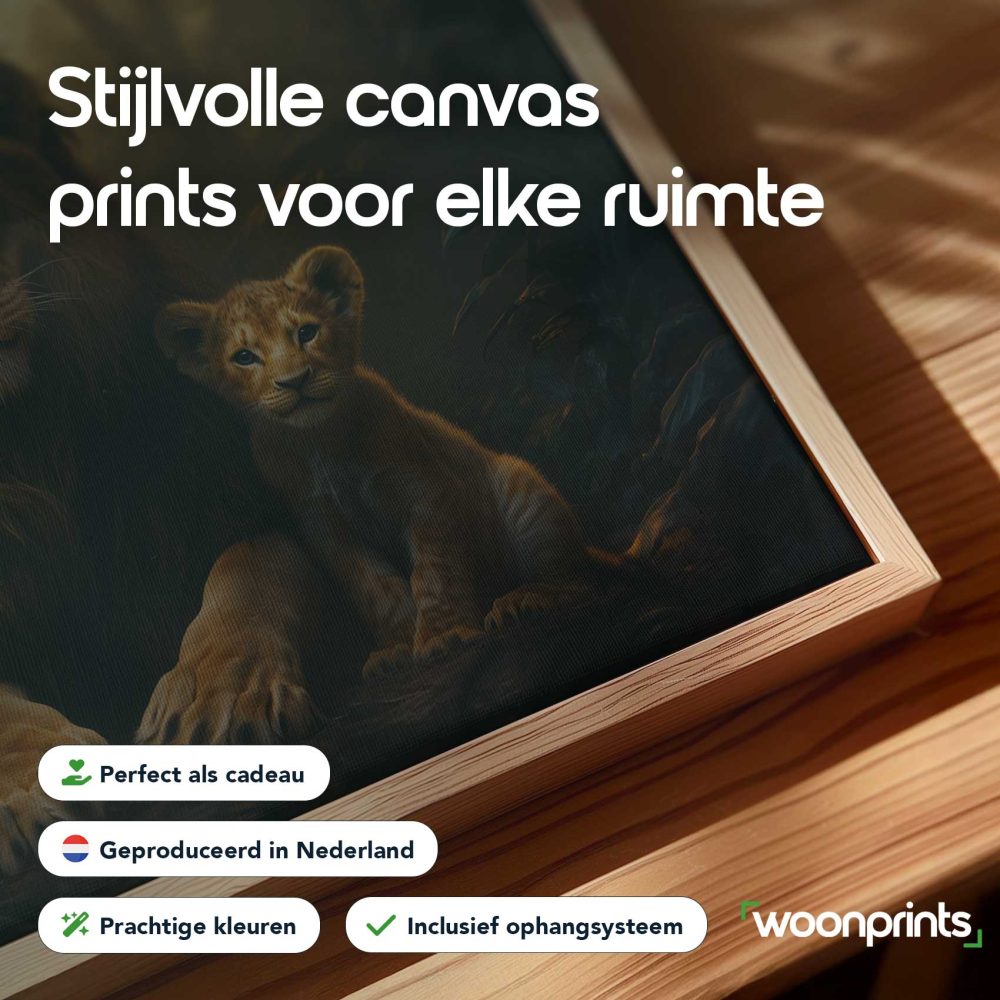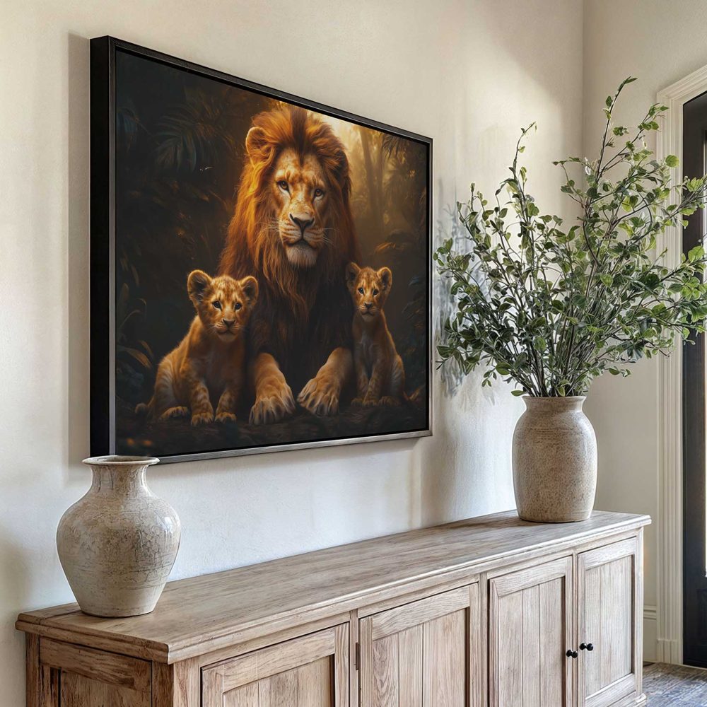Terug naar collectie / Schilderijen / Bossen Schilderij / Machtige leeuw met welpen