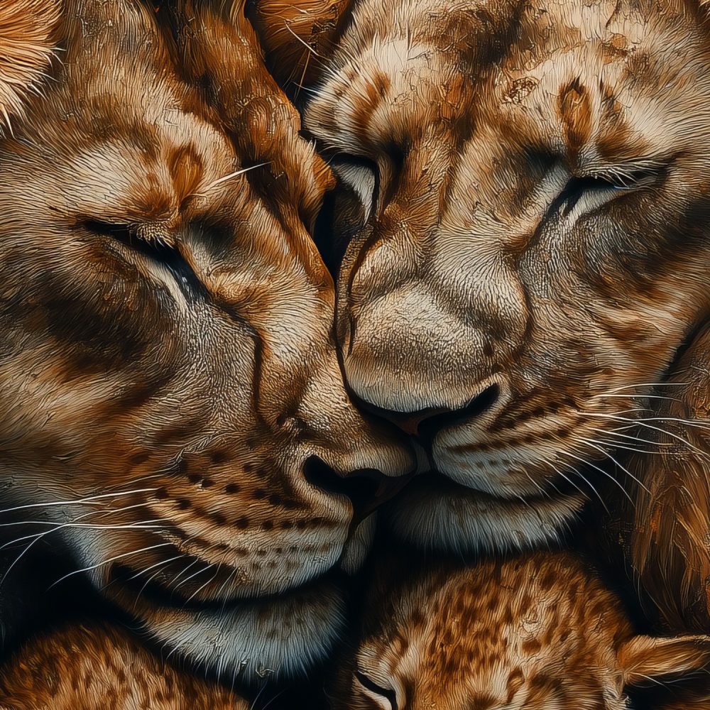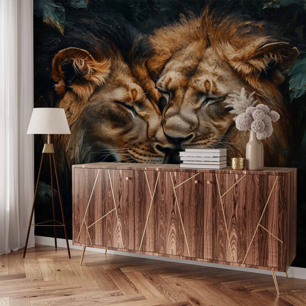Terug naar collectie / Behang / Machtige leeuwenfamilie-eenheid behang