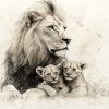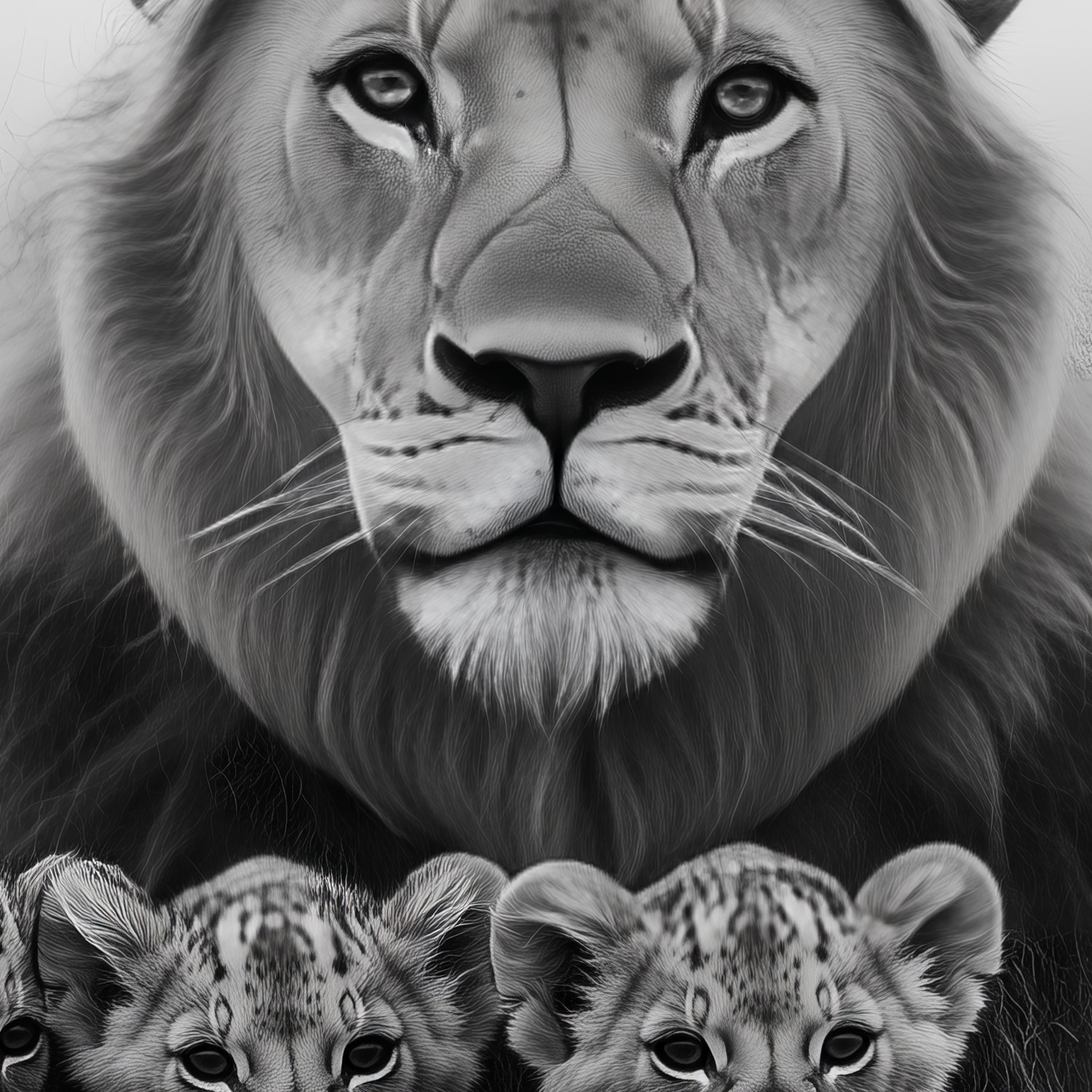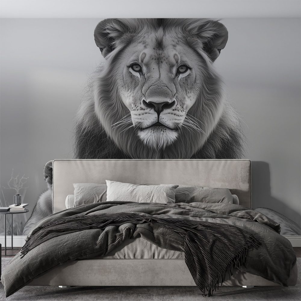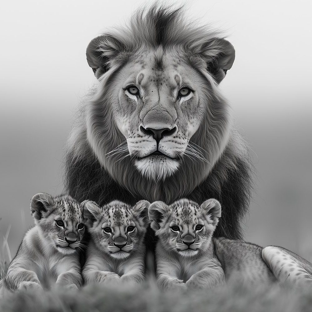 Terug naar collectie / Behang / Machtige leeuwenfamilie in zwart-wit behang