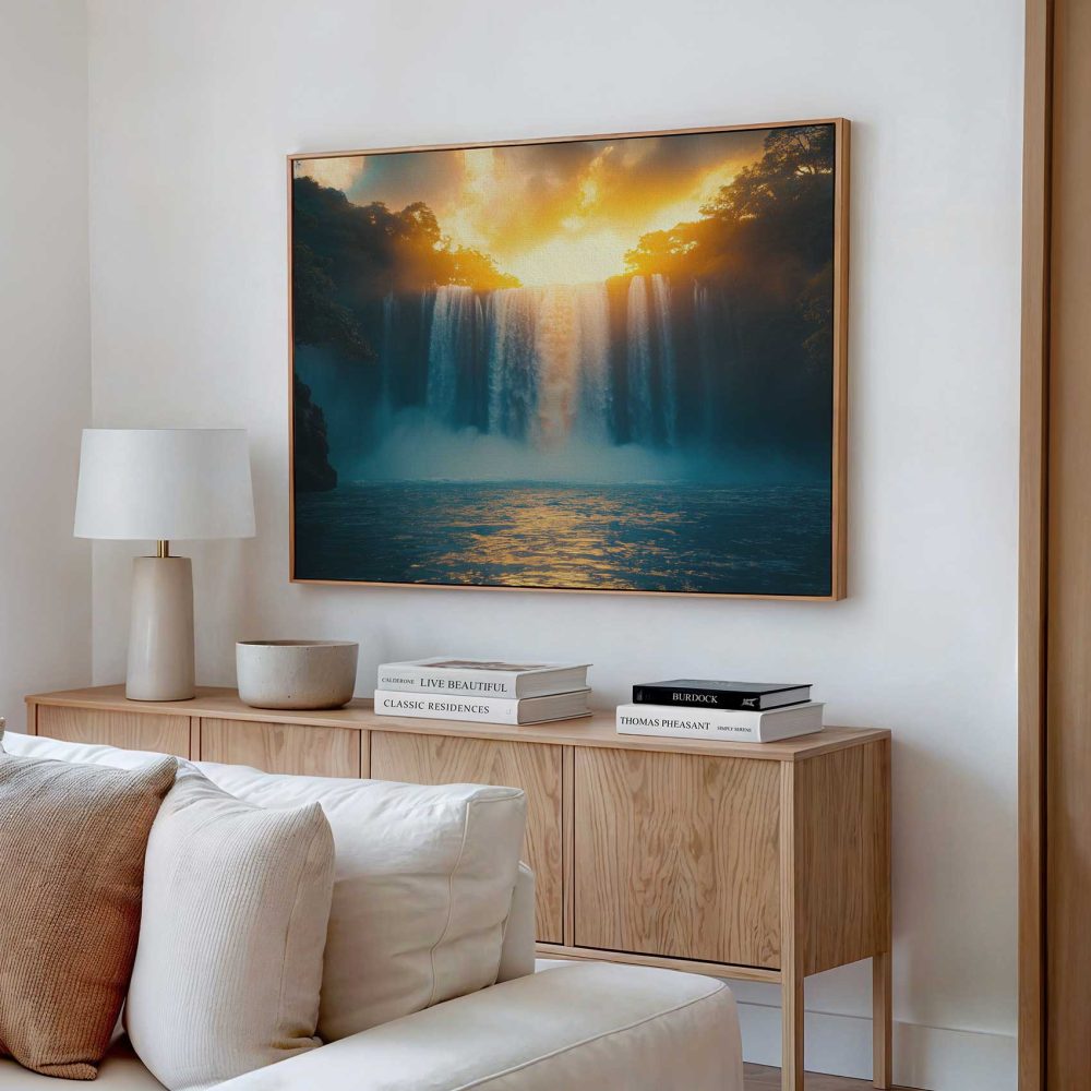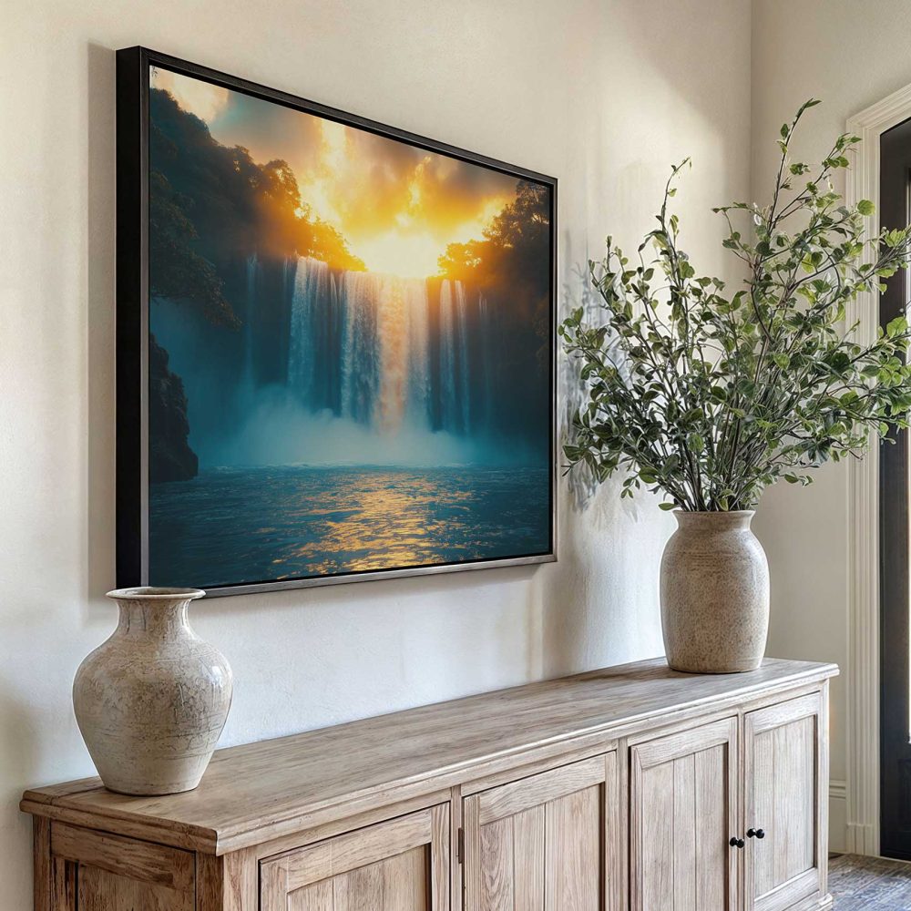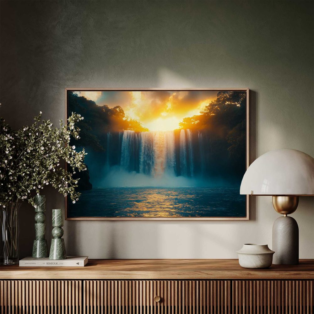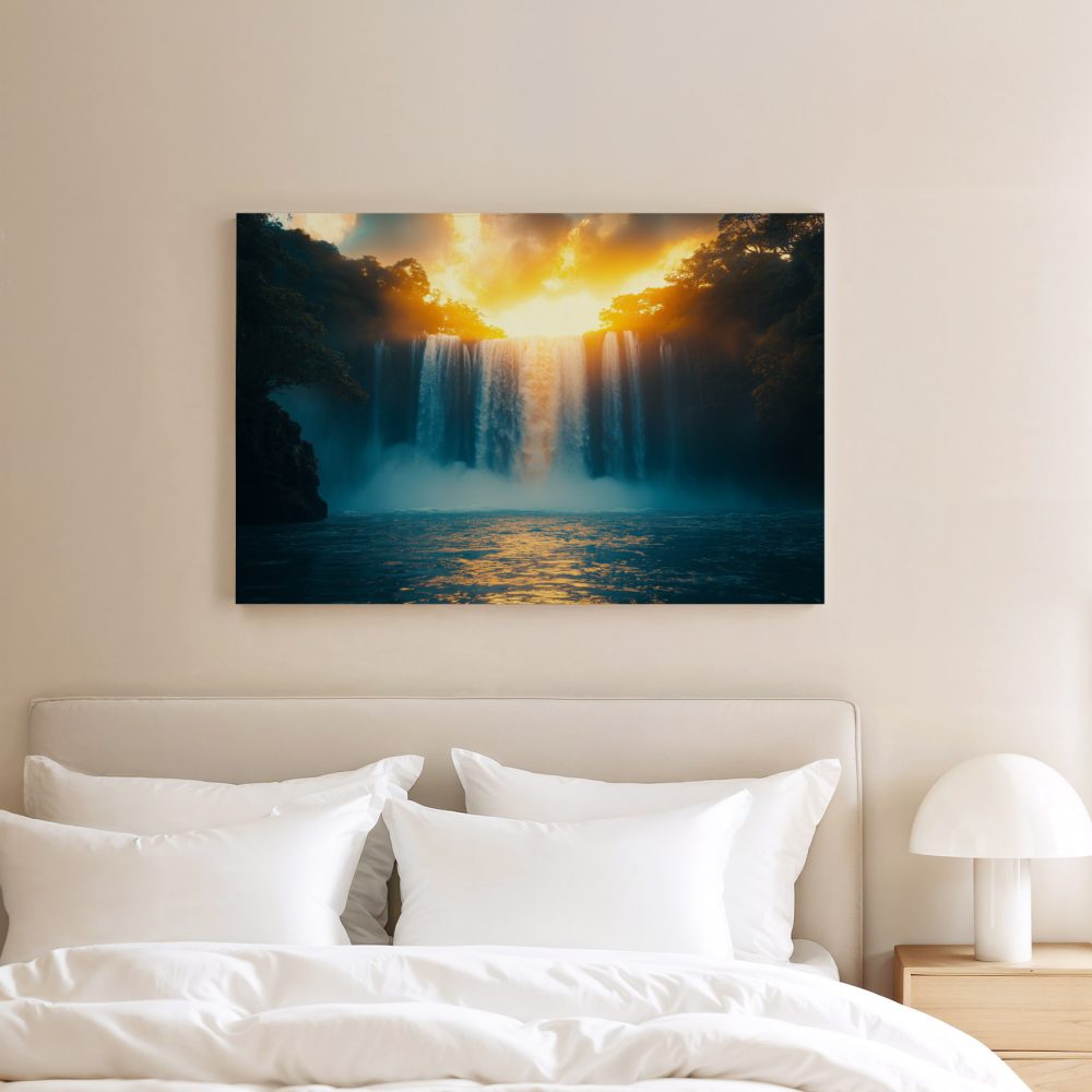 Terug naar collectie / Schilderijen / Bergen Schilderij / Machtige waterval in natuur