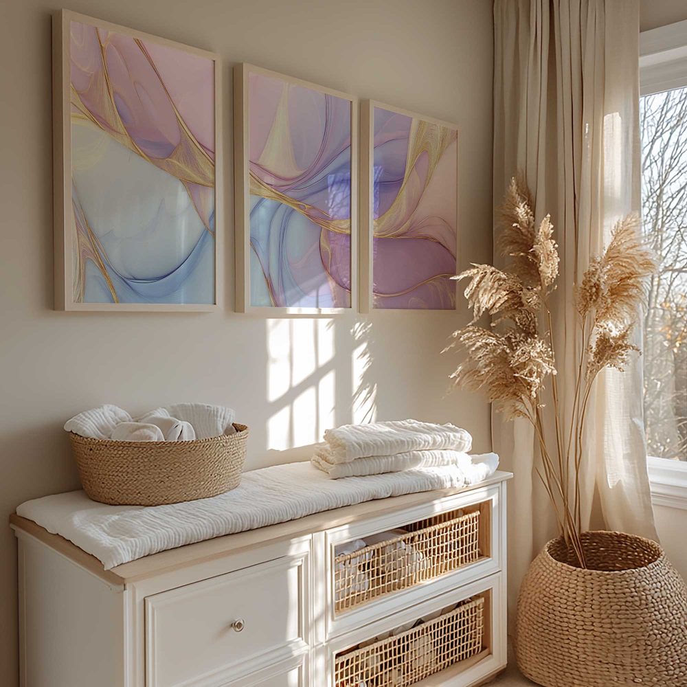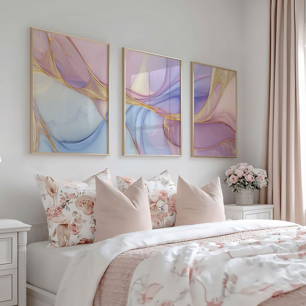 Magisch Abstract: Roze, Blauw & Goud Swirl Decor