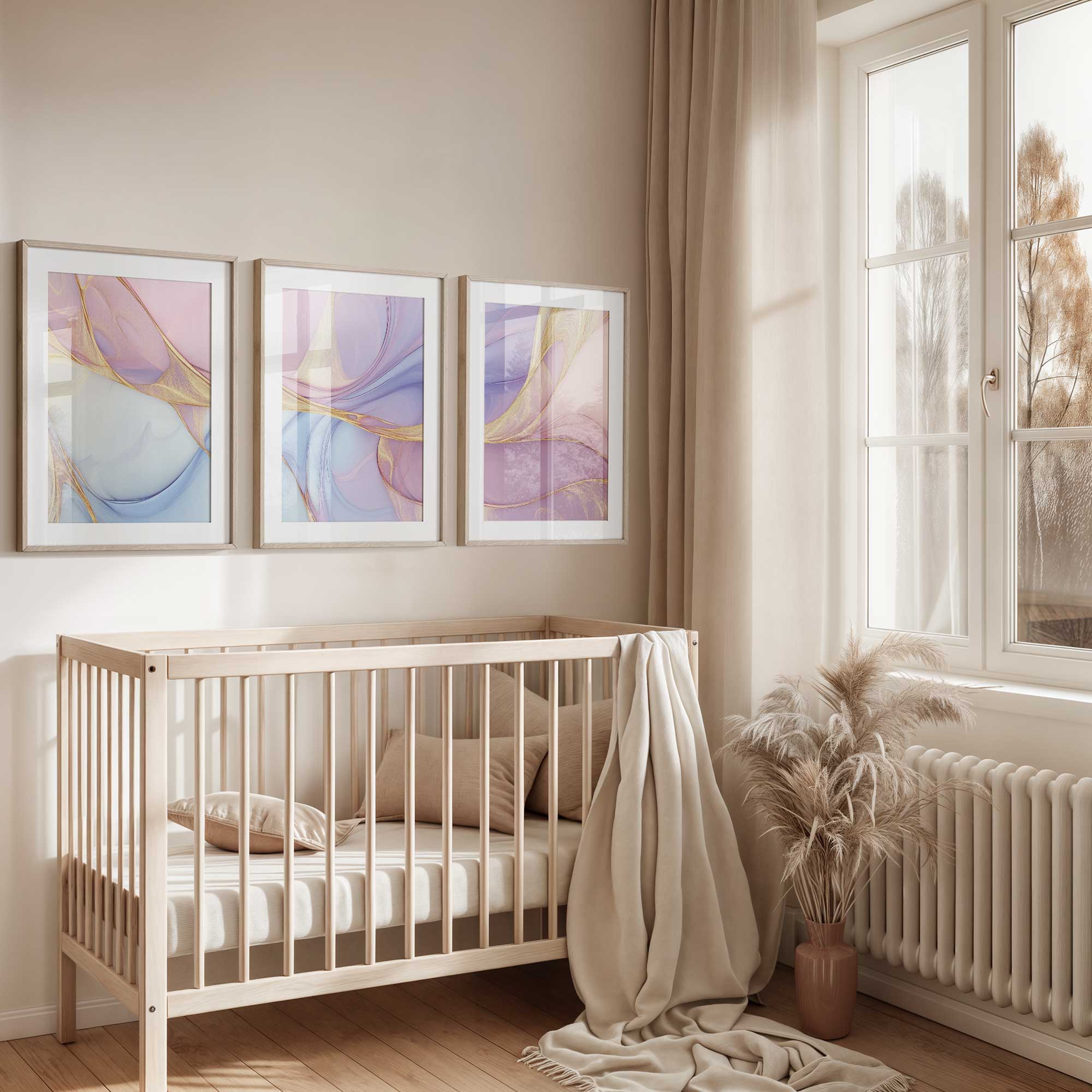 Terug naar collectie / Kinderkamer posters / Magisch Abstract: Roze, Blauw & Goud Swirl Decor