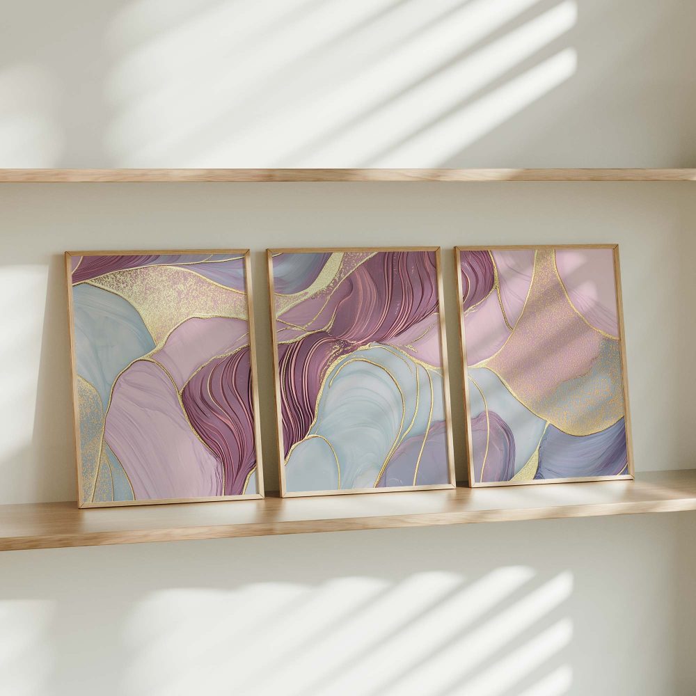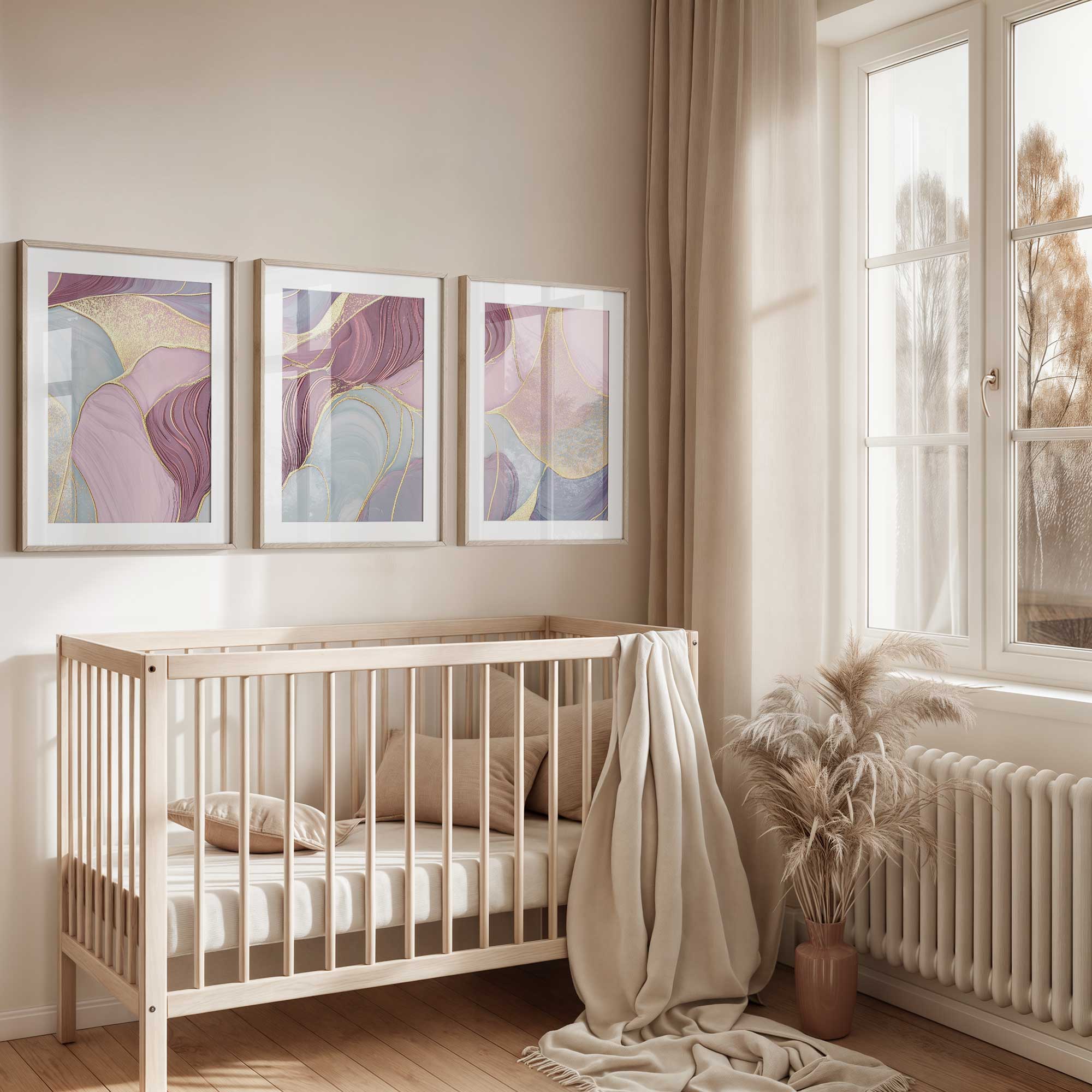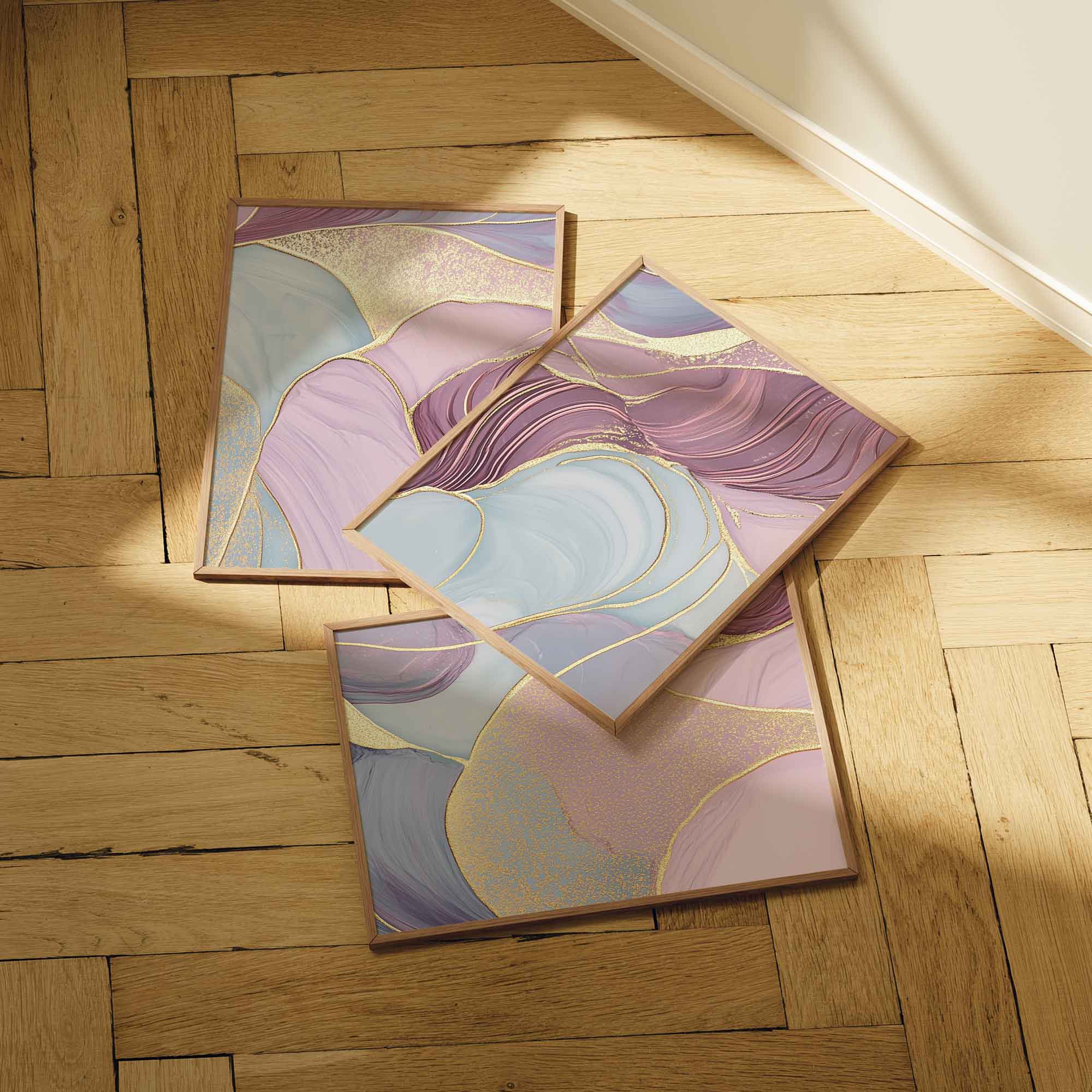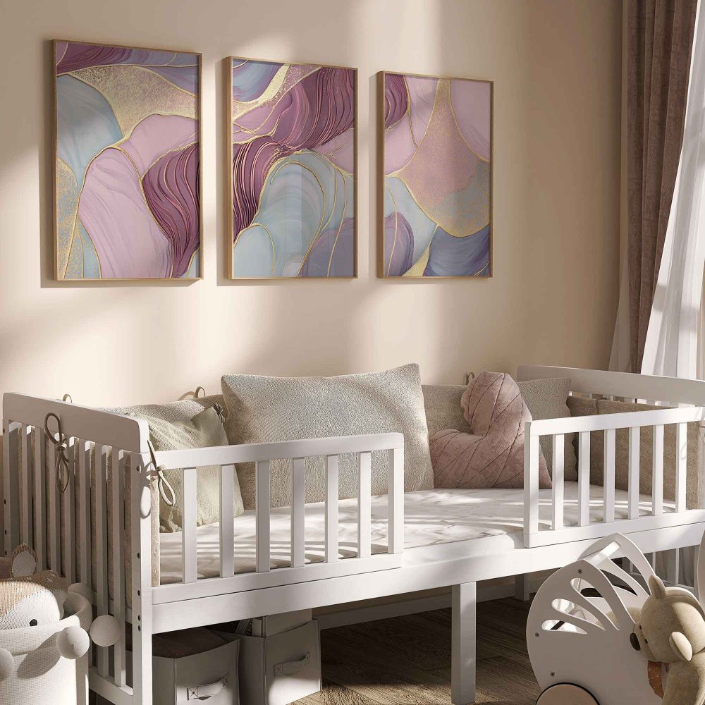 Terug naar collectie / Kinderkamer posters / Magisch Abstract: Roze, Blauw & Paars met Gouden Elegantie