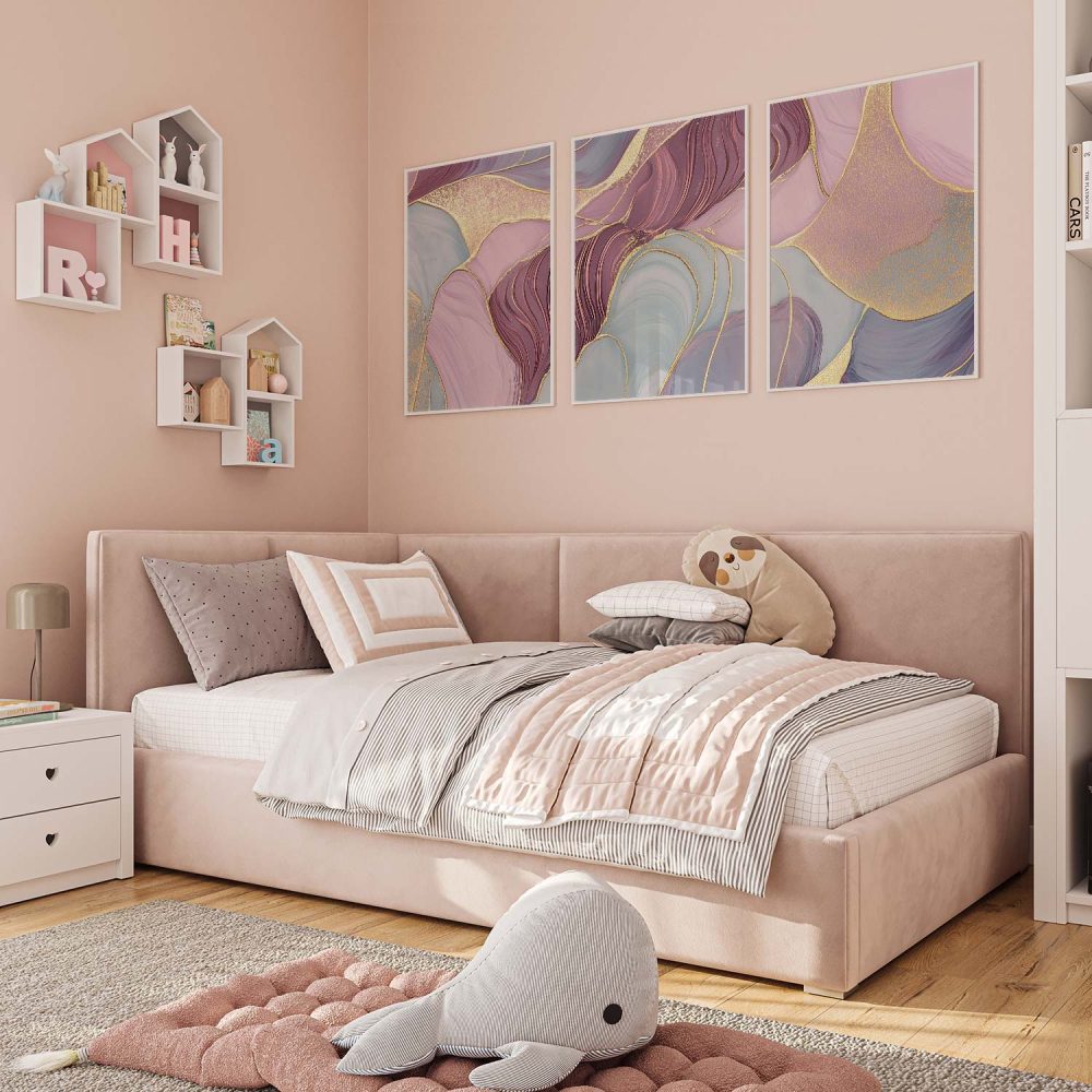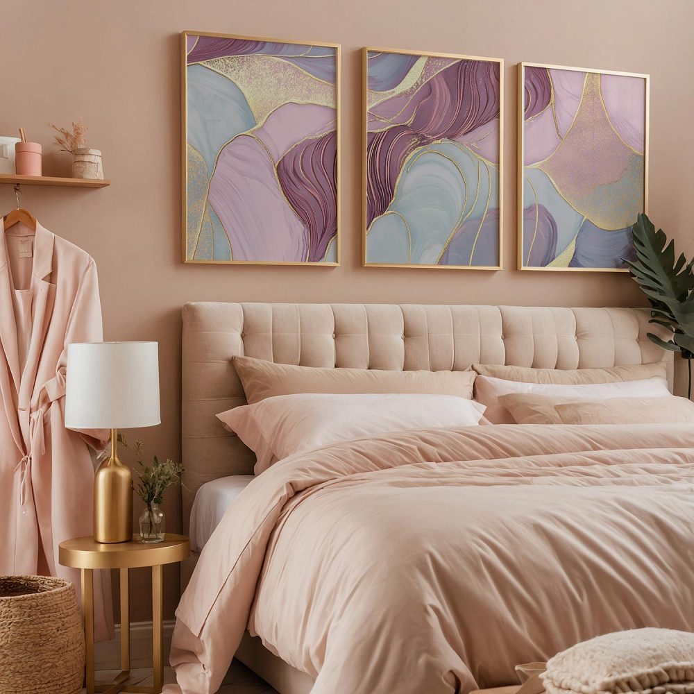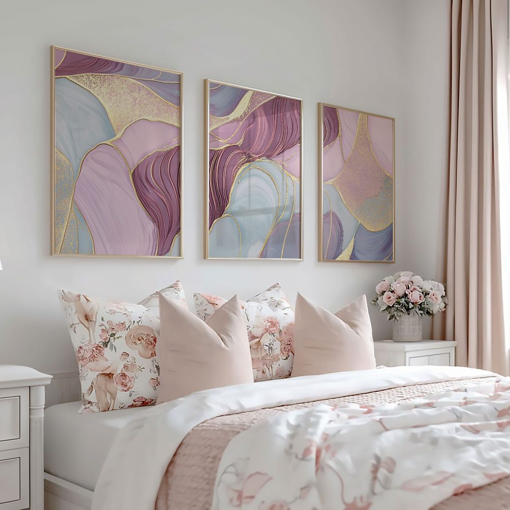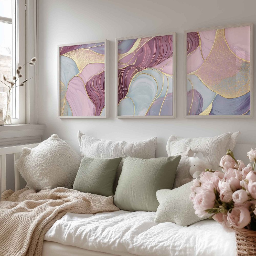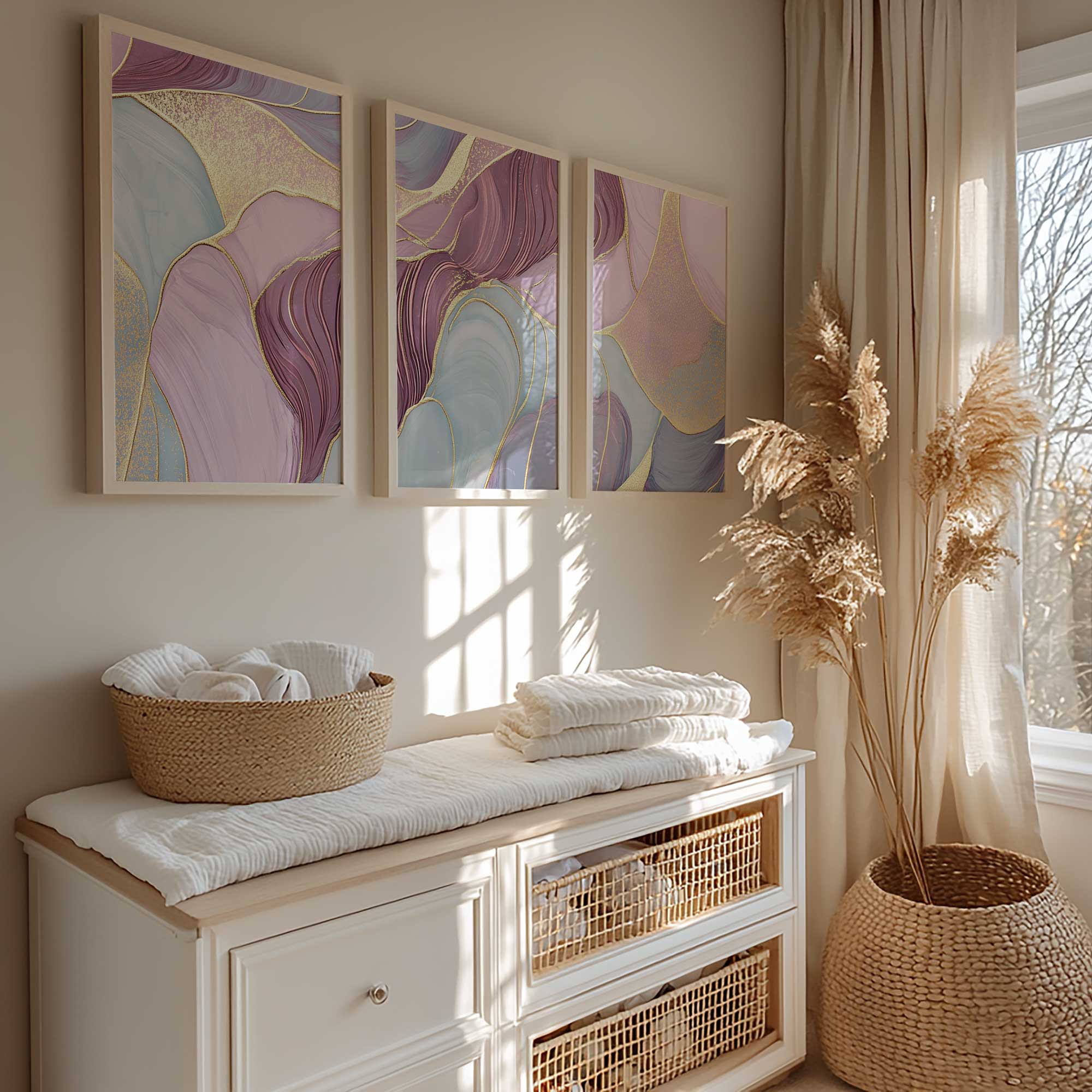 Terug naar collectie / Kinderkamer posters / Magisch Abstract: Roze, Blauw & Paars met Gouden Elegantie