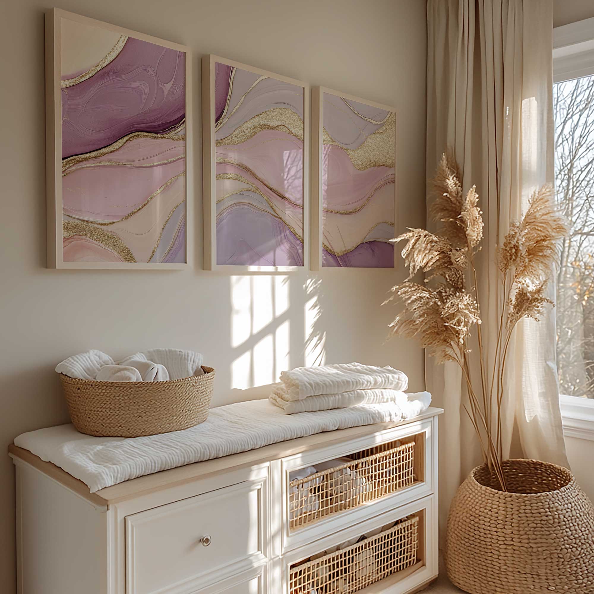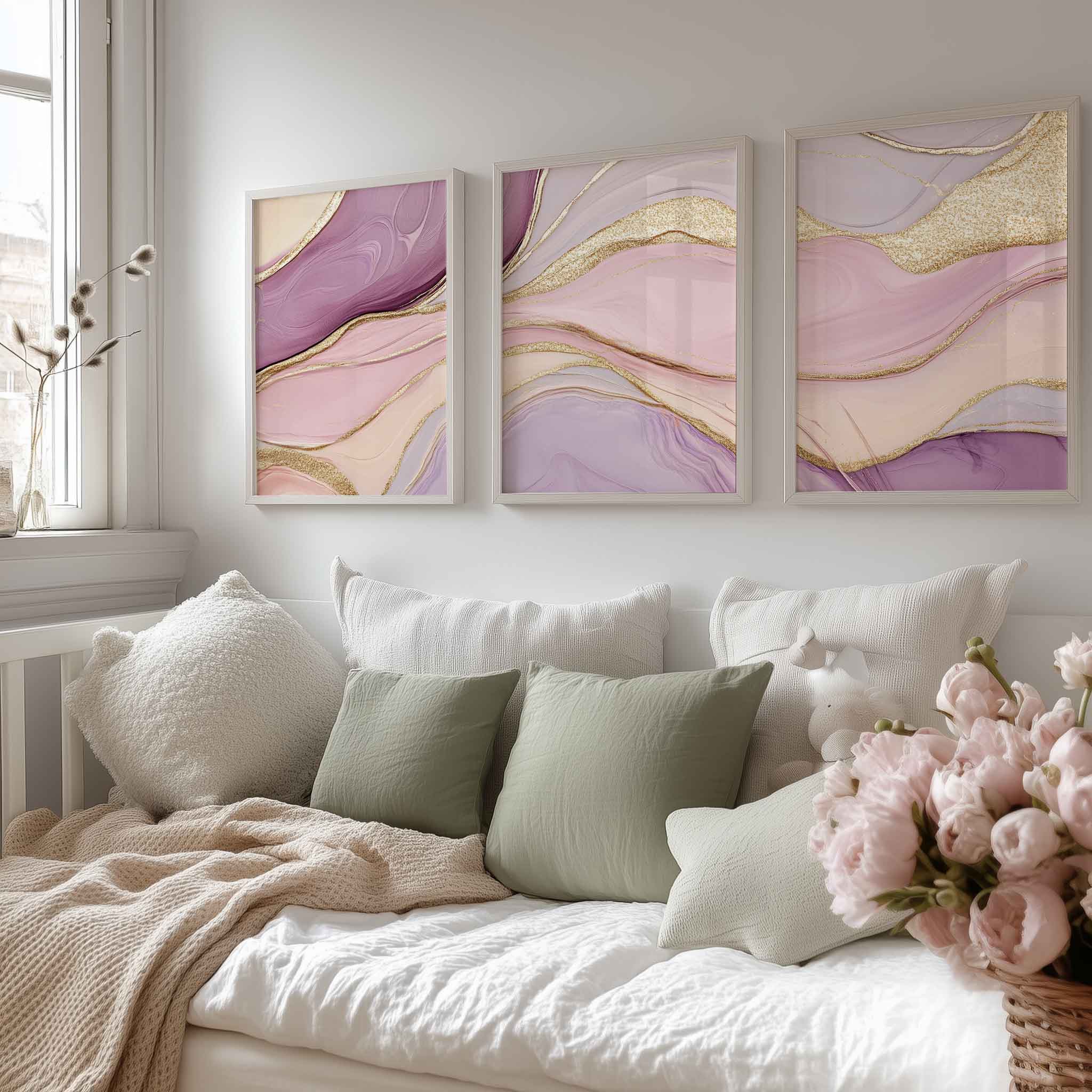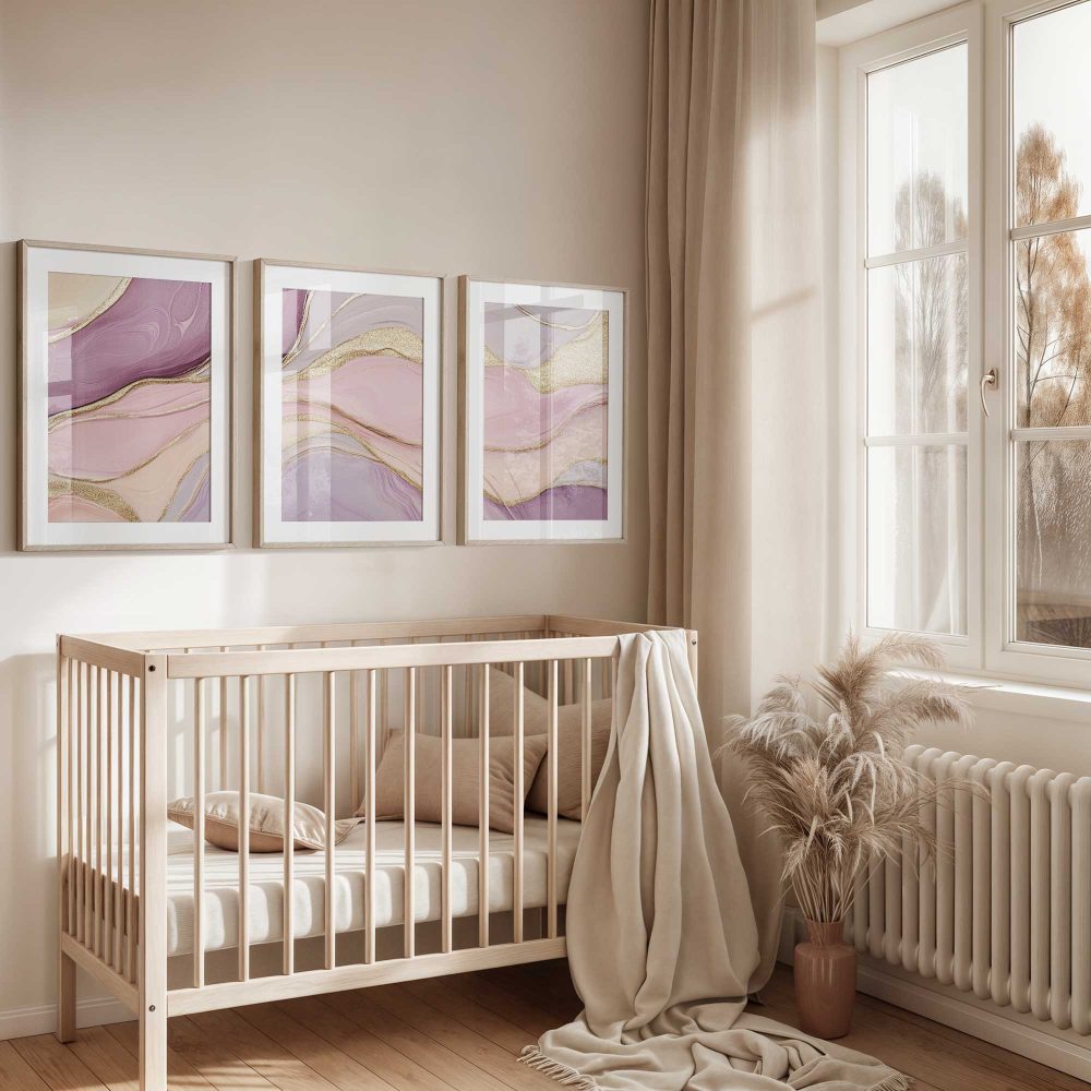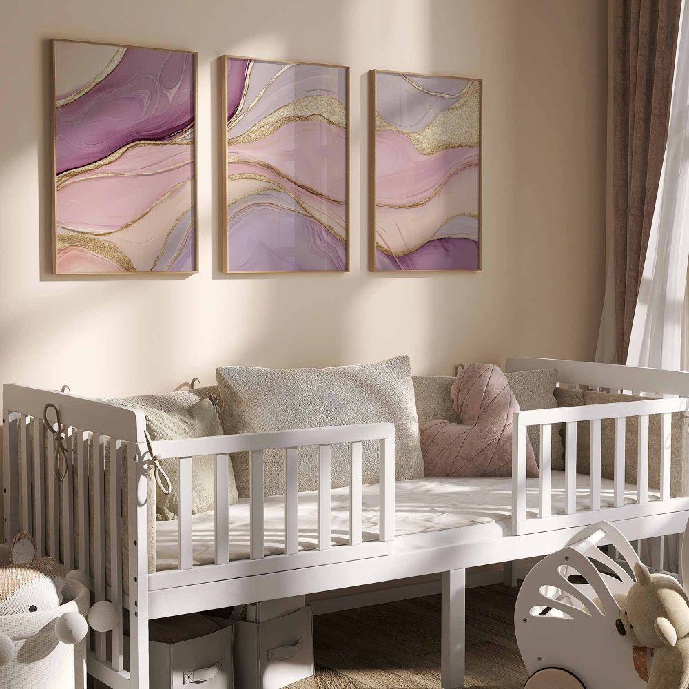 Terug naar collectie / Kinderkamer posters / Magisch Abstract: Roze, Paars en Gouden Swirls