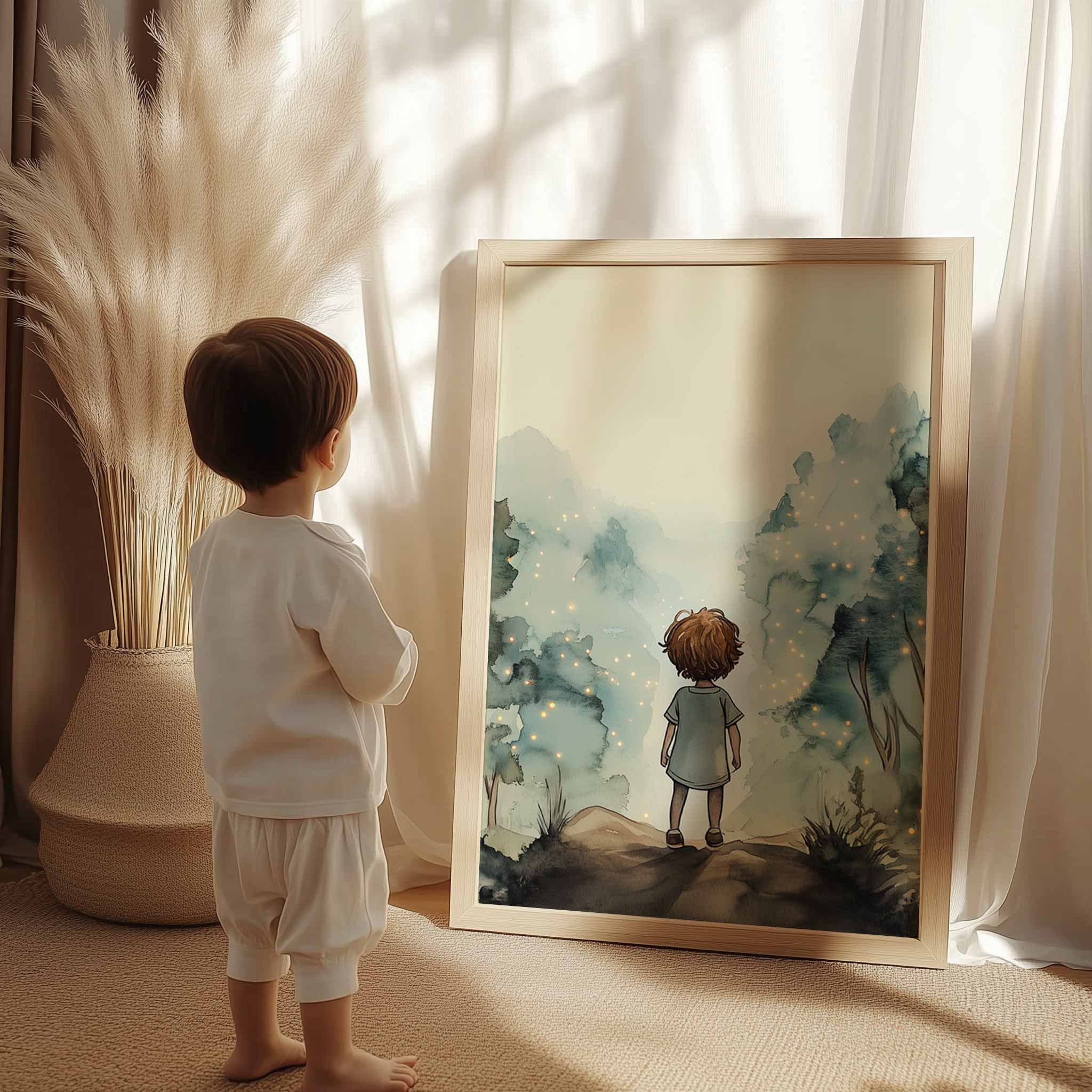 Terug naar collectie / Kinderkamer posters / Avontuurlijk posters / Magisch Bosavontuur: Gloeiende Lichtjes en Verwondering