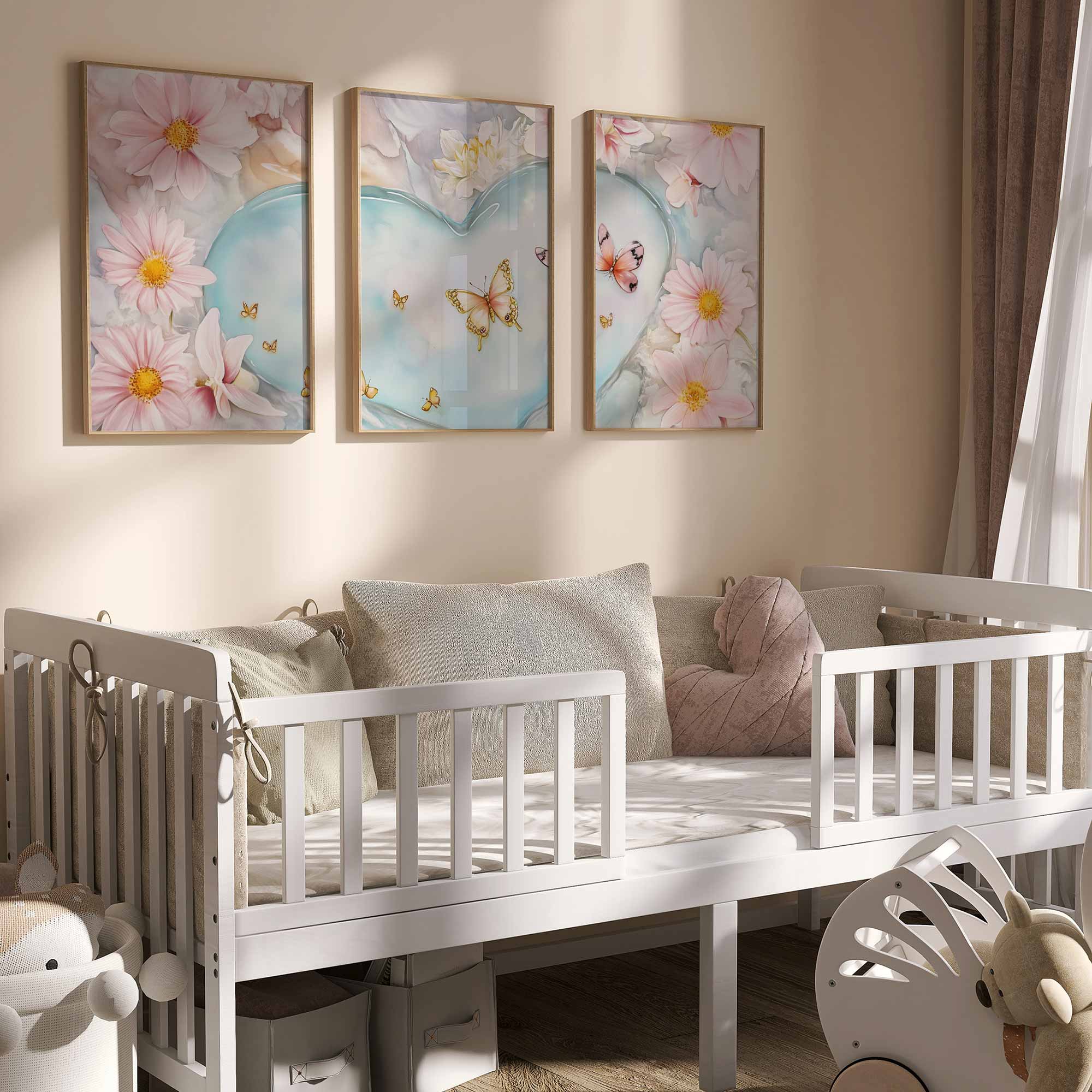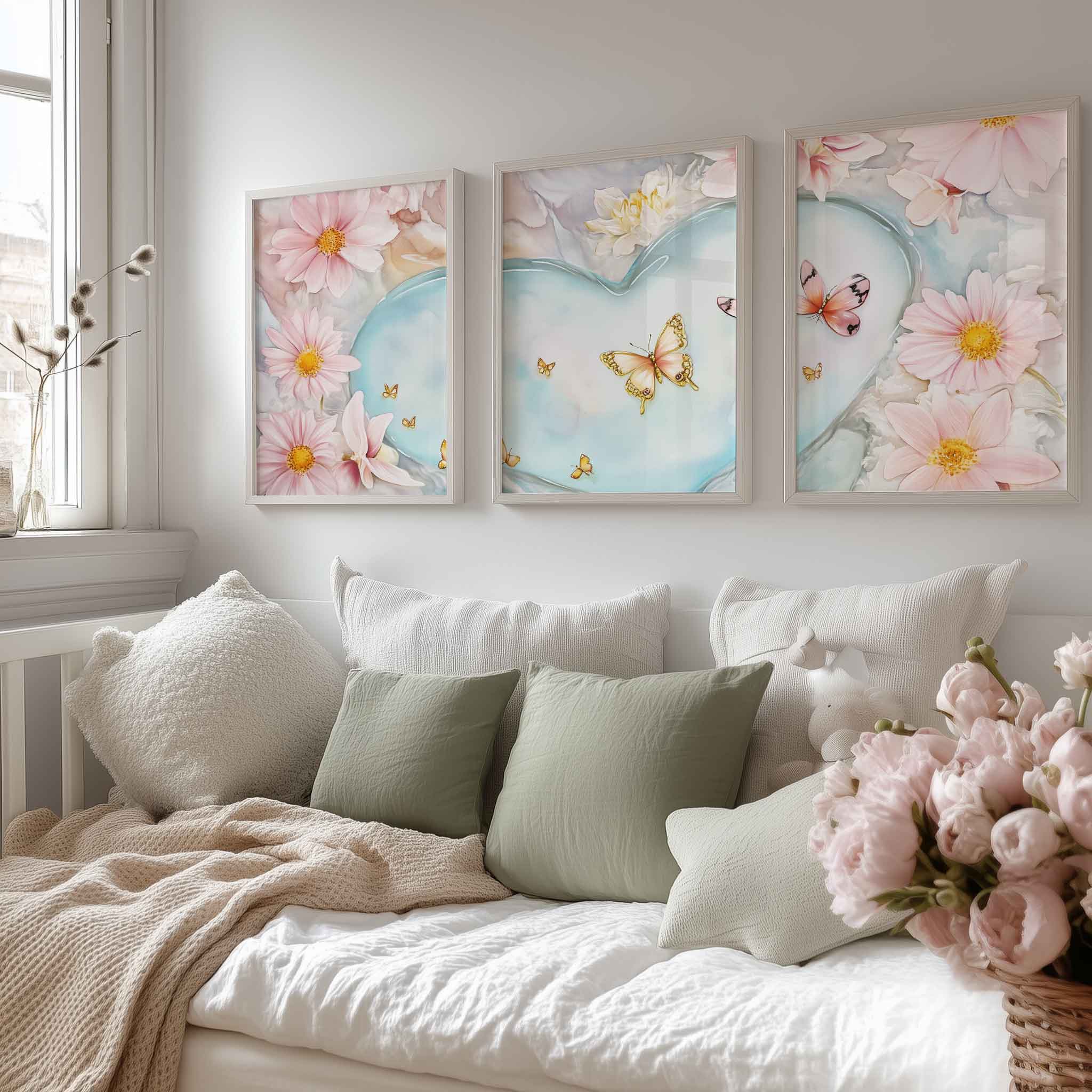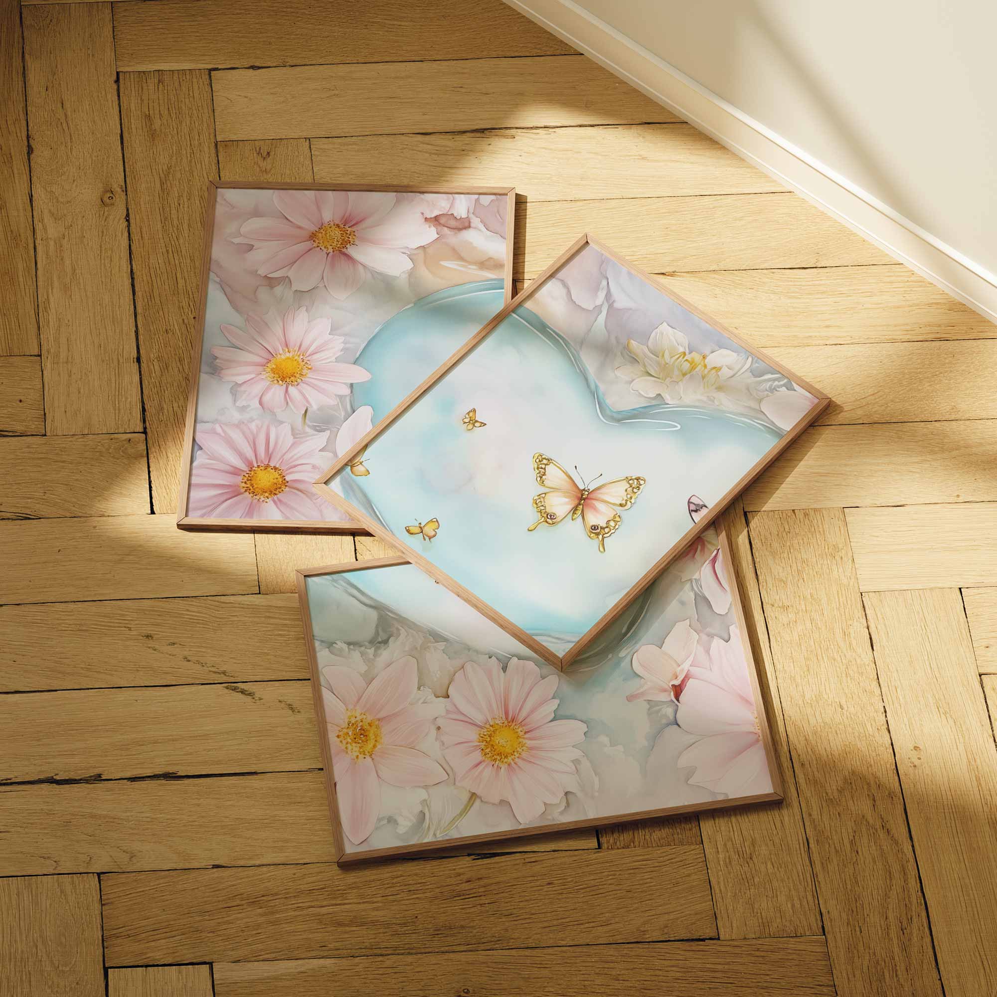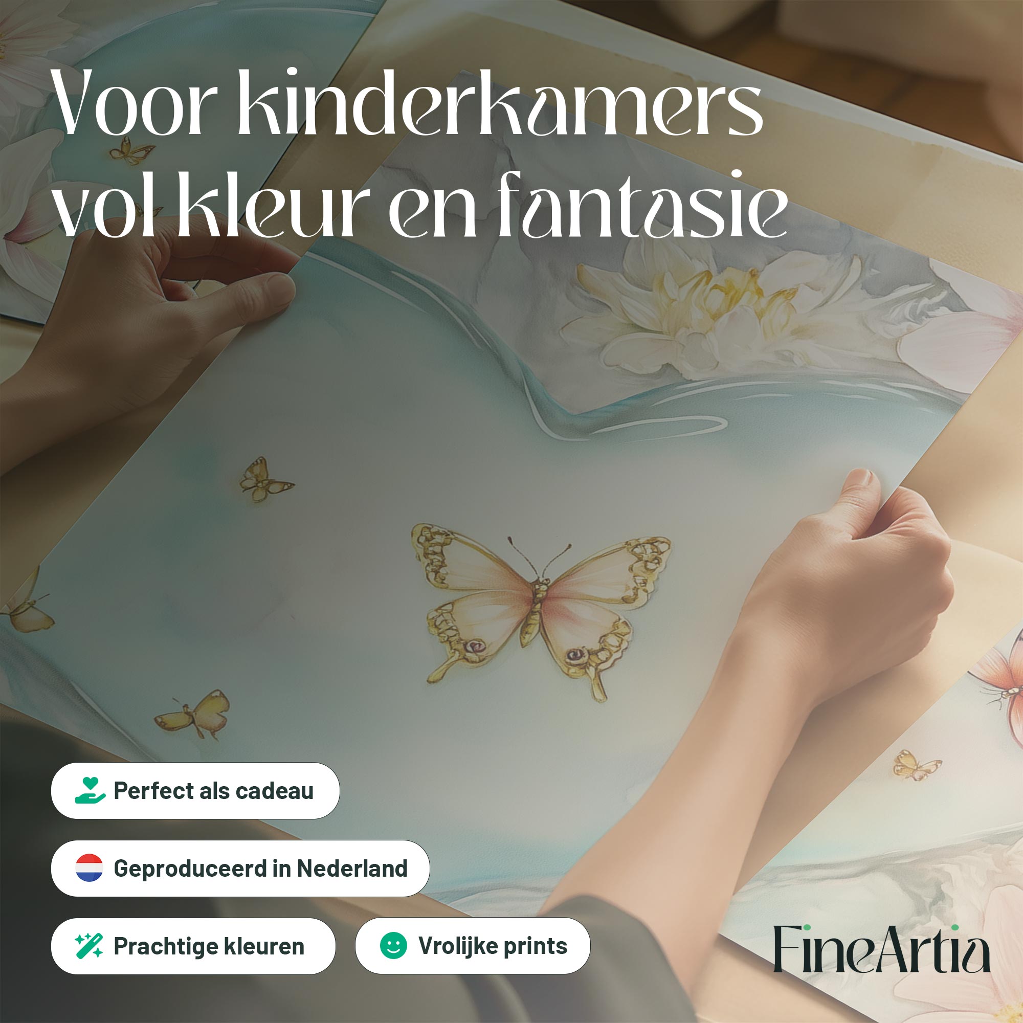 Terug naar collectie / Kinderkamer posters / Bloemen posters / Magisch Hartbad met Roze Bloemen en Vlinders