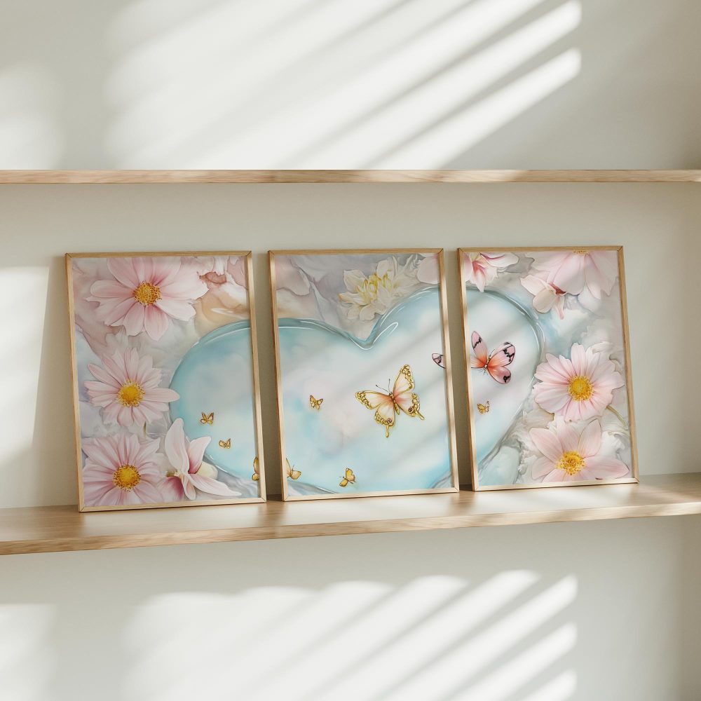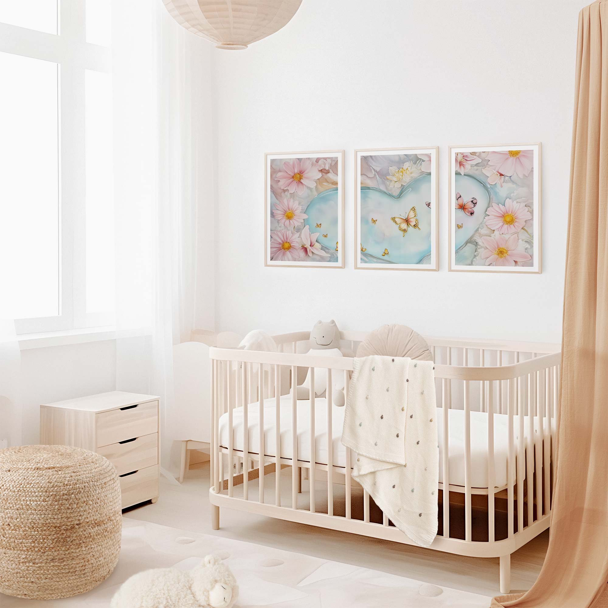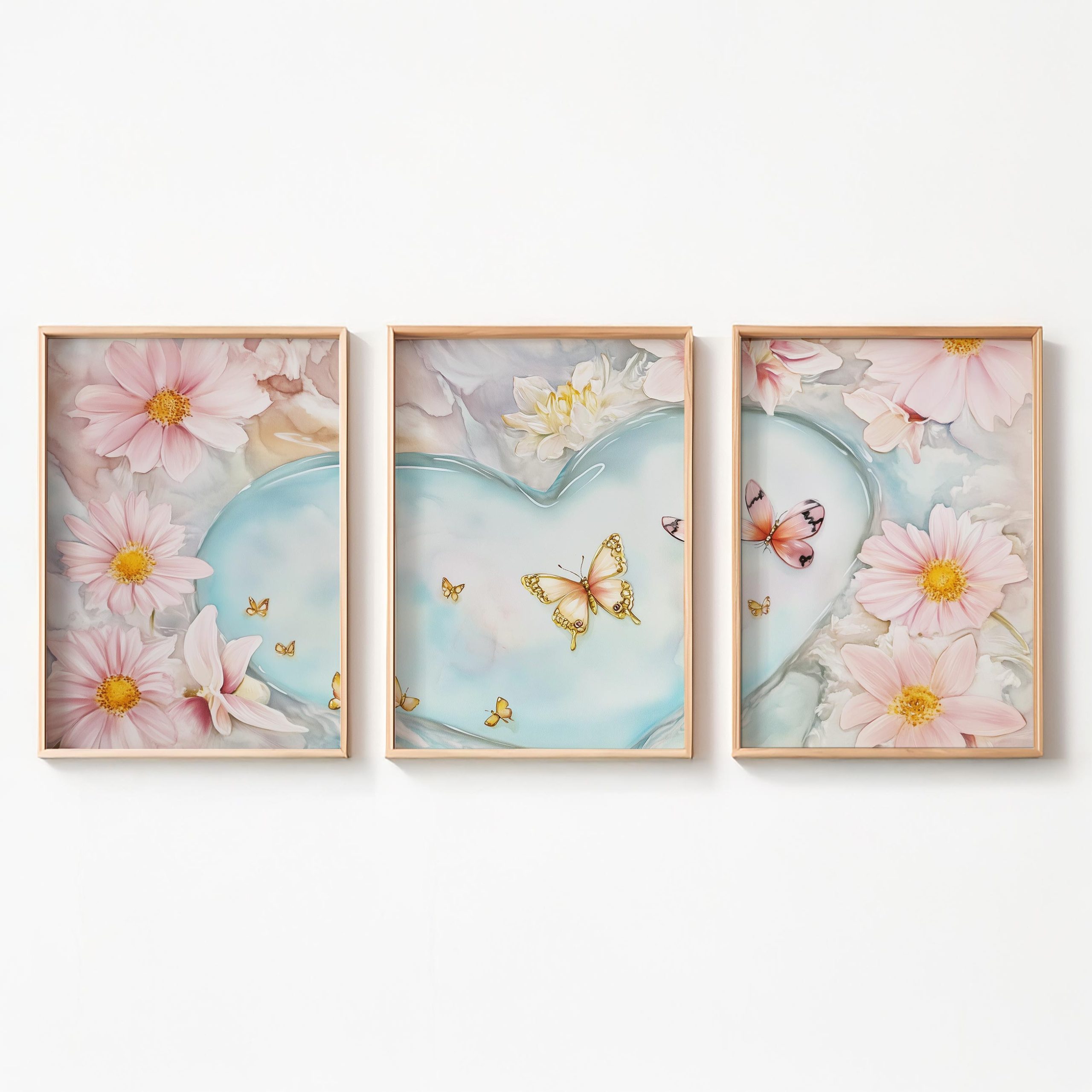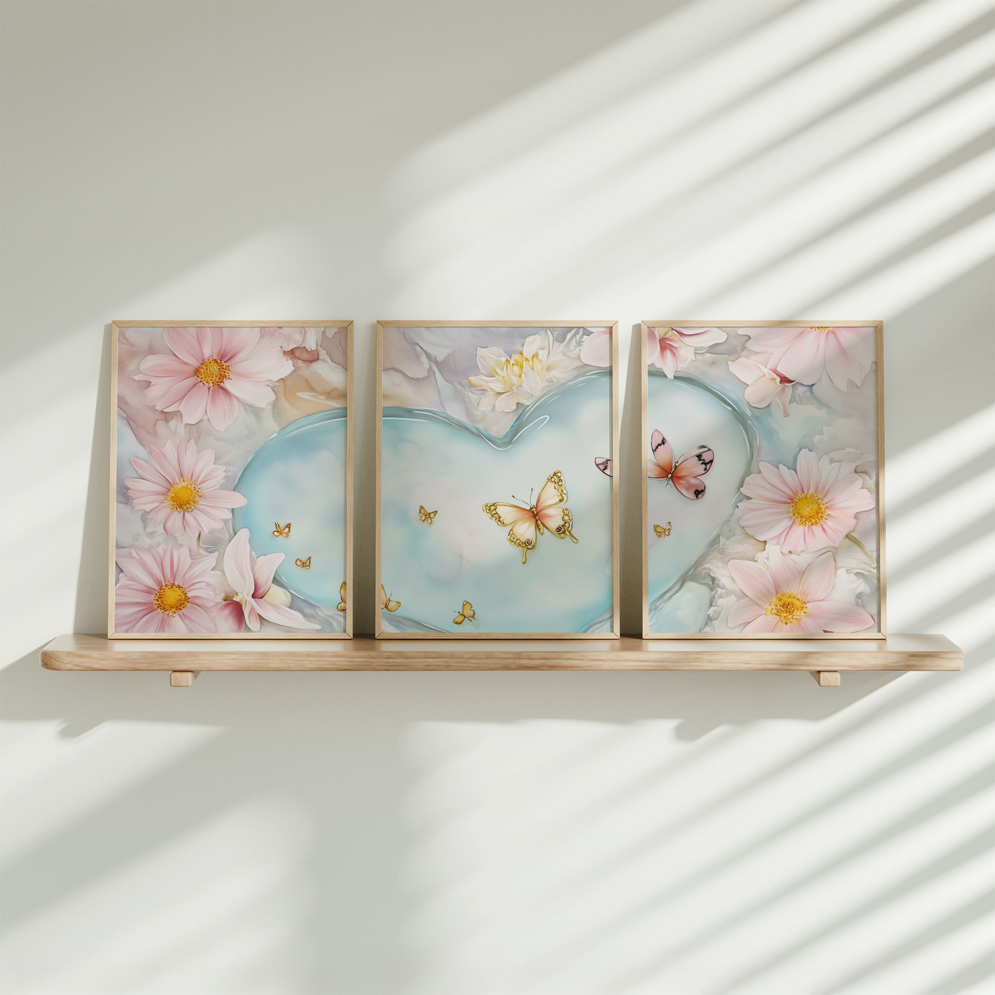 Terug naar collectie / Kinderkamer posters / Bloemen posters / Magisch Hartbad met Roze Bloemen en Vlinders