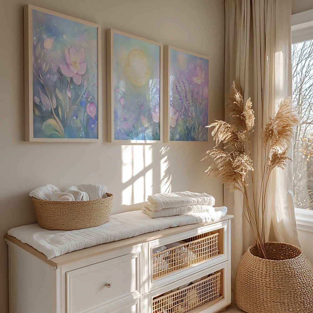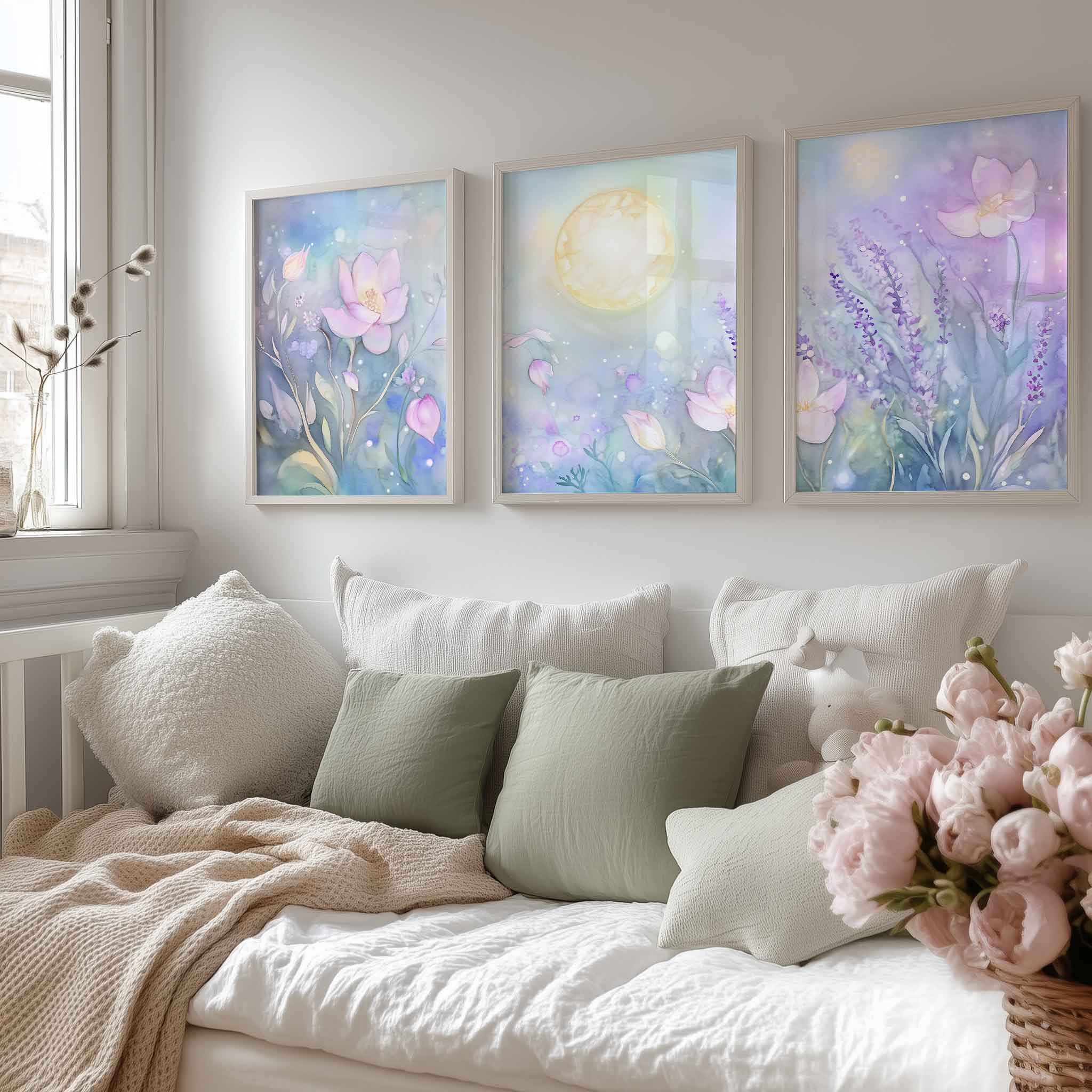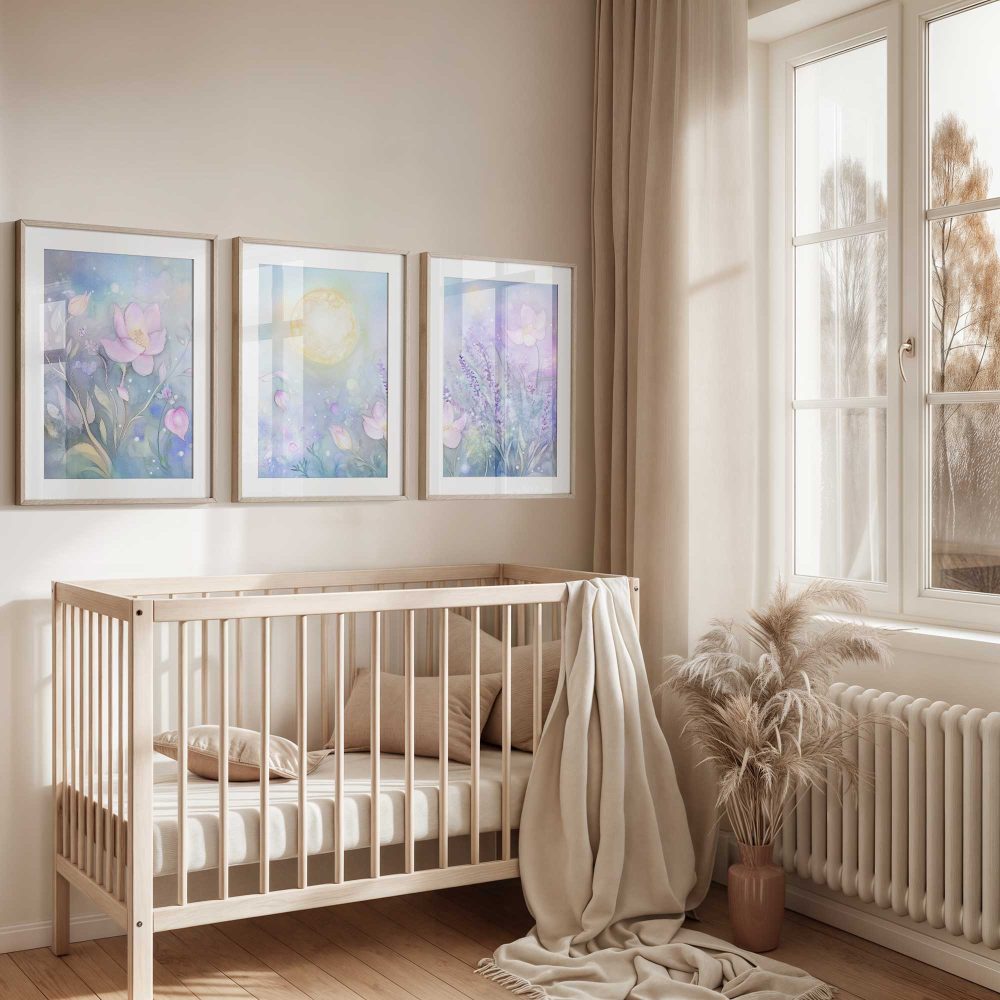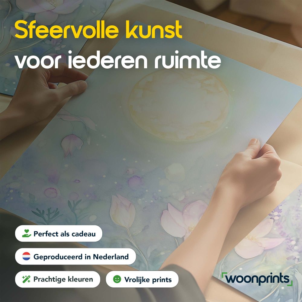 Terug naar collectie / Kinderkamer posters / Bloemen posters / Magisch Maanlicht in Dromerig Bloemenveld