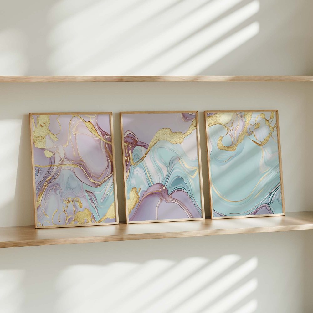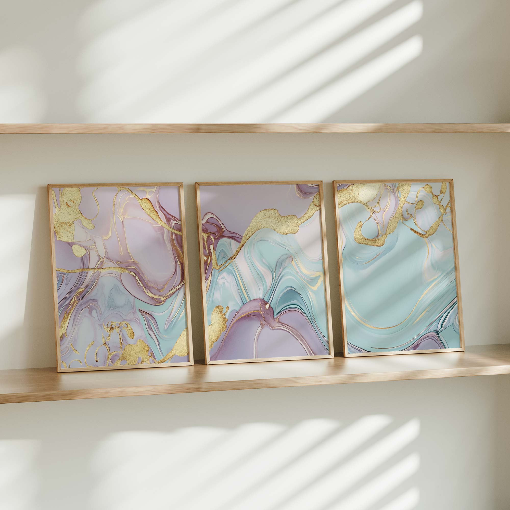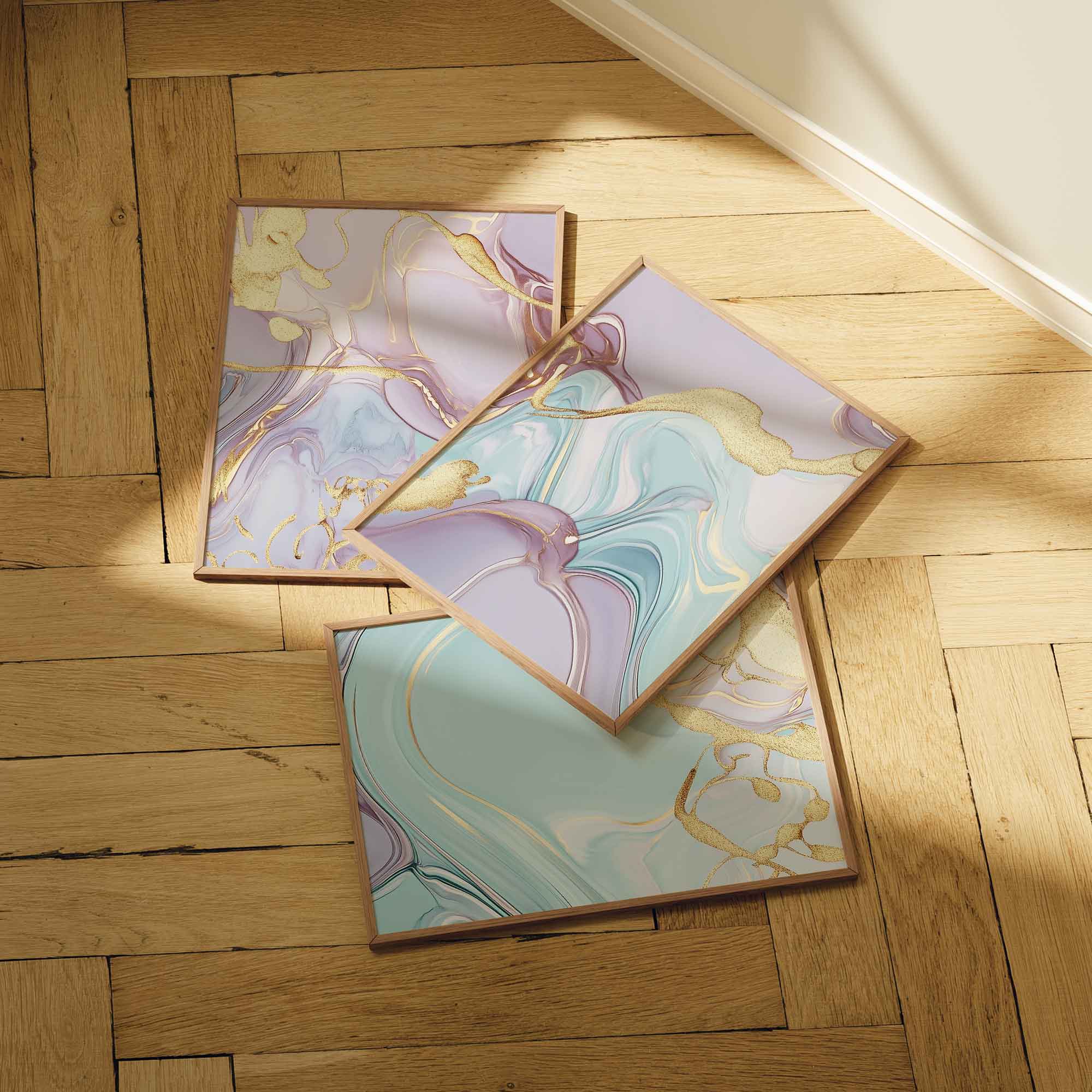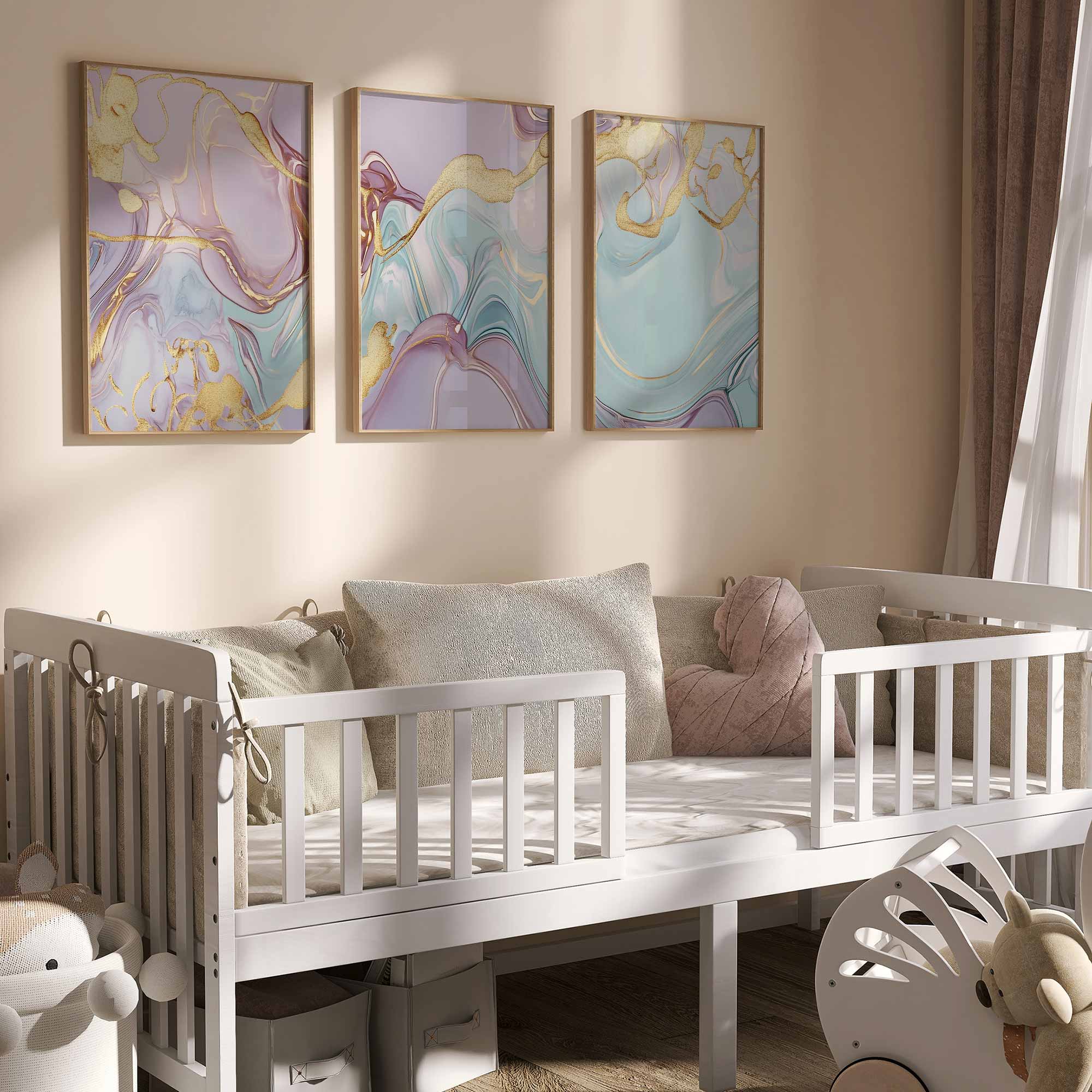 Terug naar collectie / Kinderkamer posters / Magisch Marmer: Paars-Blauwe Swirls met Gouden Accenten