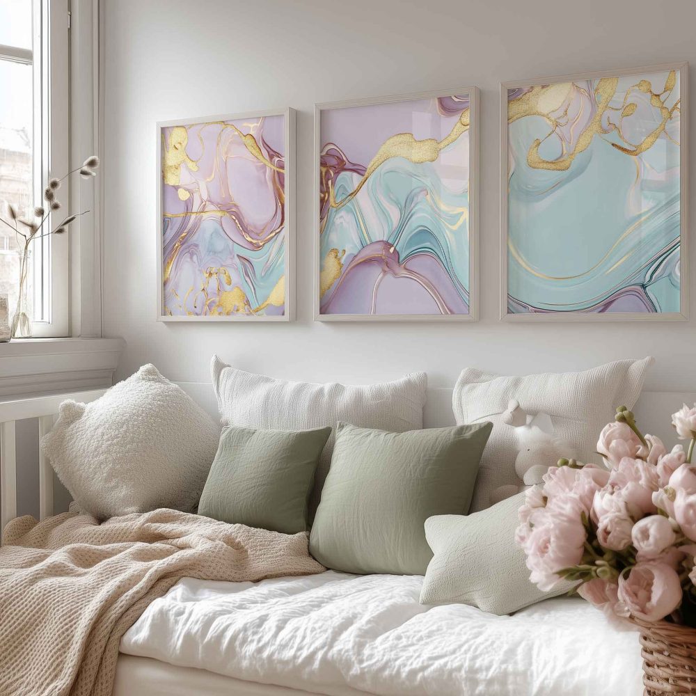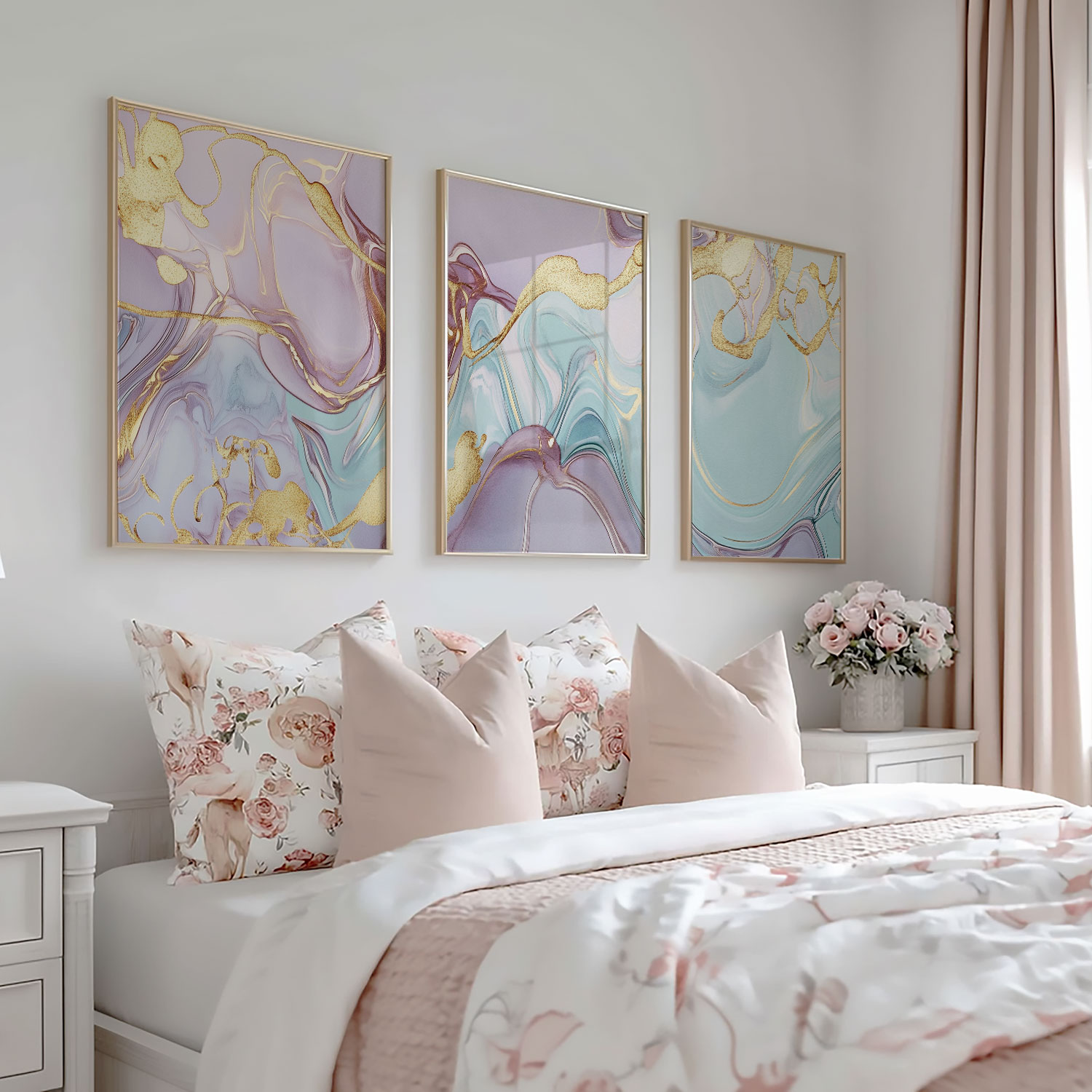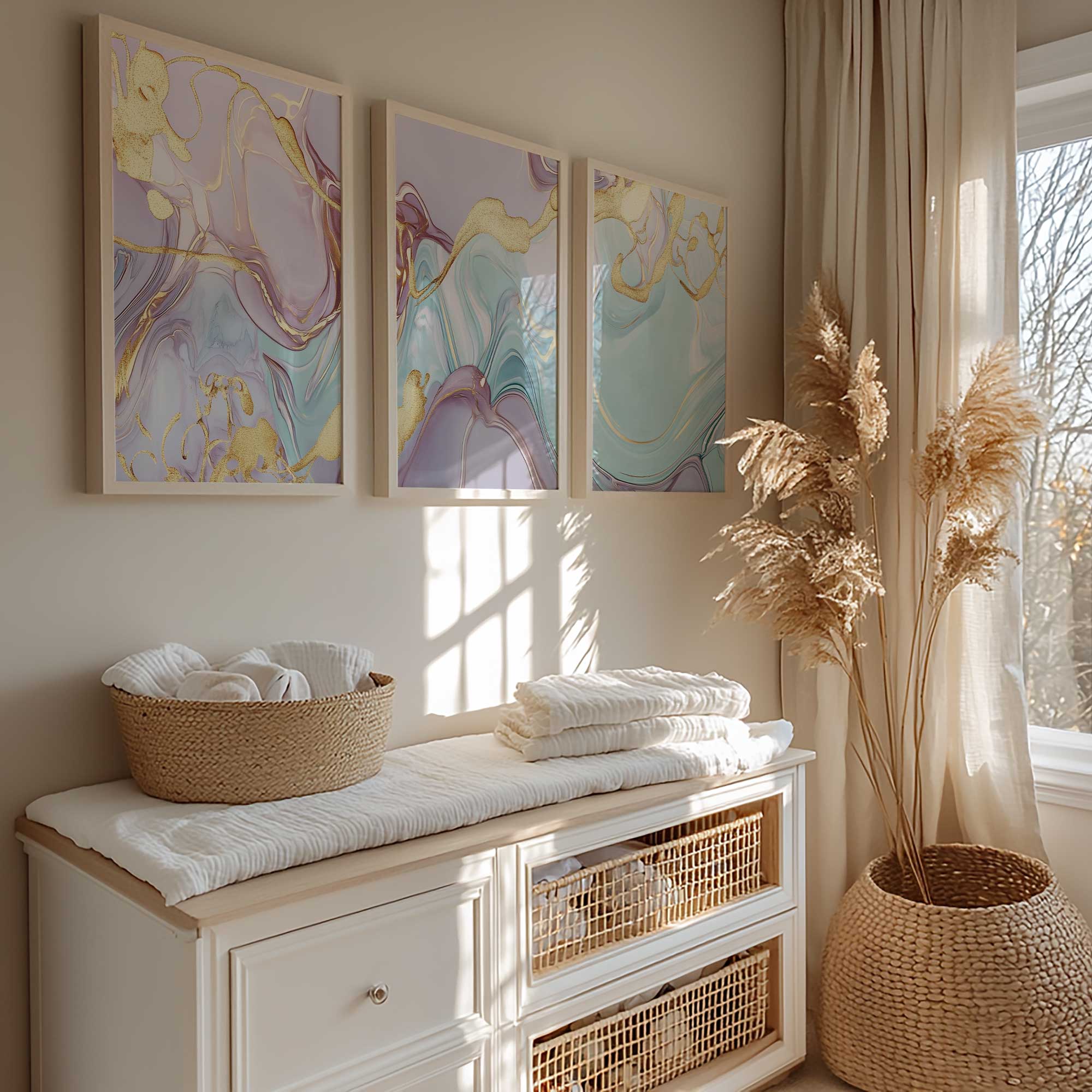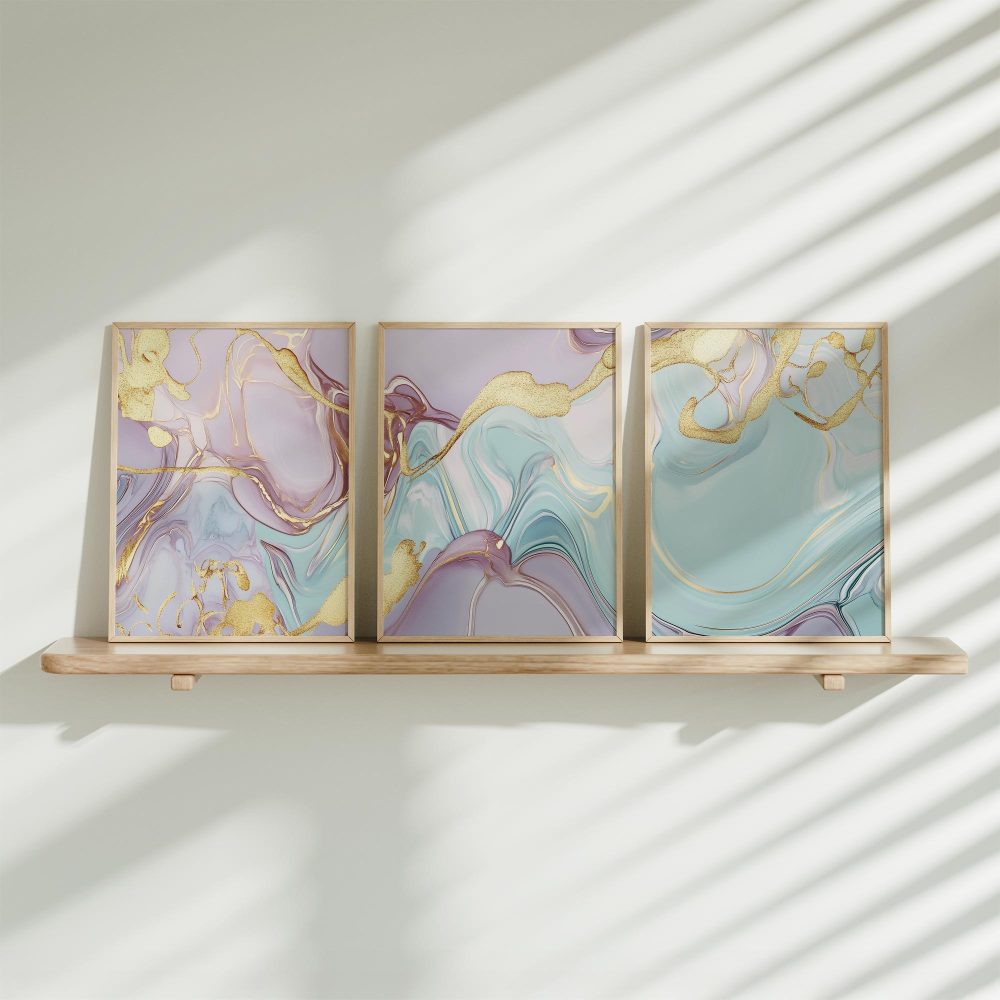 Terug naar collectie / Kinderkamer posters / Magisch Marmer: Paars-Blauwe Swirls met Gouden Accenten