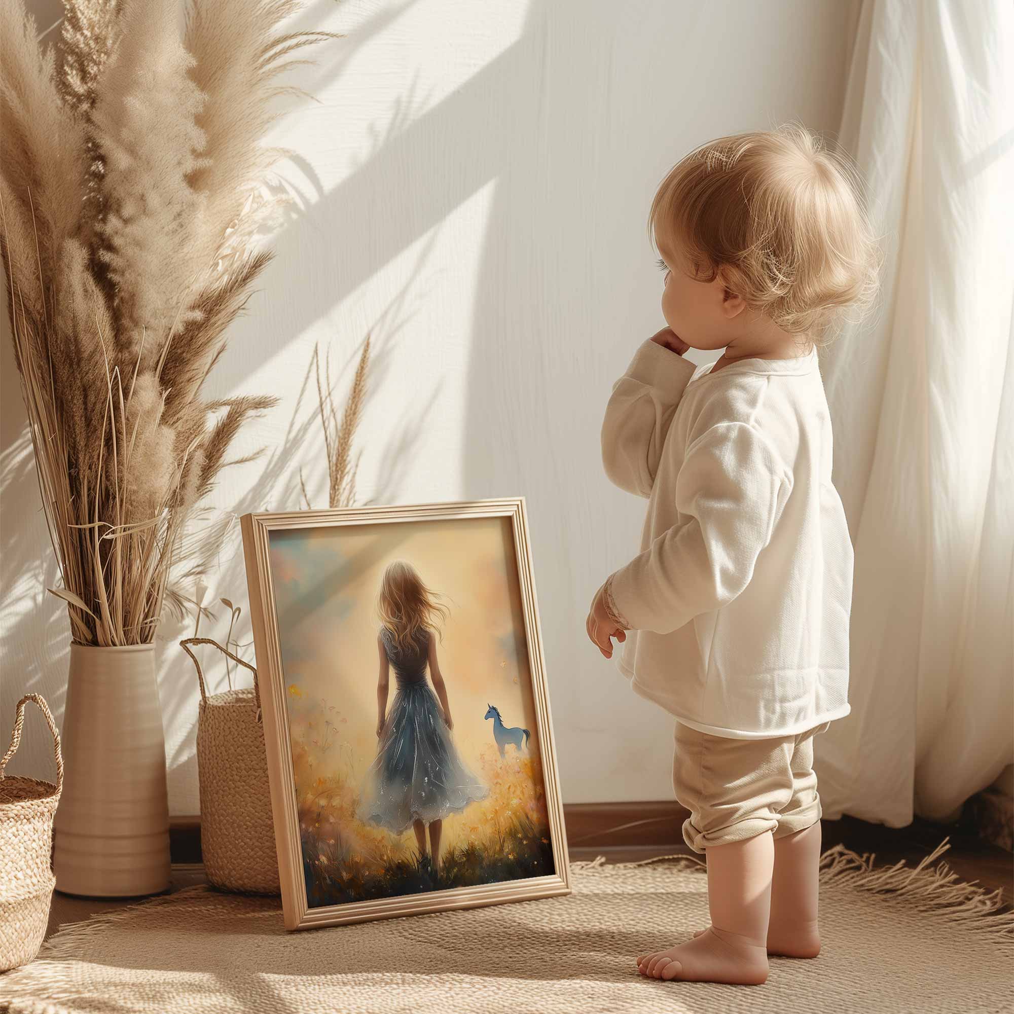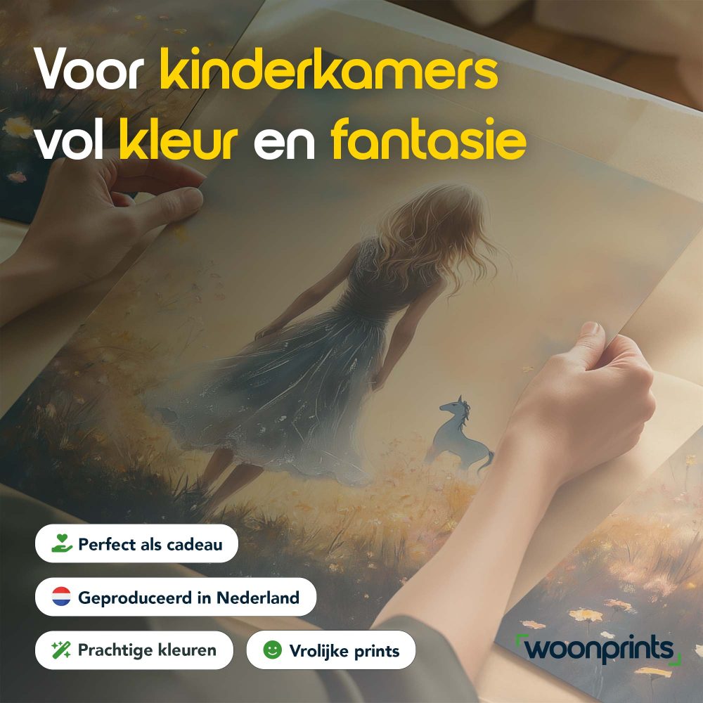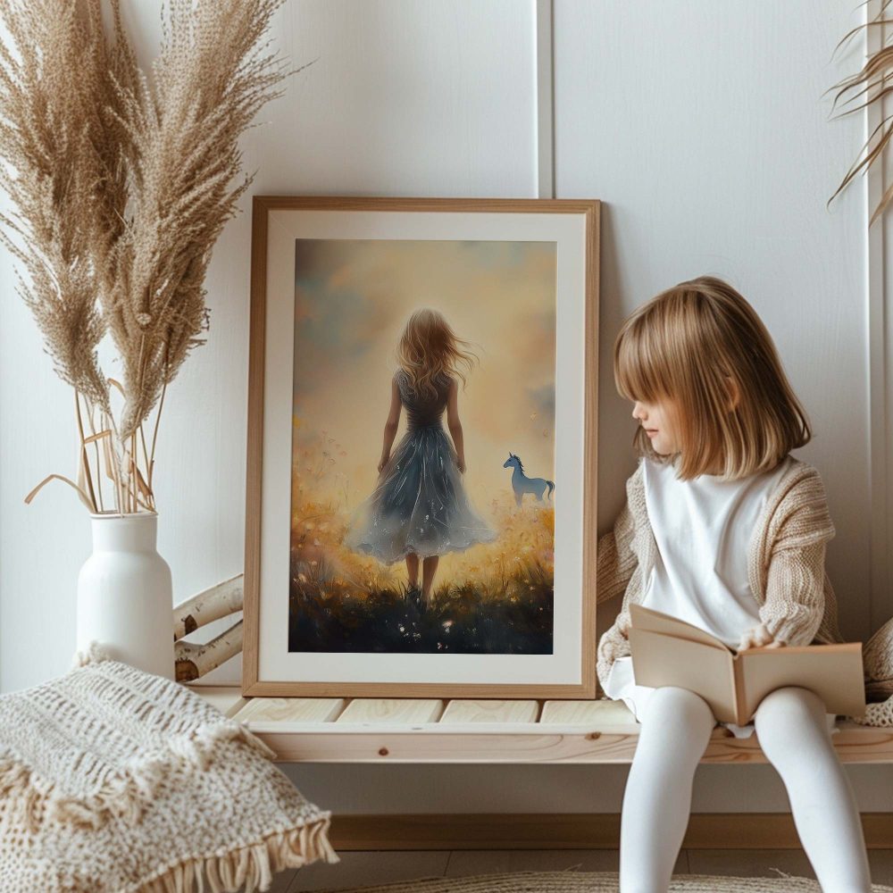 Terug naar collectie / Uncategorized / Magisch Meisje en Eenhoorn in Dromerig Bloemenveld