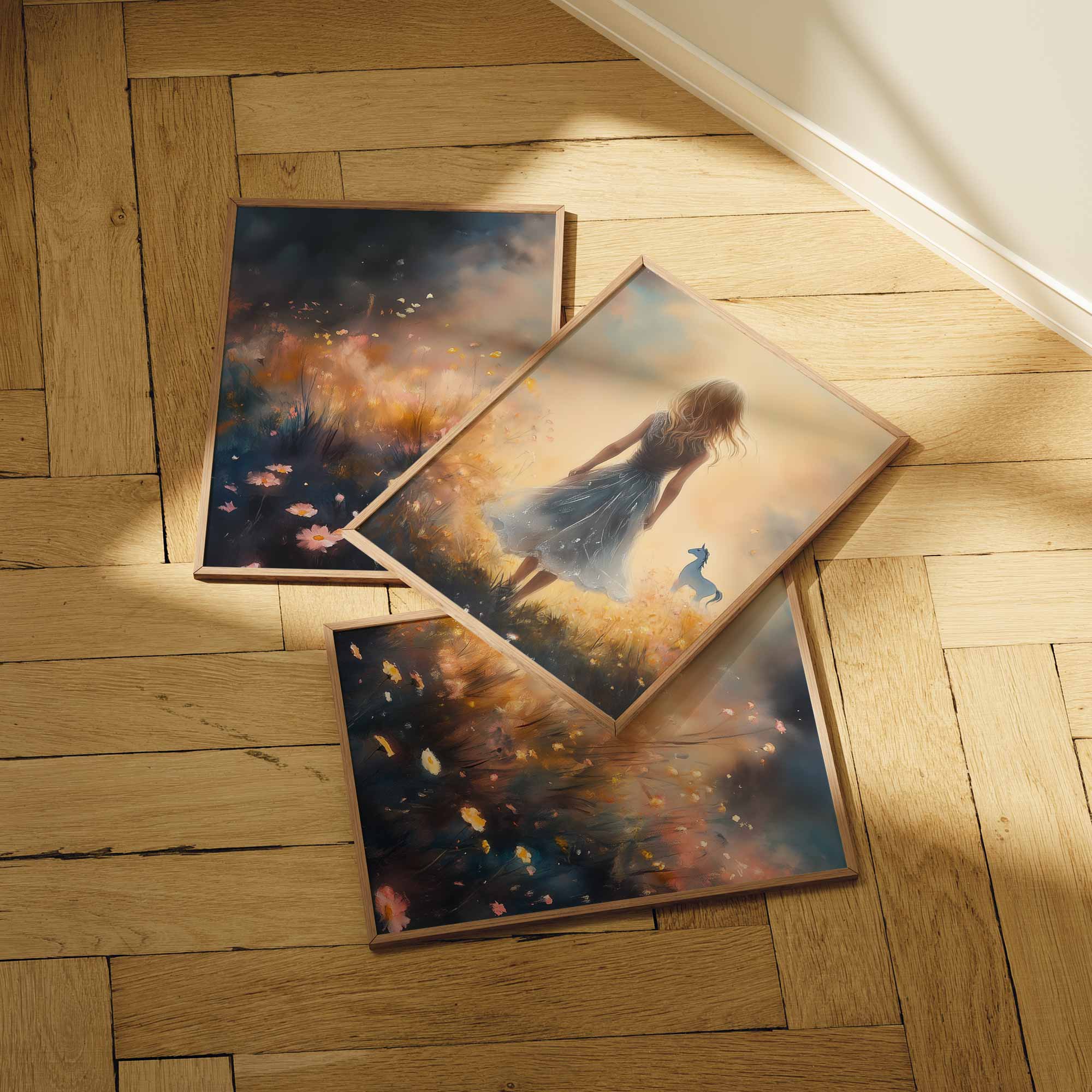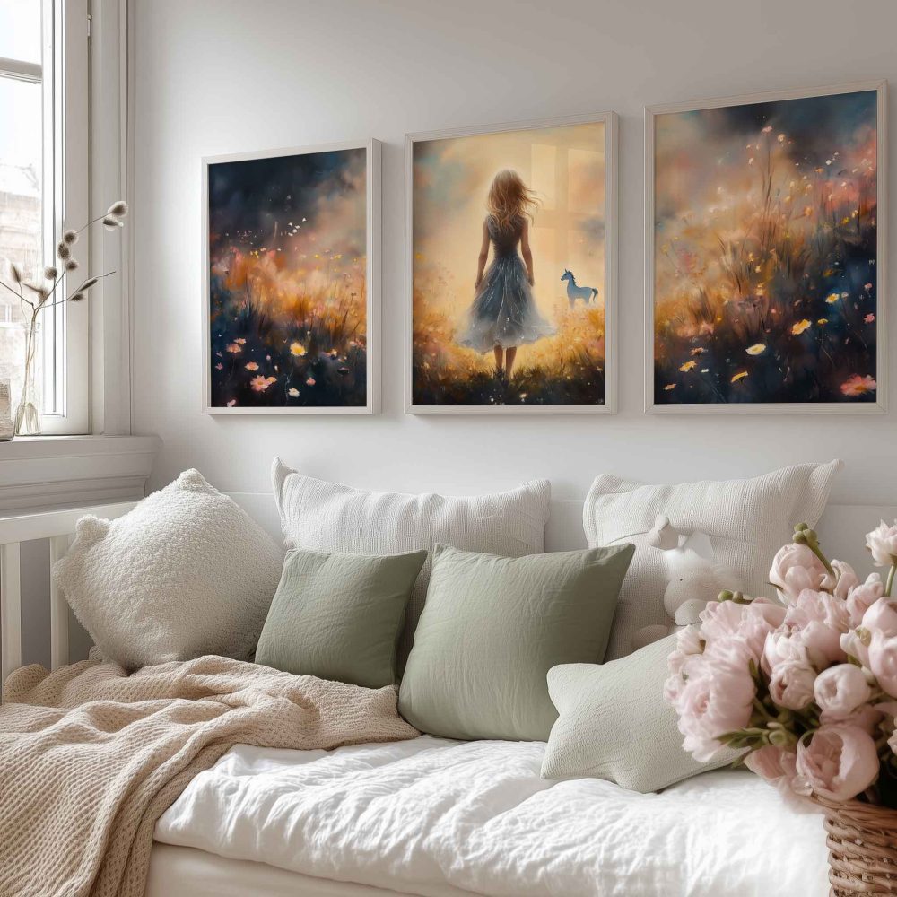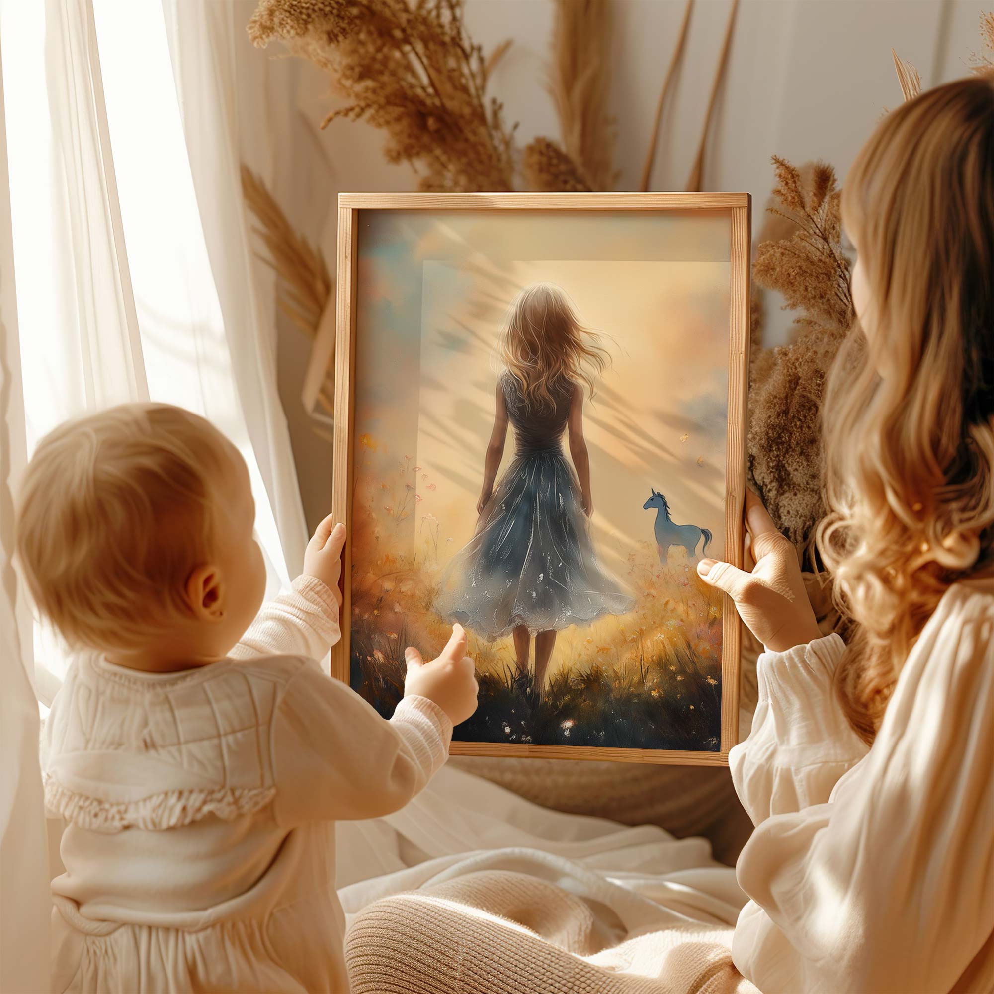 Terug naar collectie / Uncategorized / Magisch Meisje en Eenhoorn in Dromerig Bloemenveld