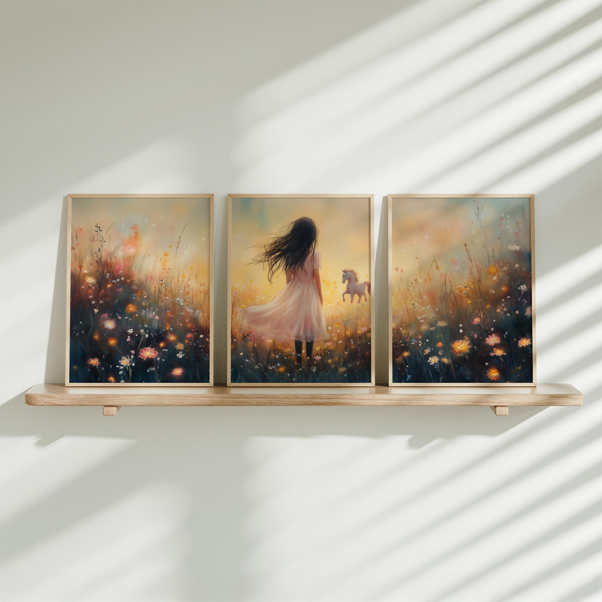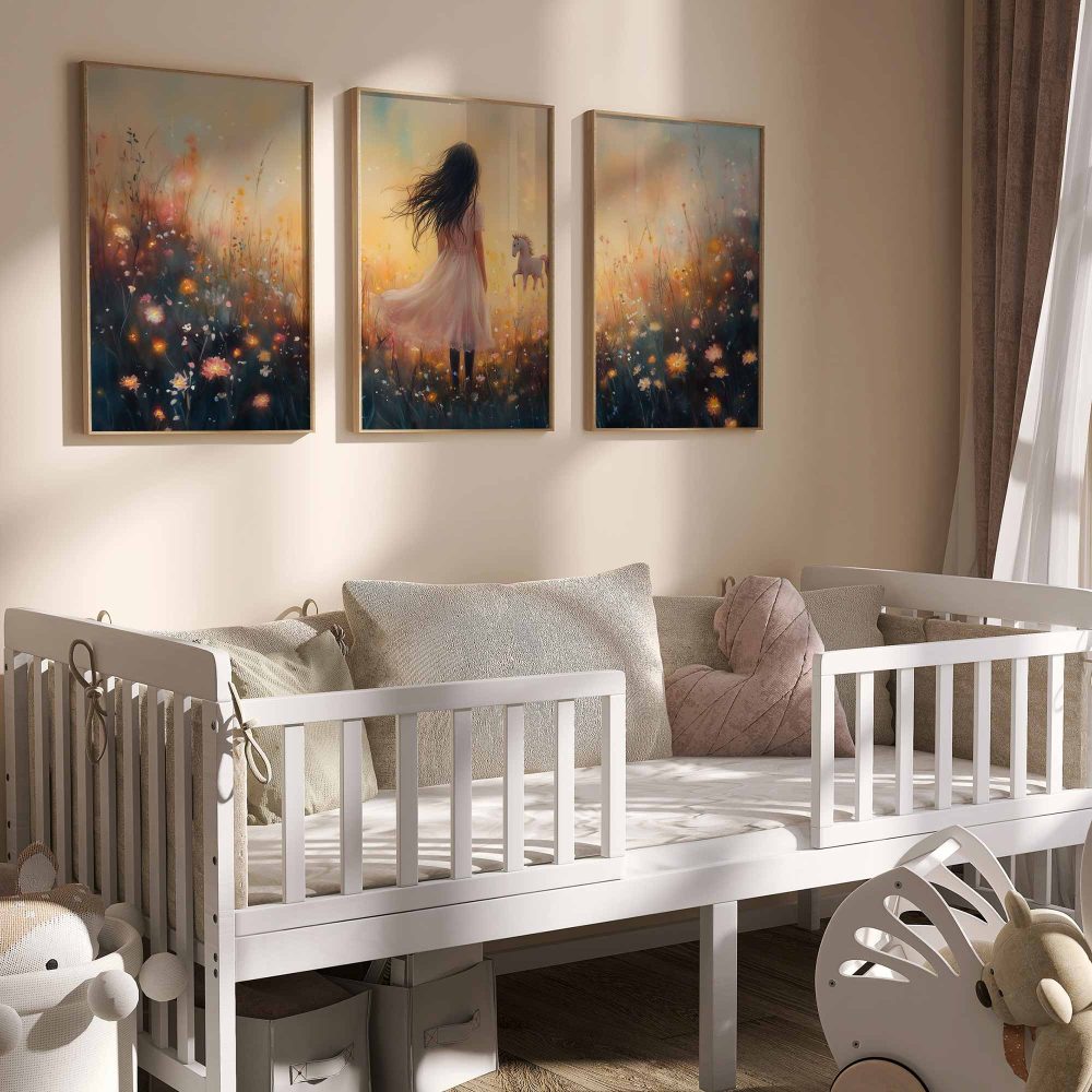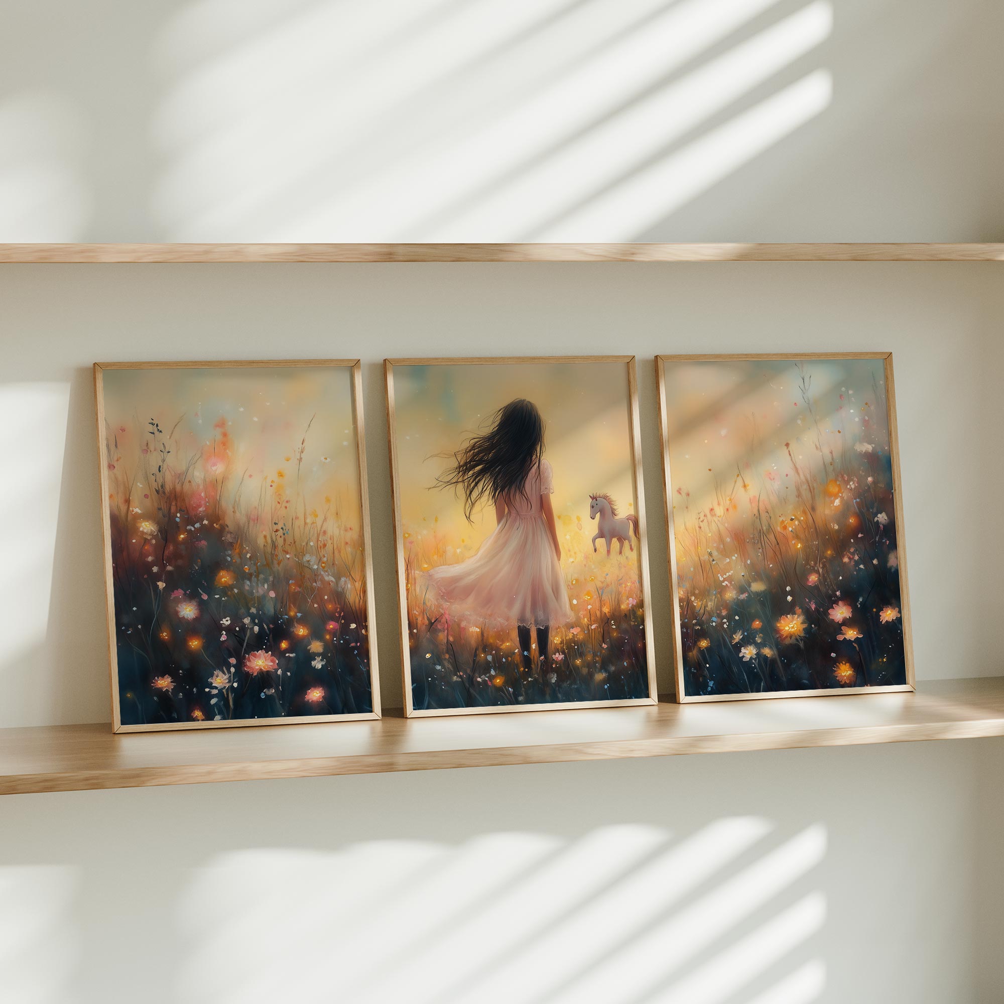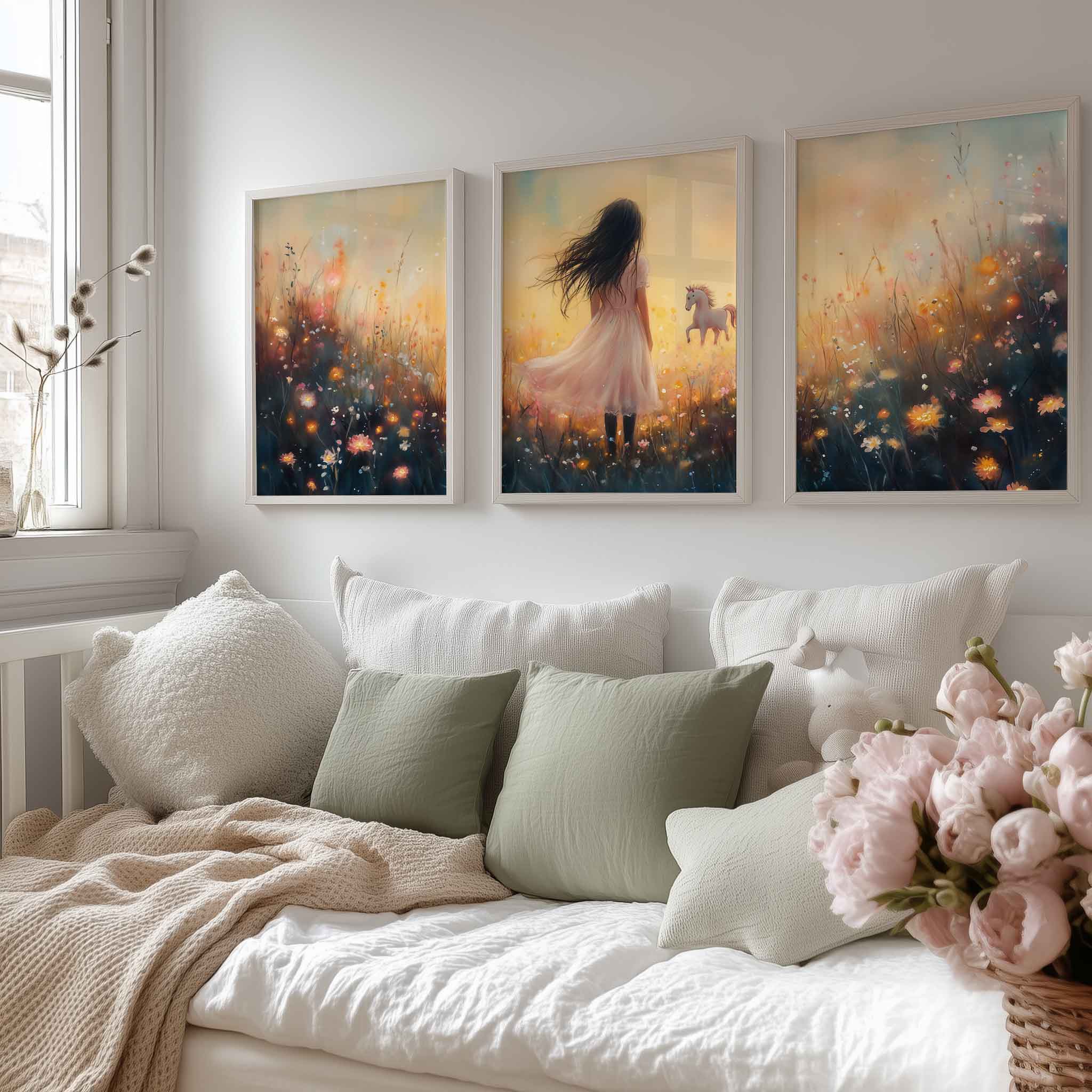 Terug naar collectie / Uncategorized / Magisch Meisje en Eenhoorn in Pastel Bloemenveld
