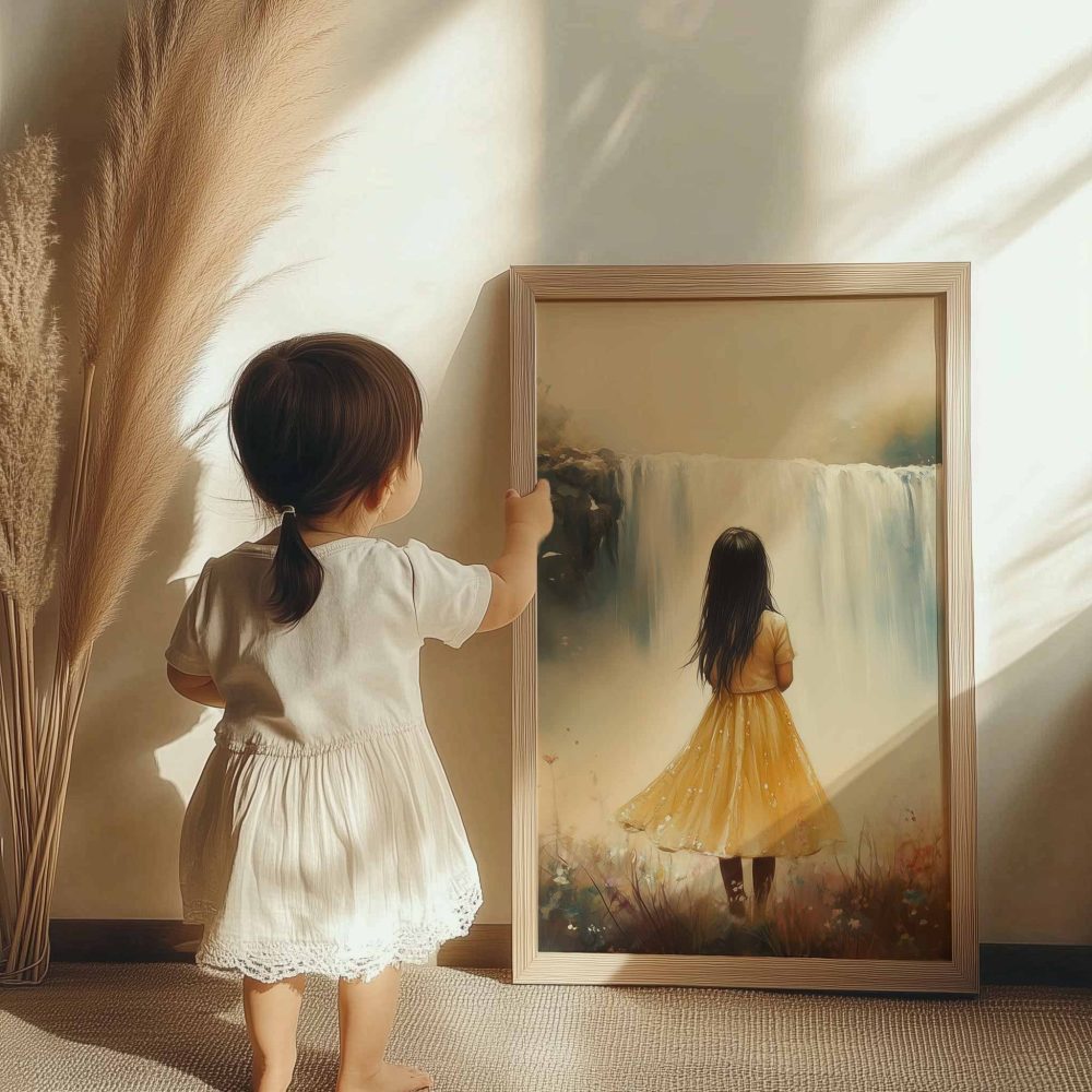 Terug naar collectie / Uncategorized / Magisch Meisje in Bloemenveld bij Waterval