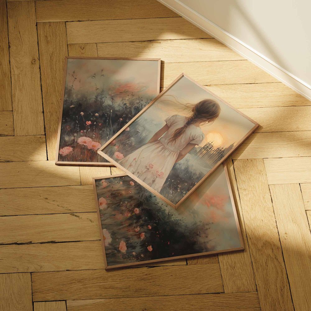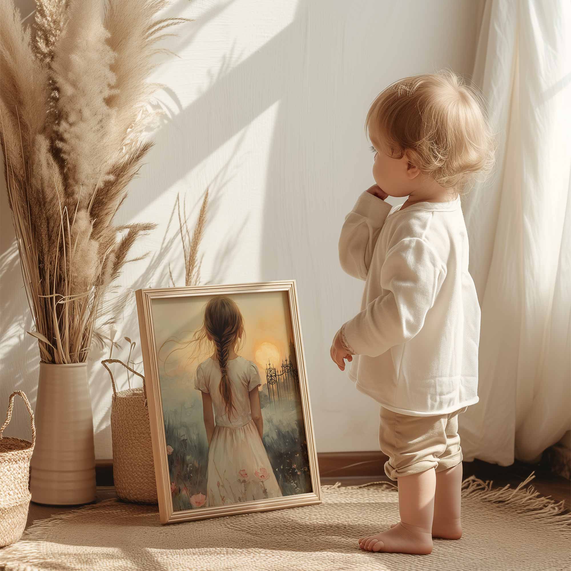 Terug naar collectie / Uncategorized / Magisch Meisje in Bloemenveld bij Zonsondergang