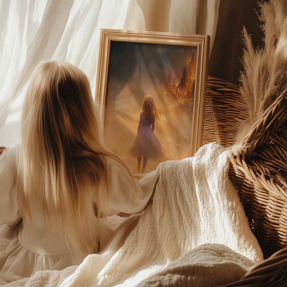 Terug naar collectie / Uncategorized / Magisch Meisje in Bloemenveld met Betoverend Kasteel