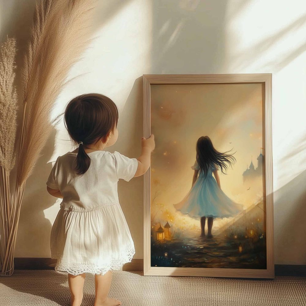 Terug naar collectie / Uncategorized / Magisch Meisje in Bloemenveld met Dromenkasteel