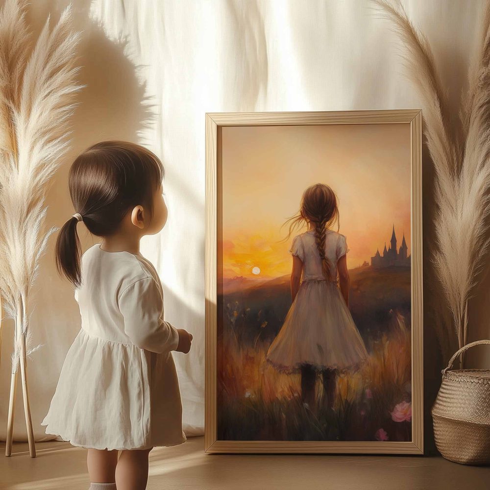 Terug naar collectie / Uncategorized / Magisch Meisje in Bloemenveld met Kasteelzicht