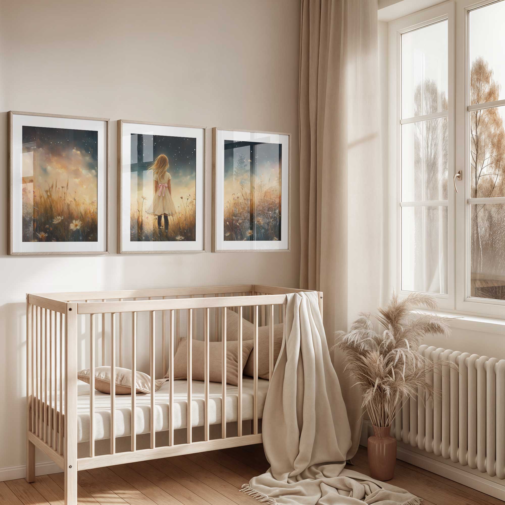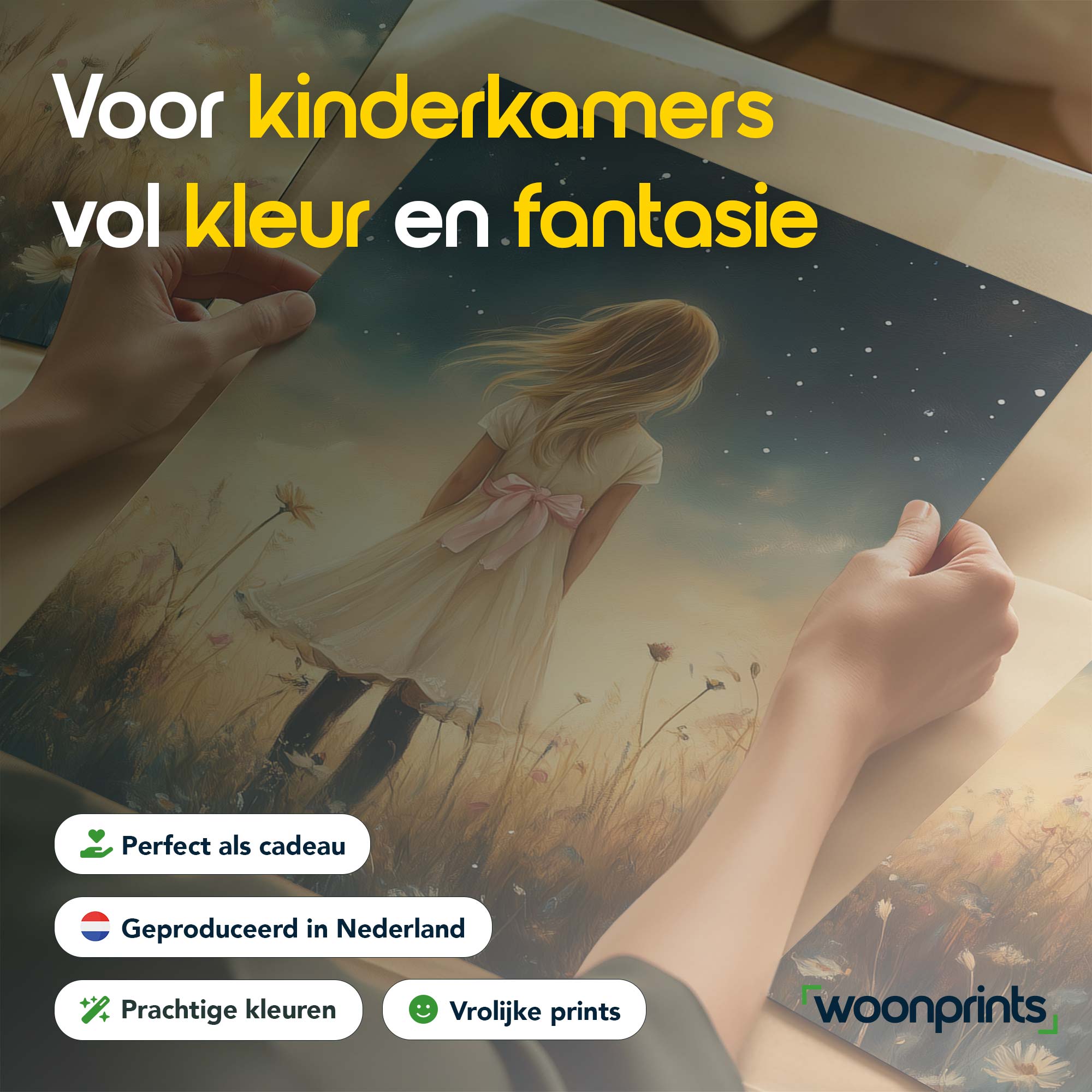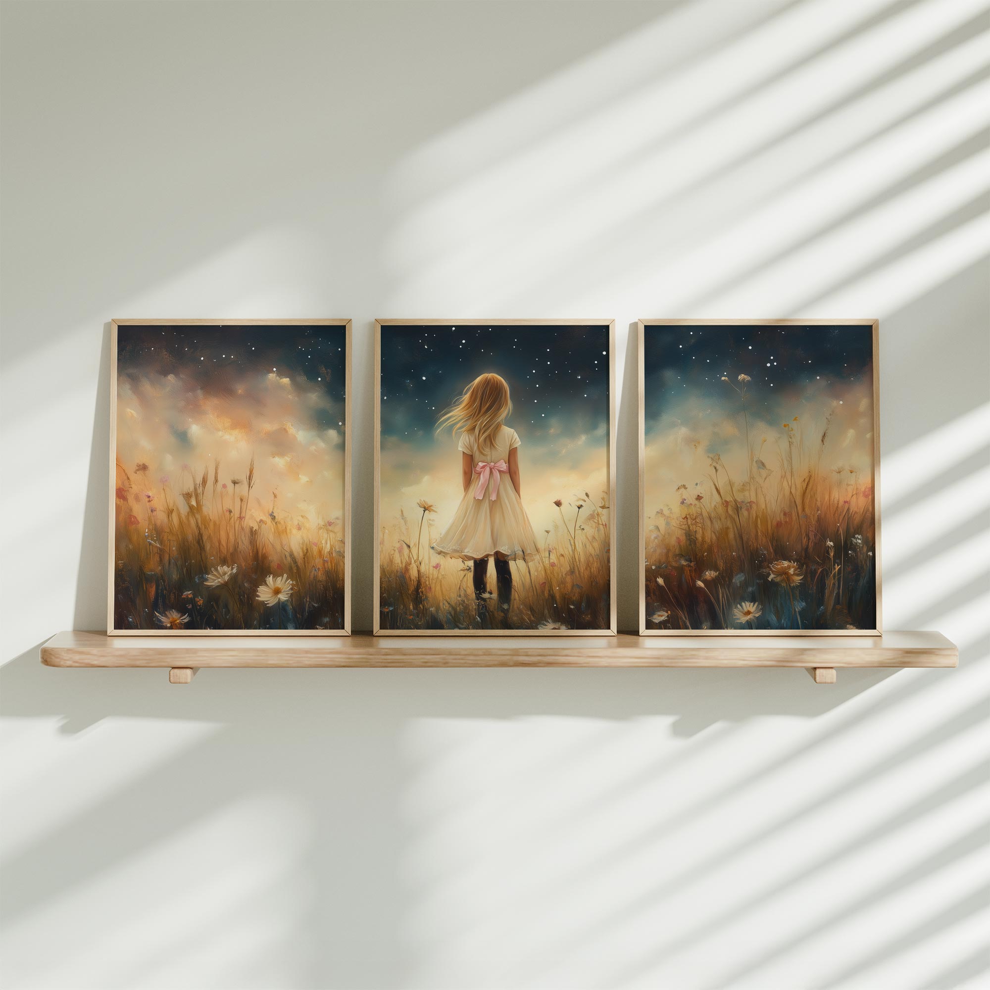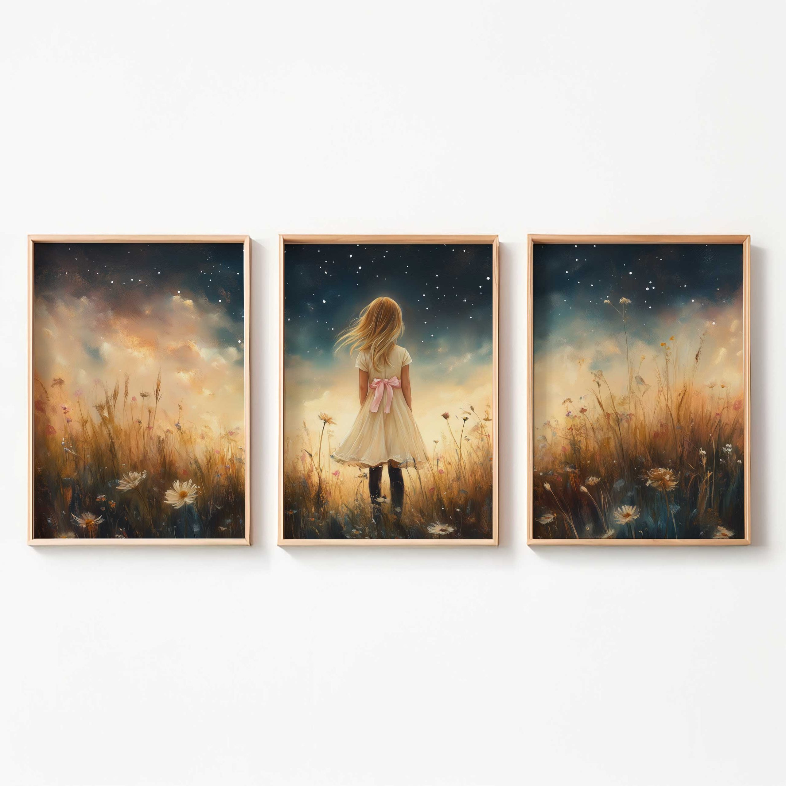Terug naar collectie / Uncategorized / Magisch Meisje in Bloemenveld onder Sterrenhemel