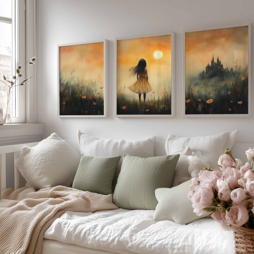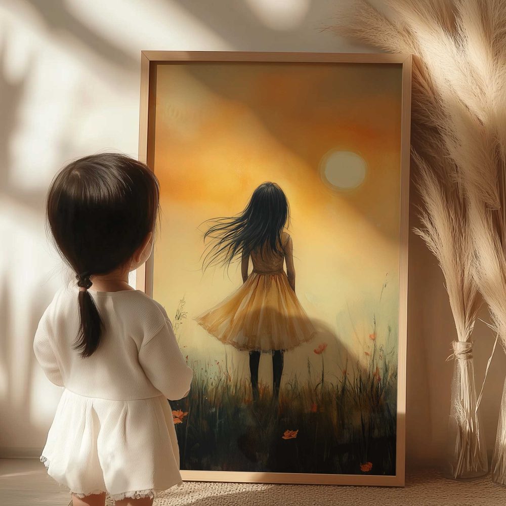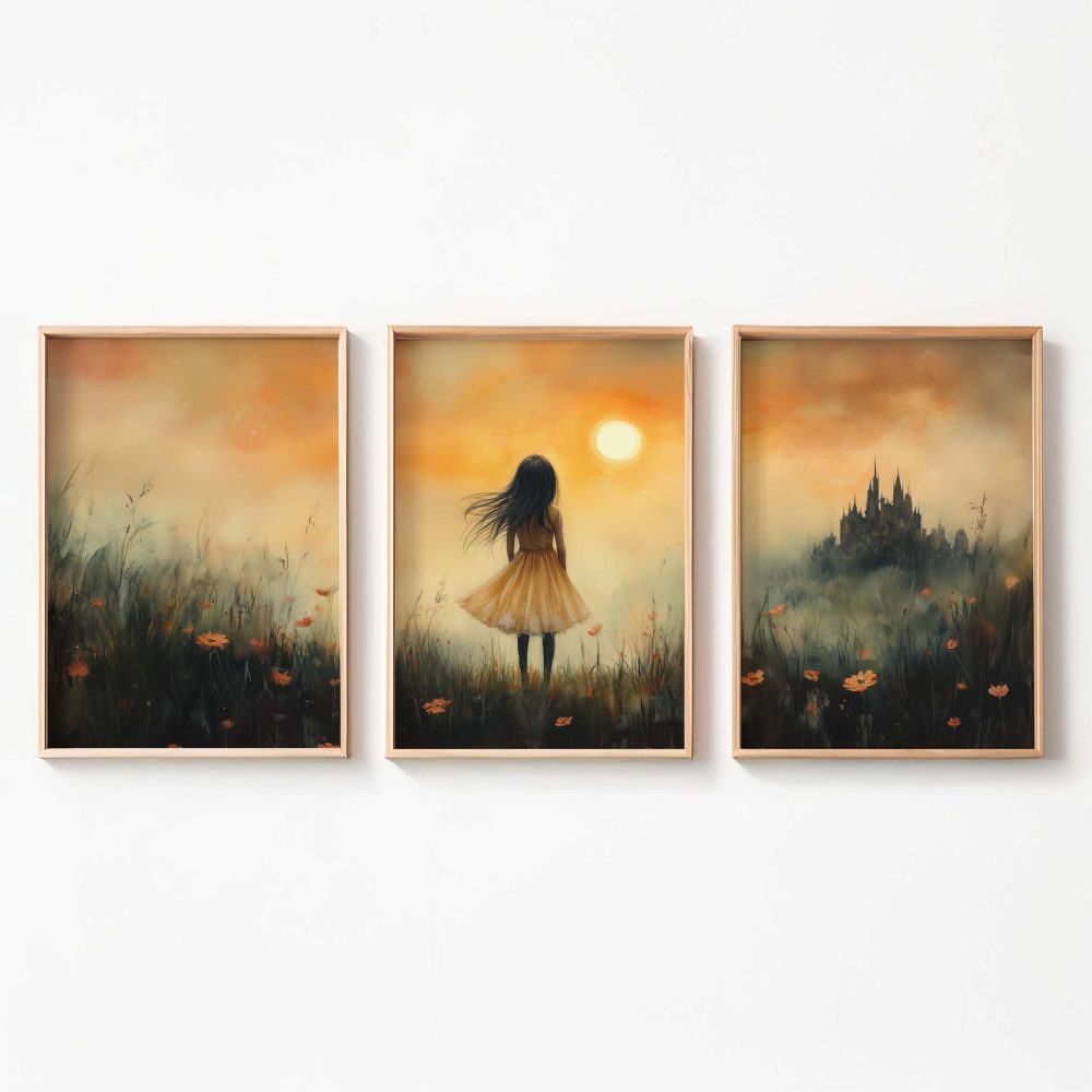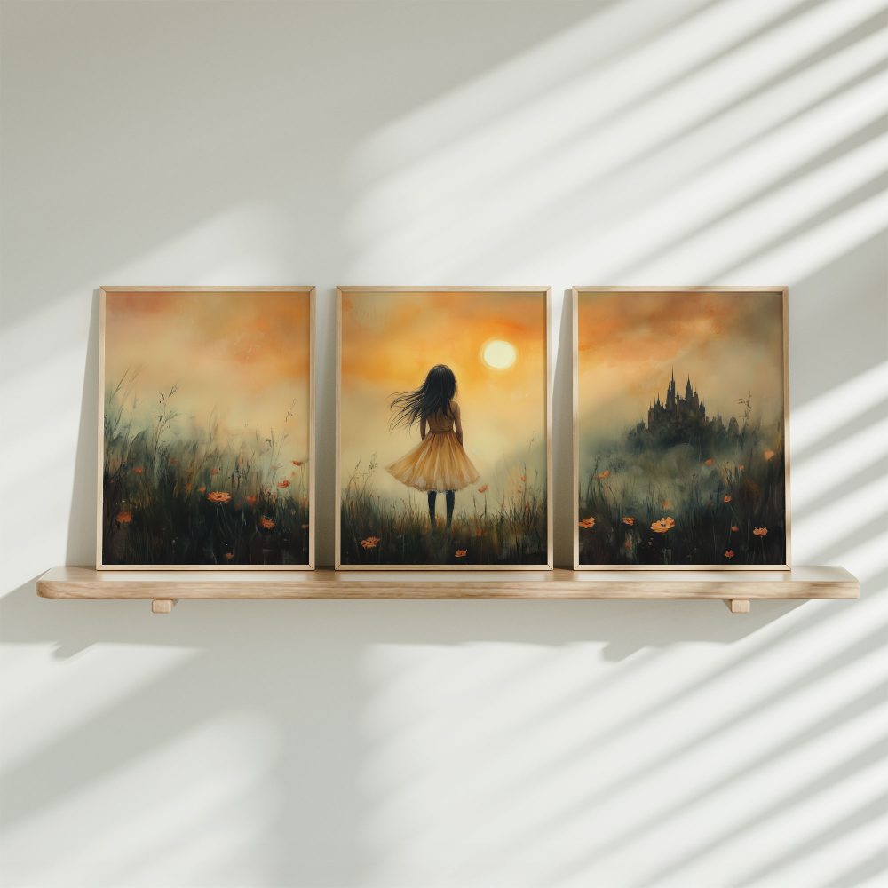 Terug naar collectie / Uncategorized / Magisch Meisje in Gouden Bloemenveld met Kasteel