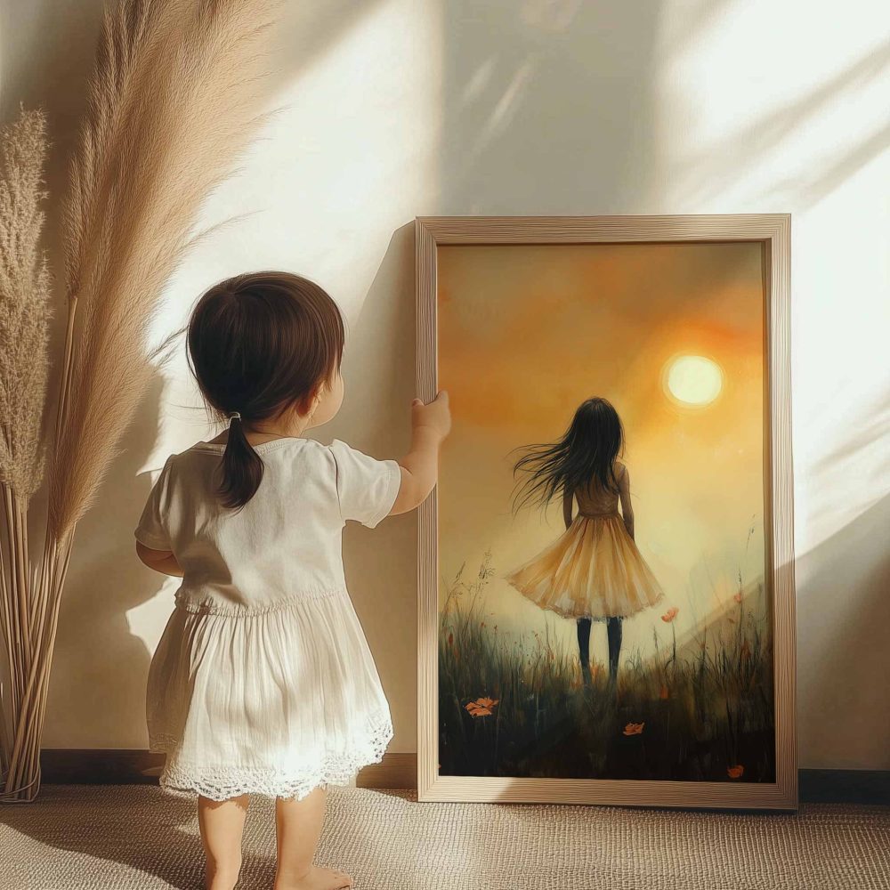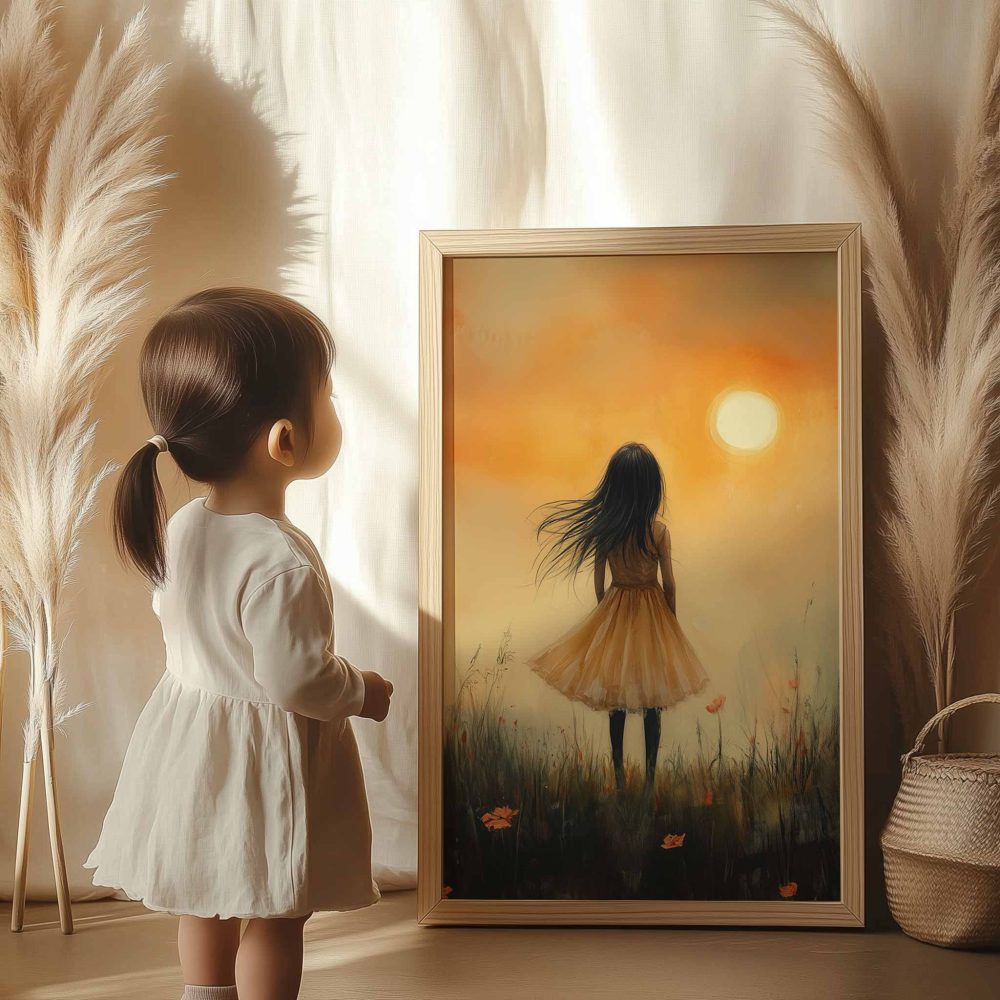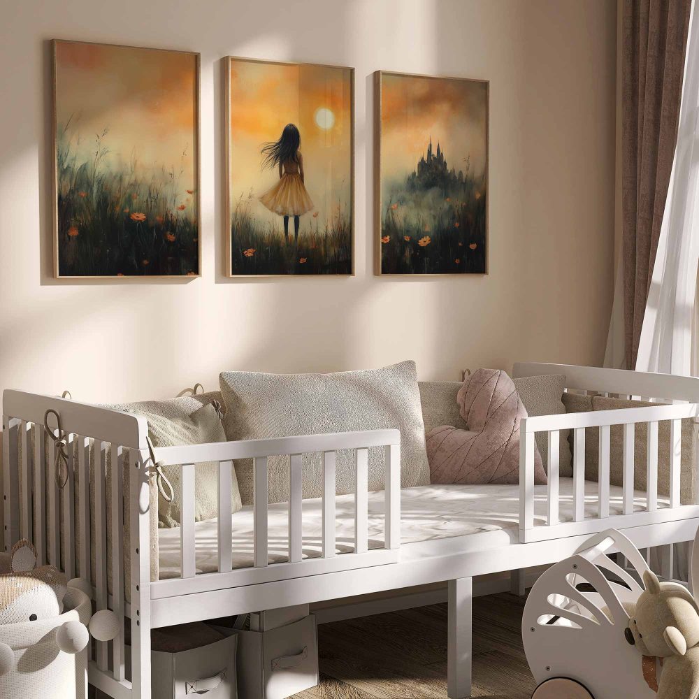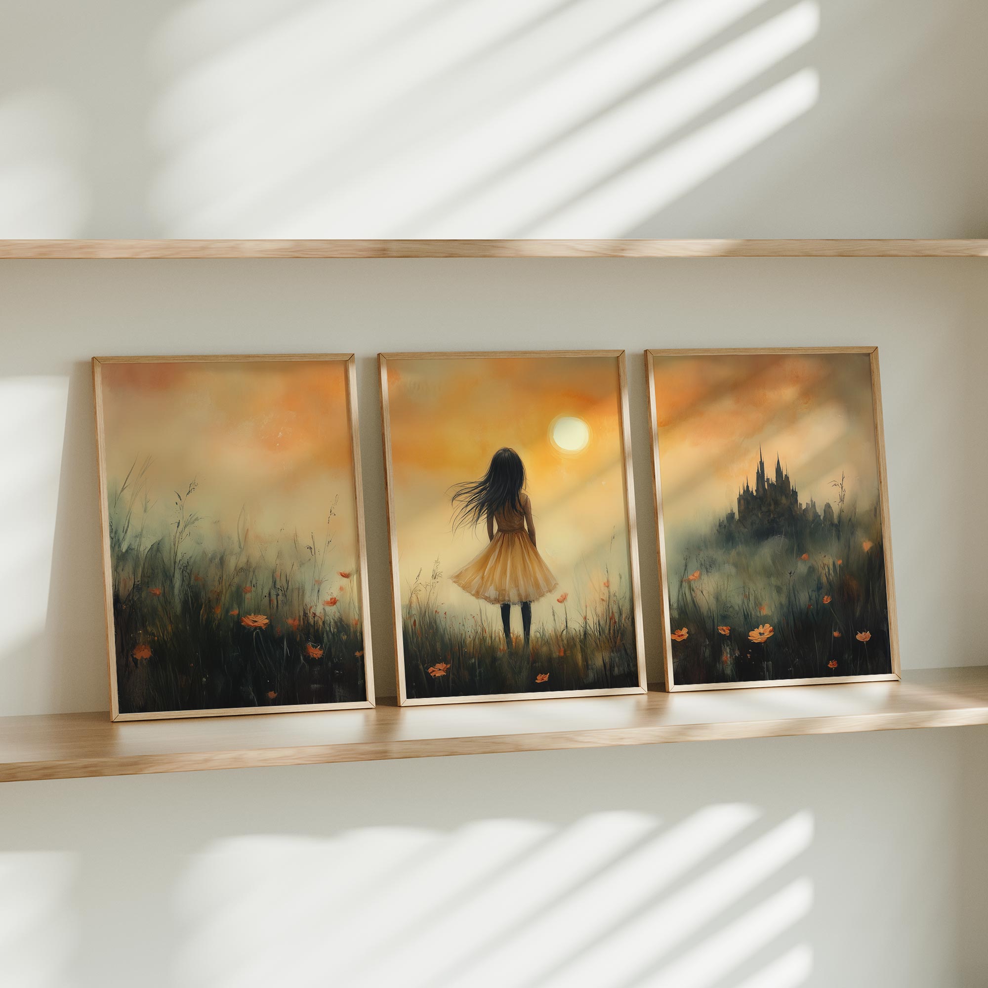 Terug naar collectie / Uncategorized / Magisch Meisje in Gouden Bloemenveld met Kasteel