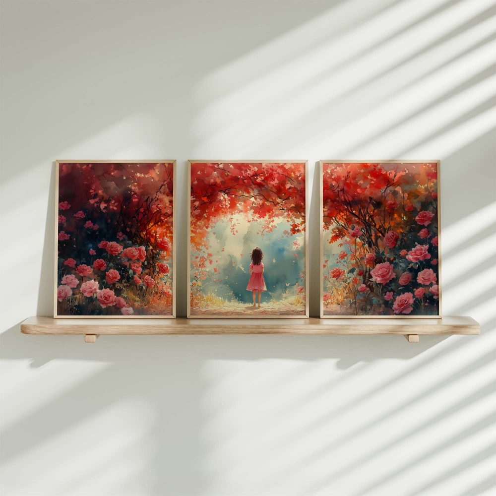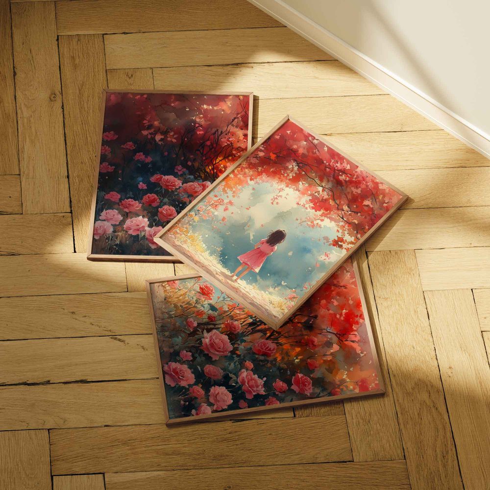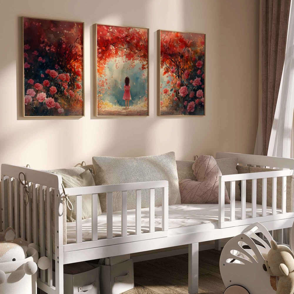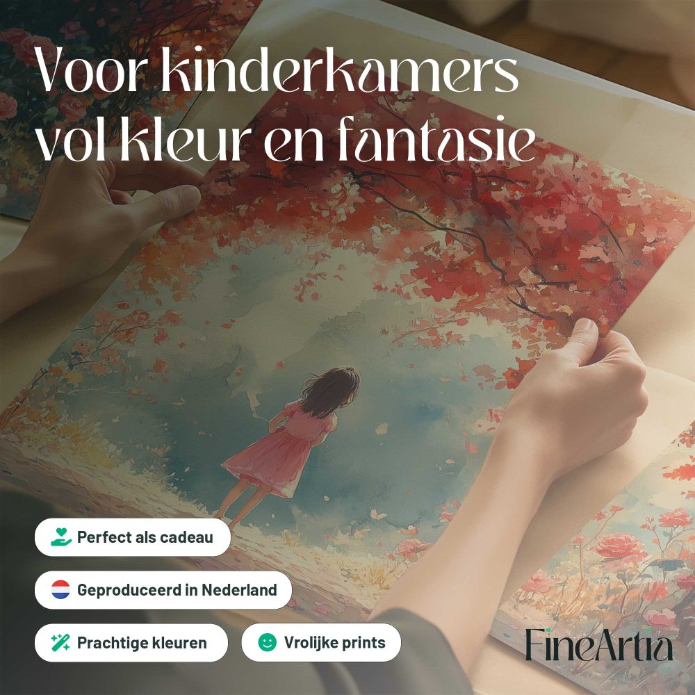 Terug naar collectie / Kinderkamer posters / Bloemen posters / Magisch Meisje in Roze Bloemenveld
