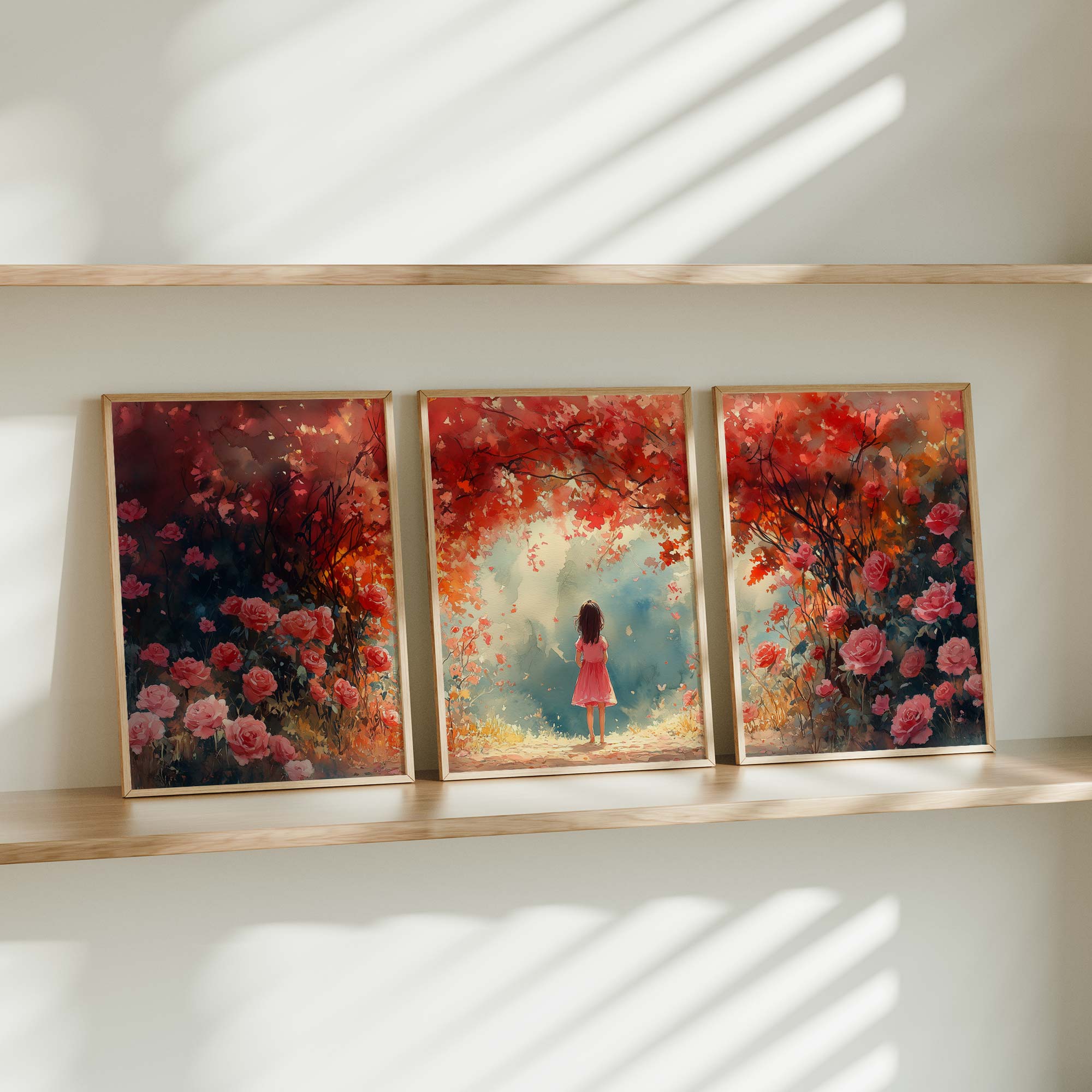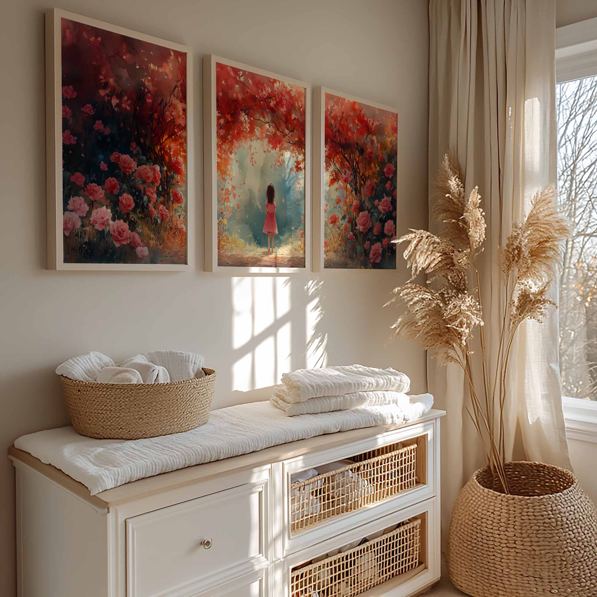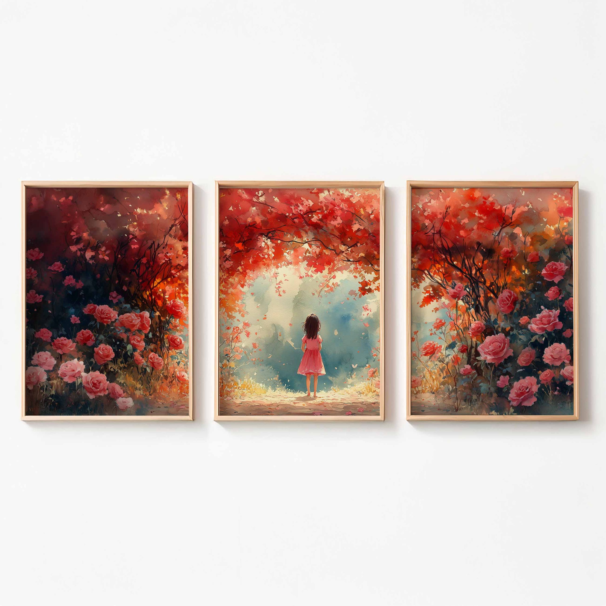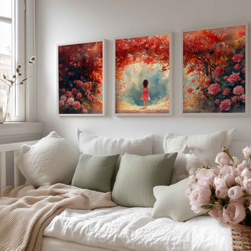 Terug naar collectie / Kinderkamer posters / Bloemen posters / Magisch Meisje in Roze Bloemenveld