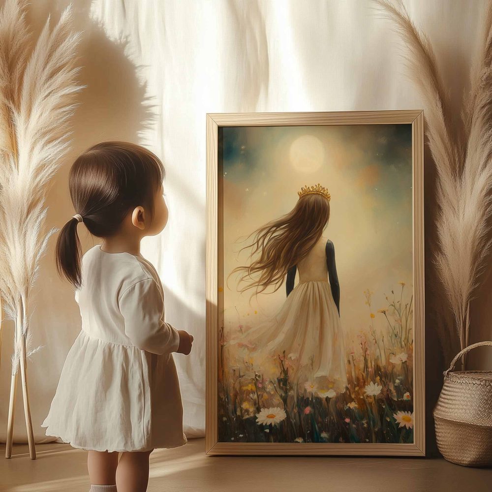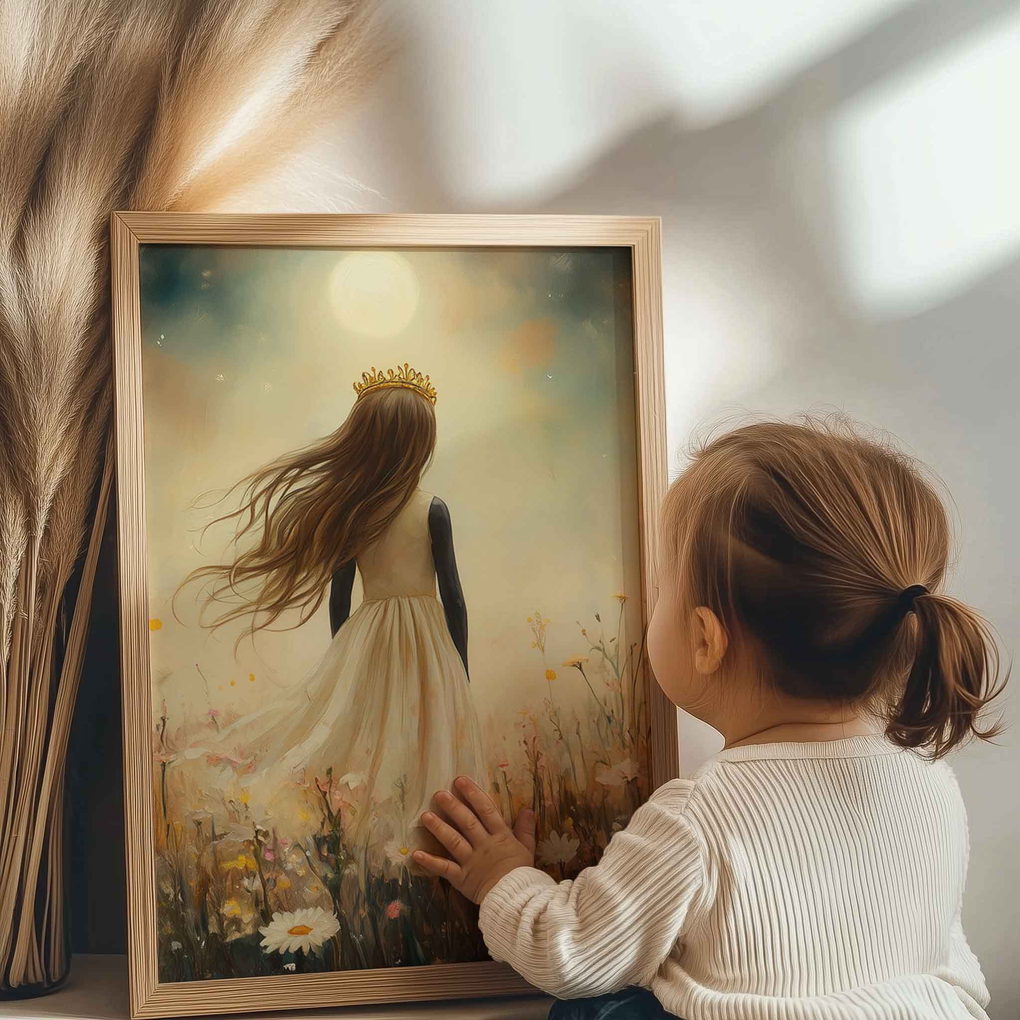 Terug naar collectie / Uncategorized / Magisch Meisje met Kroon in Maanlicht en Bloemenveld