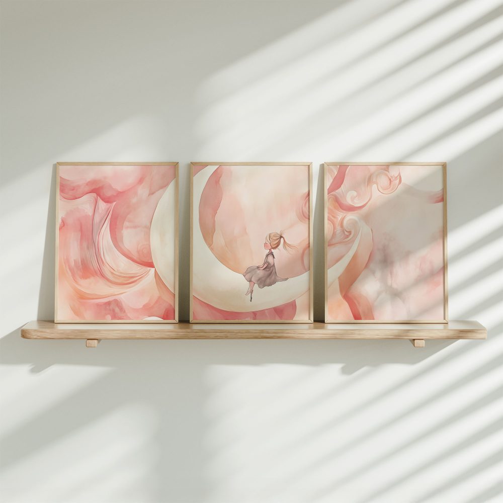 Magisch Meisje op de Maan – Dromerig Watercolor Decor